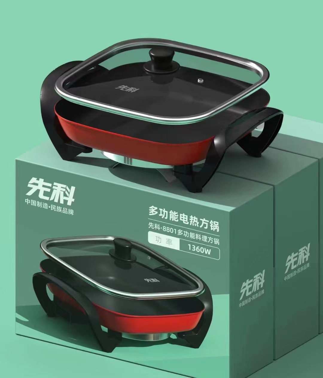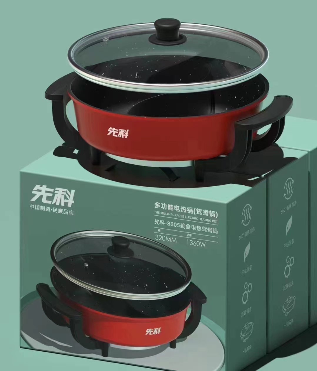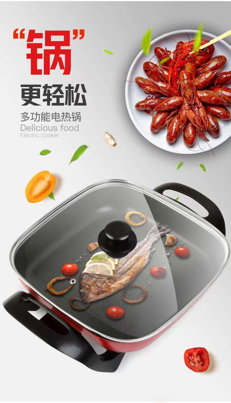 先科电火锅不粘四方锅小家电礼品电煮锅鸳鸯锅涮烤一体锅电烤盘