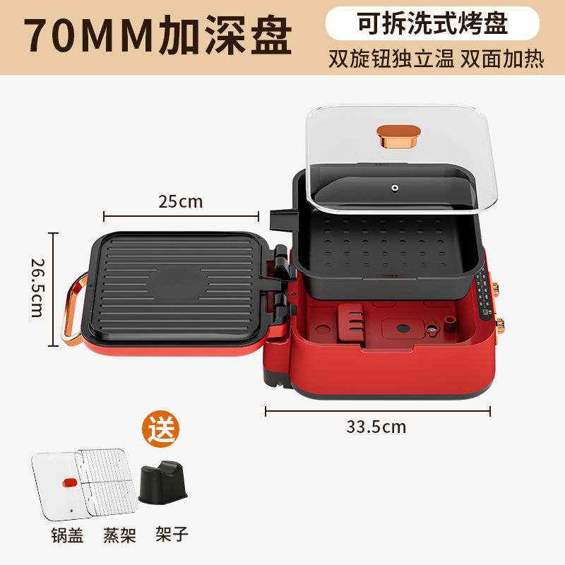 可拆洗加大电饼铛电炒蒸煮一体锅煎饼锅电饼铛火锅多功能电煮锅