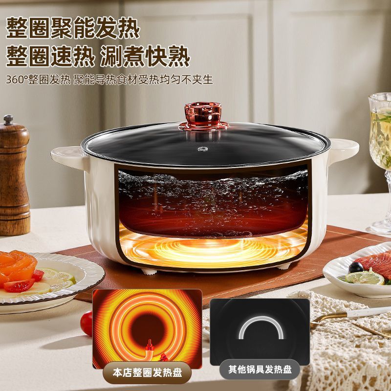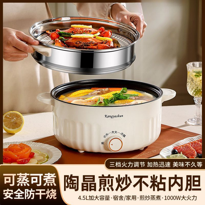 电煮锅多功能宿舍锅一体电热火锅蒸煮煎炒家用厨房料理电火锅