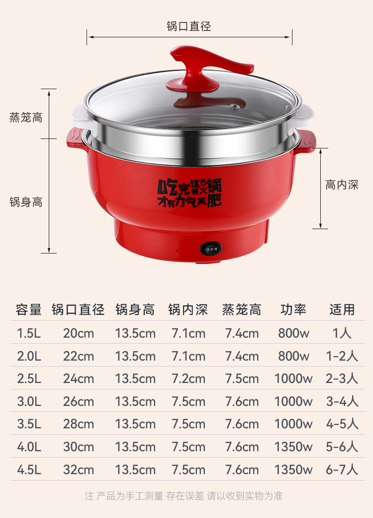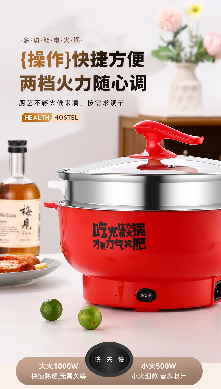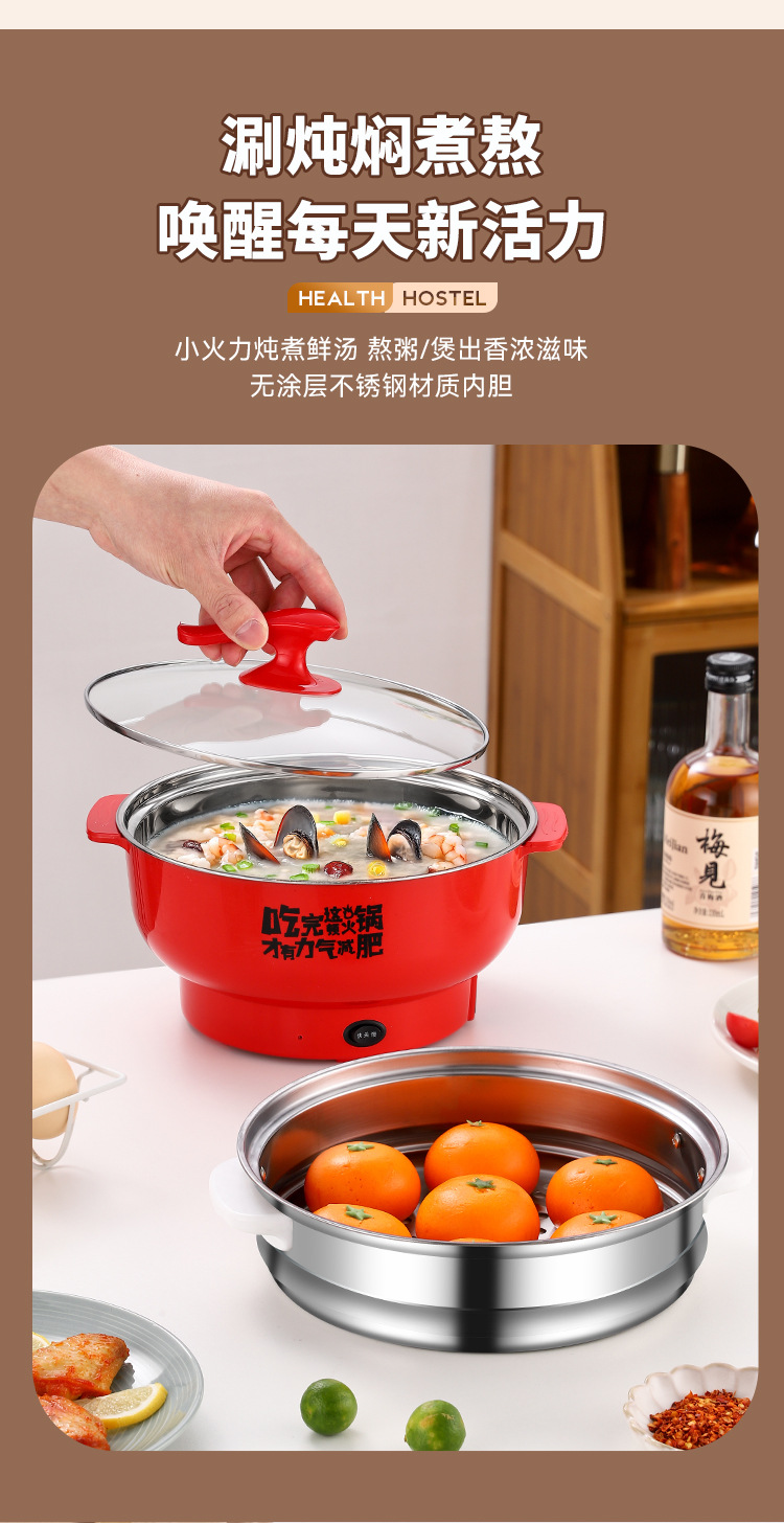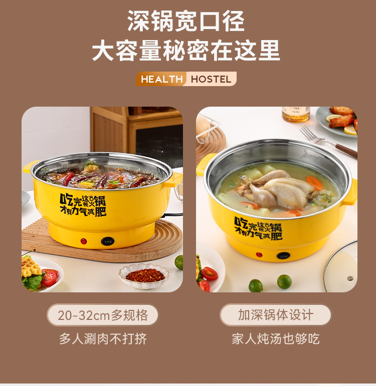 厂家直供不锈钢电火锅家用电蒸锅多功能电煮锅小电锅外卖电热火锅