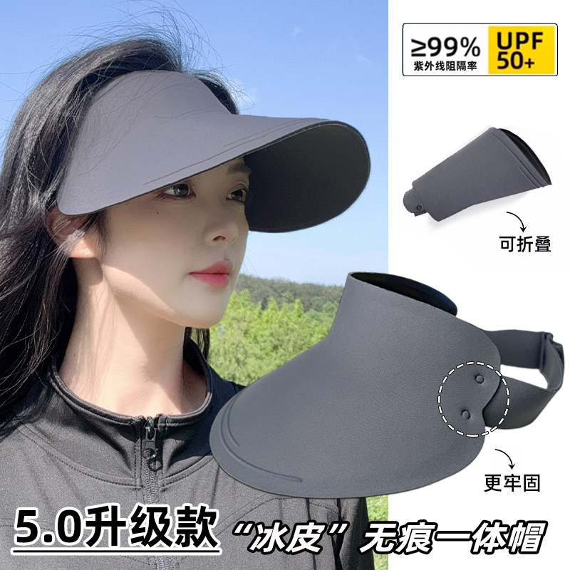 无痕一体防晒帽女夏季超轻可卷空顶冰丝遮阳帽防紫外线骑车太阳帽