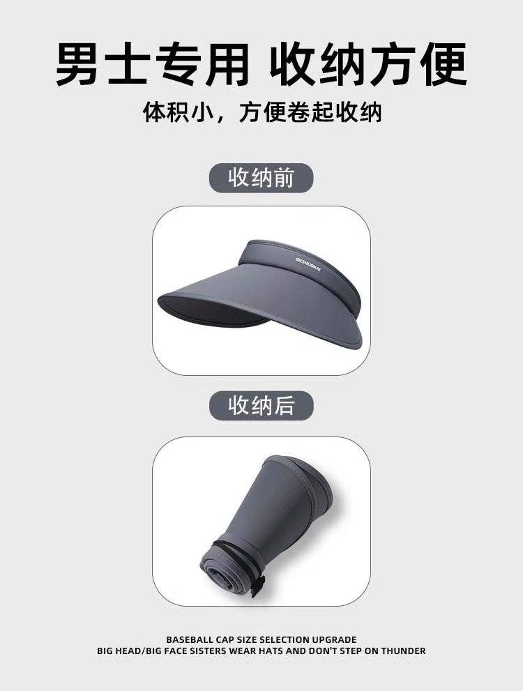 防晒帽男士户外防紫外线夏季大檐空顶太阳帽户外遮阳帽子登山帽女