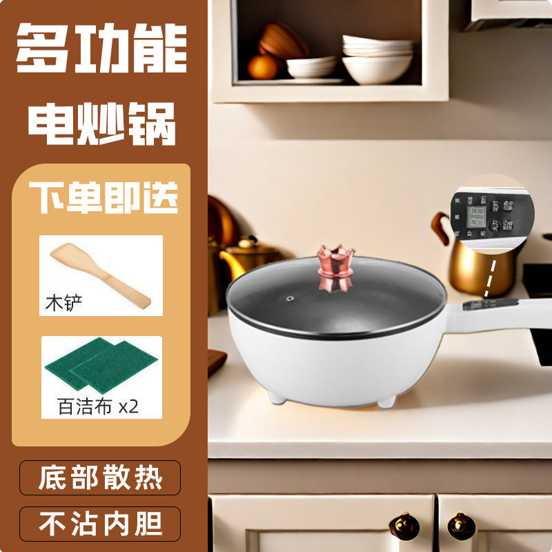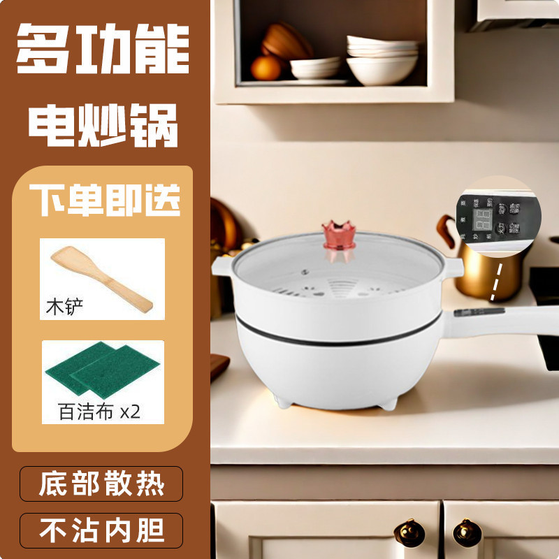宿舍电炒菜炒锅一体式多功能电煮锅蒸煮炒大功率电热火锅不粘锅