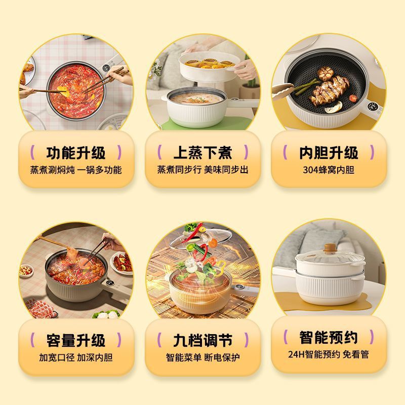 电炒锅多功能电煮锅宿舍家用大功率蒸煮炒煎一体不粘锅电火锅