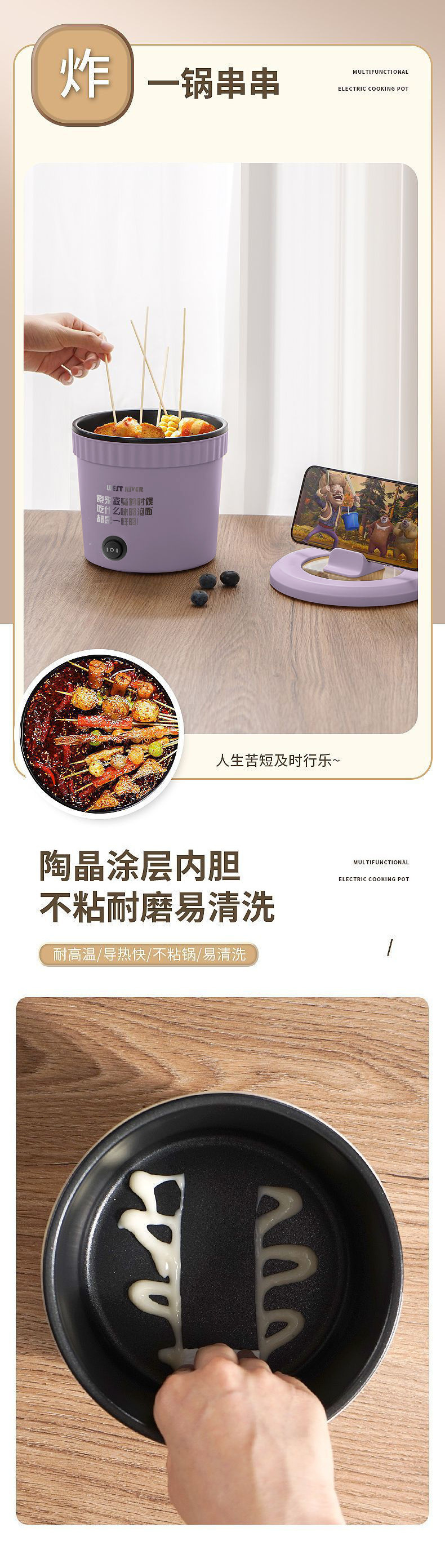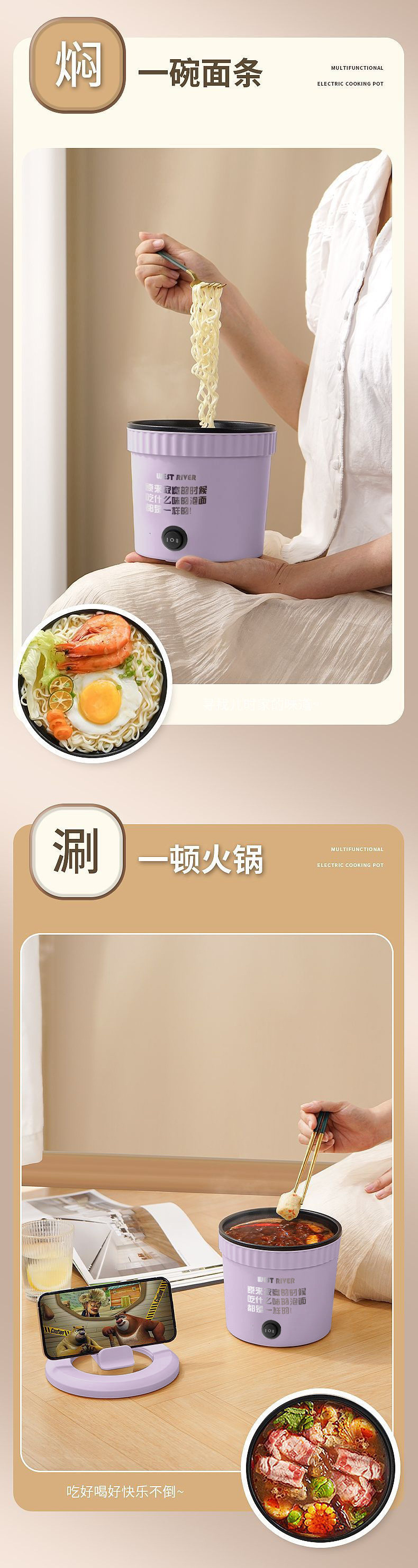 多功能电煮锅家用学生宿舍新款迷你小电煮锅泡面锅速食小型电火锅