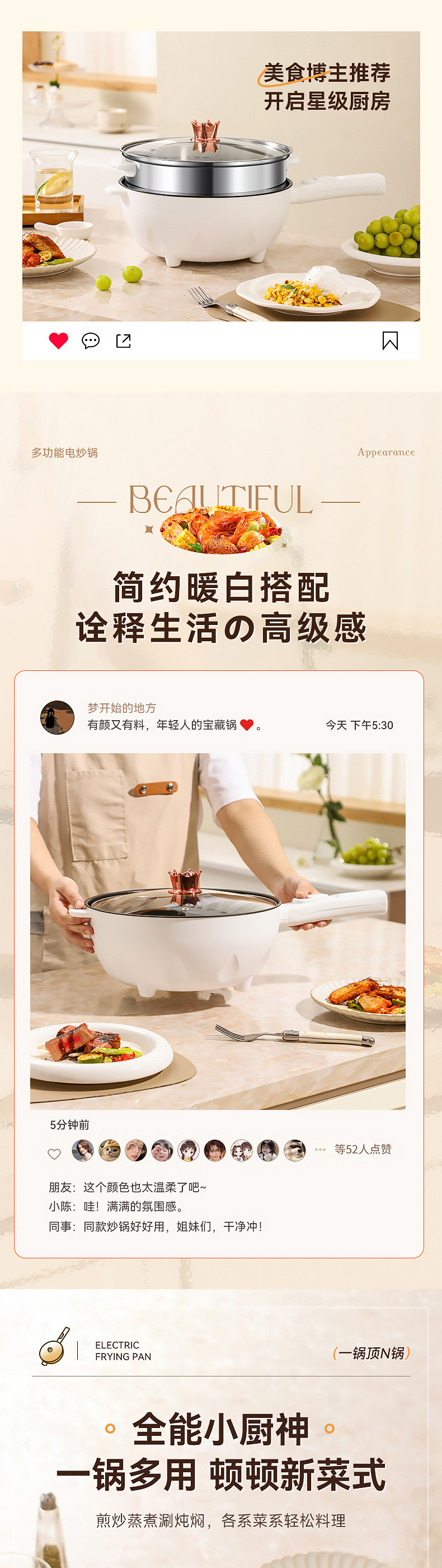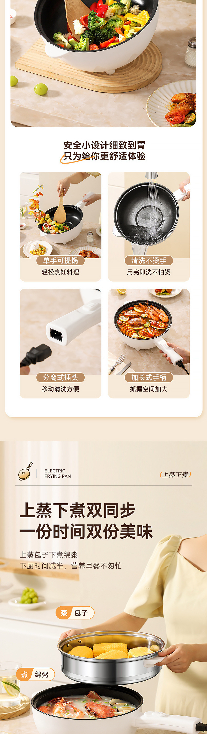 电炒锅一体式多功能电煮锅家用炒菜爆炒大功率煎炒蒸煮电火锅