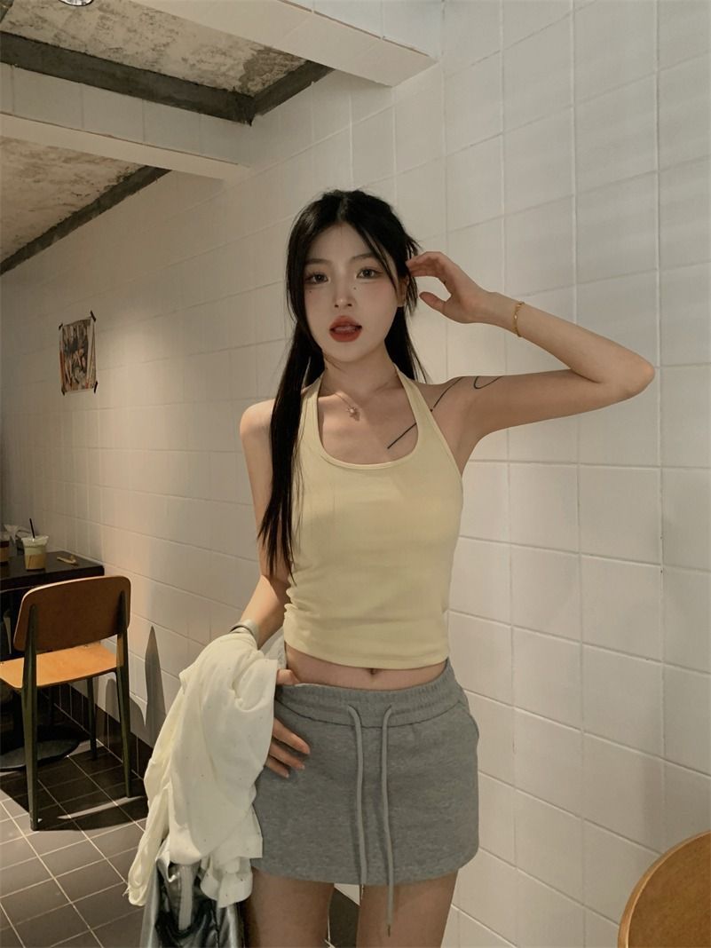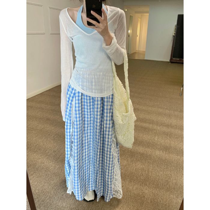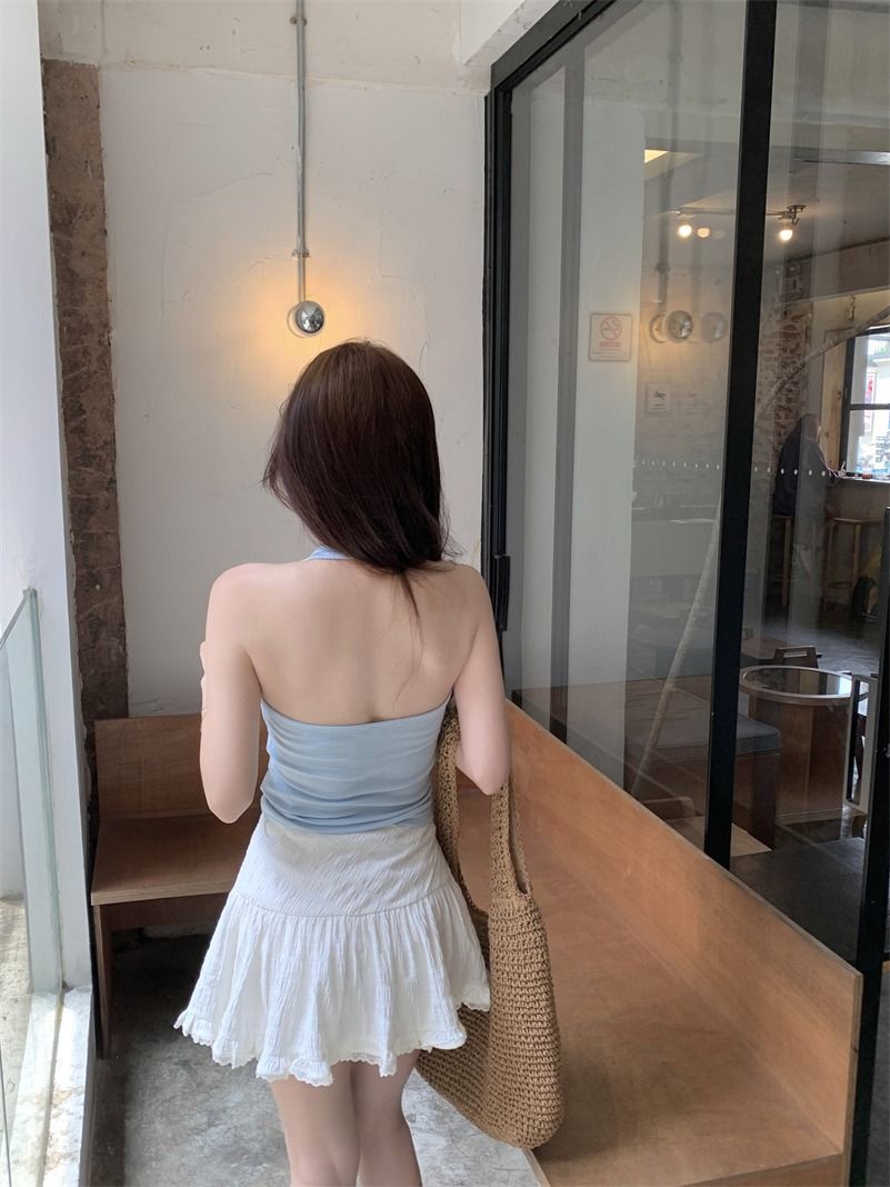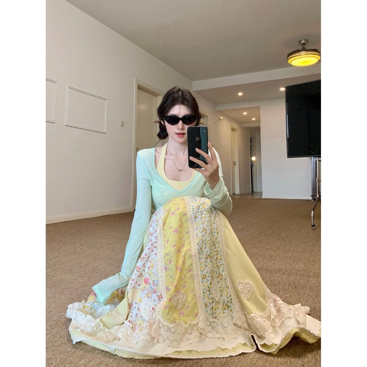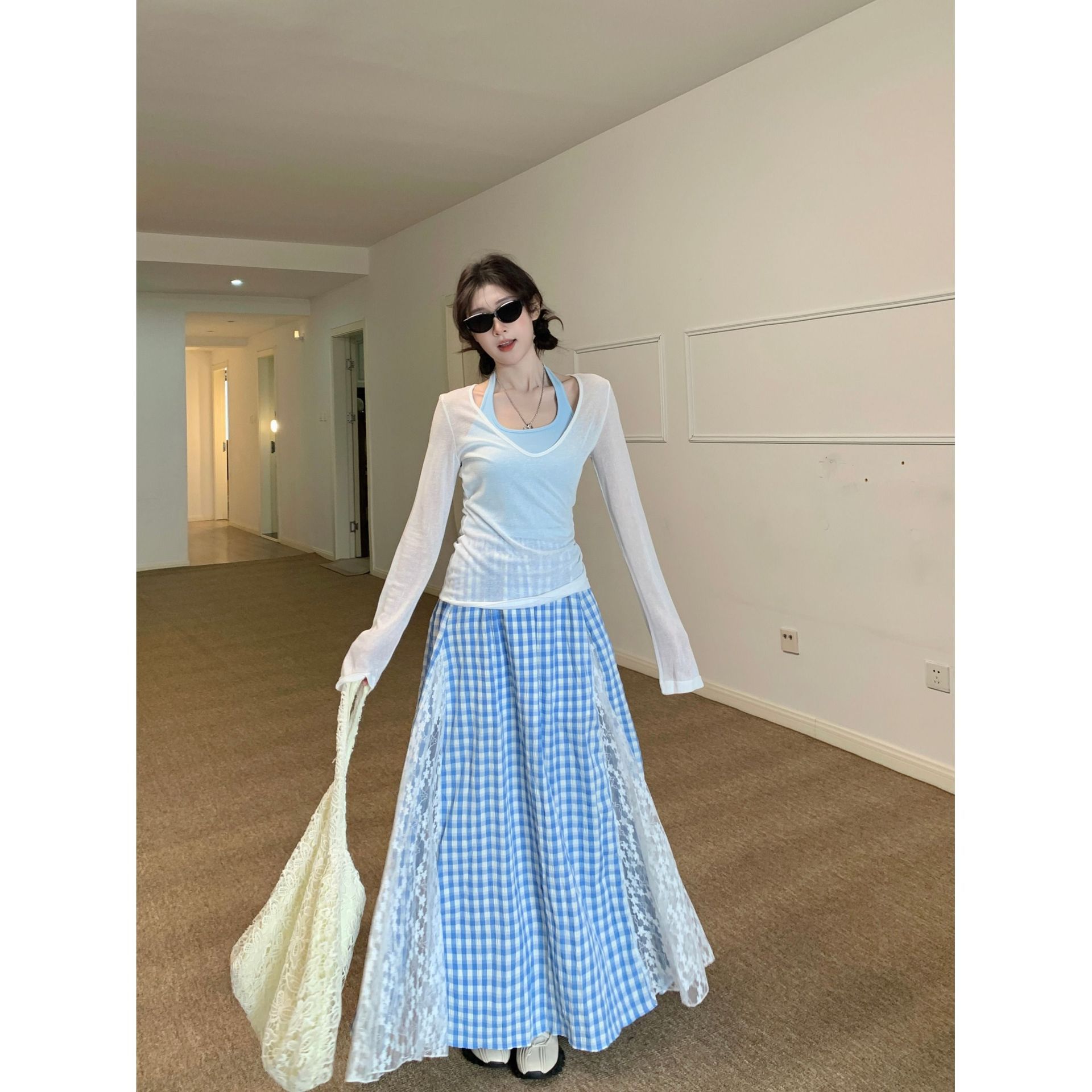 简漫妮夏季防晒罩衫女薄款叠穿V领长袖T恤叠穿挂脖吊带背心上衣女