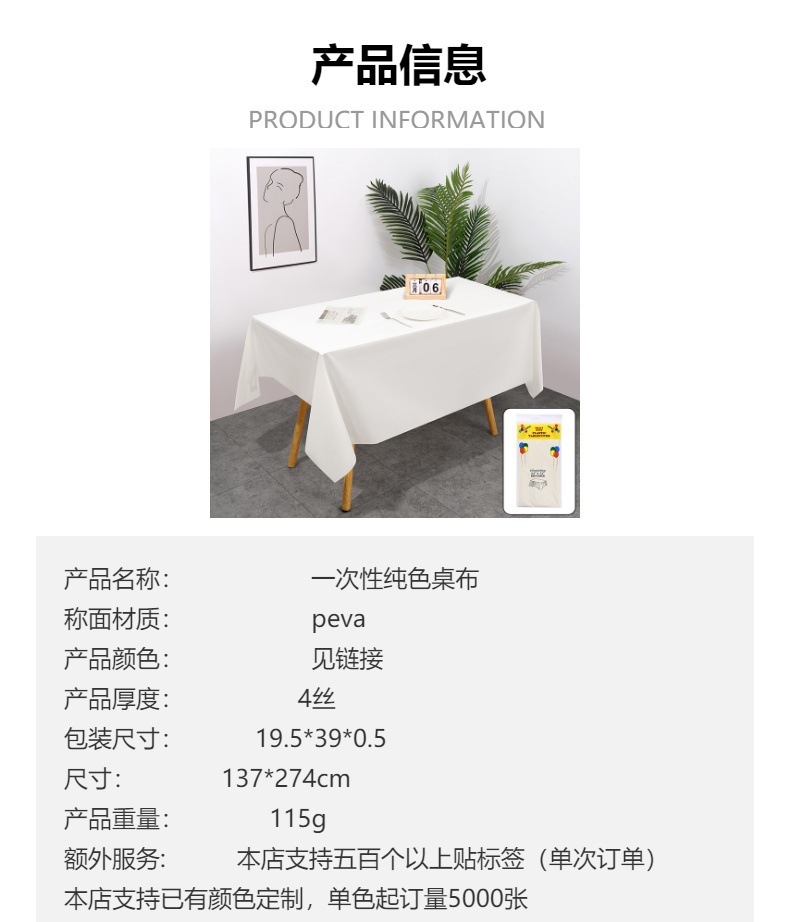 厂家直销一次性纯色塑料长方形桌布4丝加厚纯色桌布 跨境专供防水