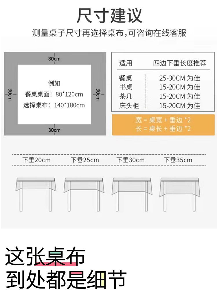 | 138 * 180cm suitable for 90% dining table(138*180cm适合90%餐桌) | USD $2.75 | 98989 piece available |