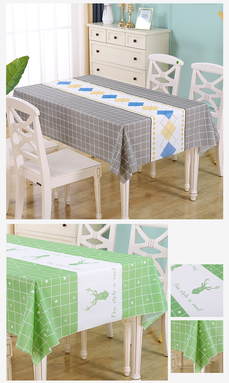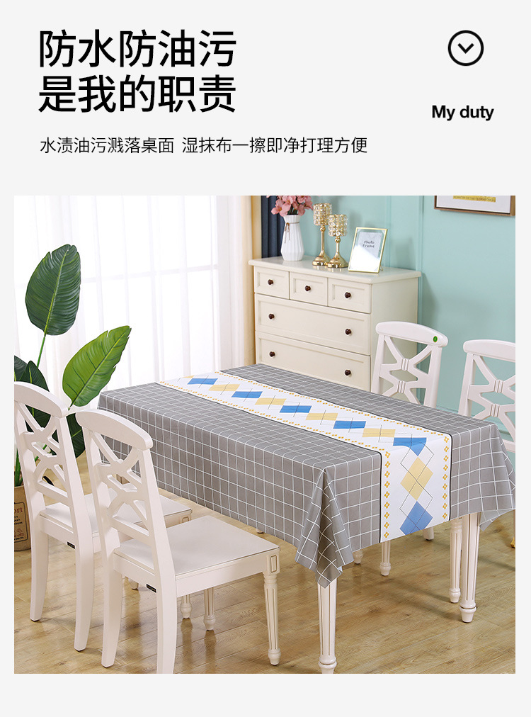 格子桌旗PVC餐桌布ins风防水防油新中式居家免洗茶几垫PE餐桌布