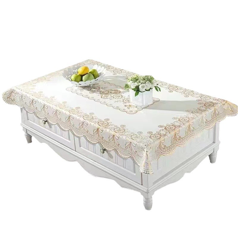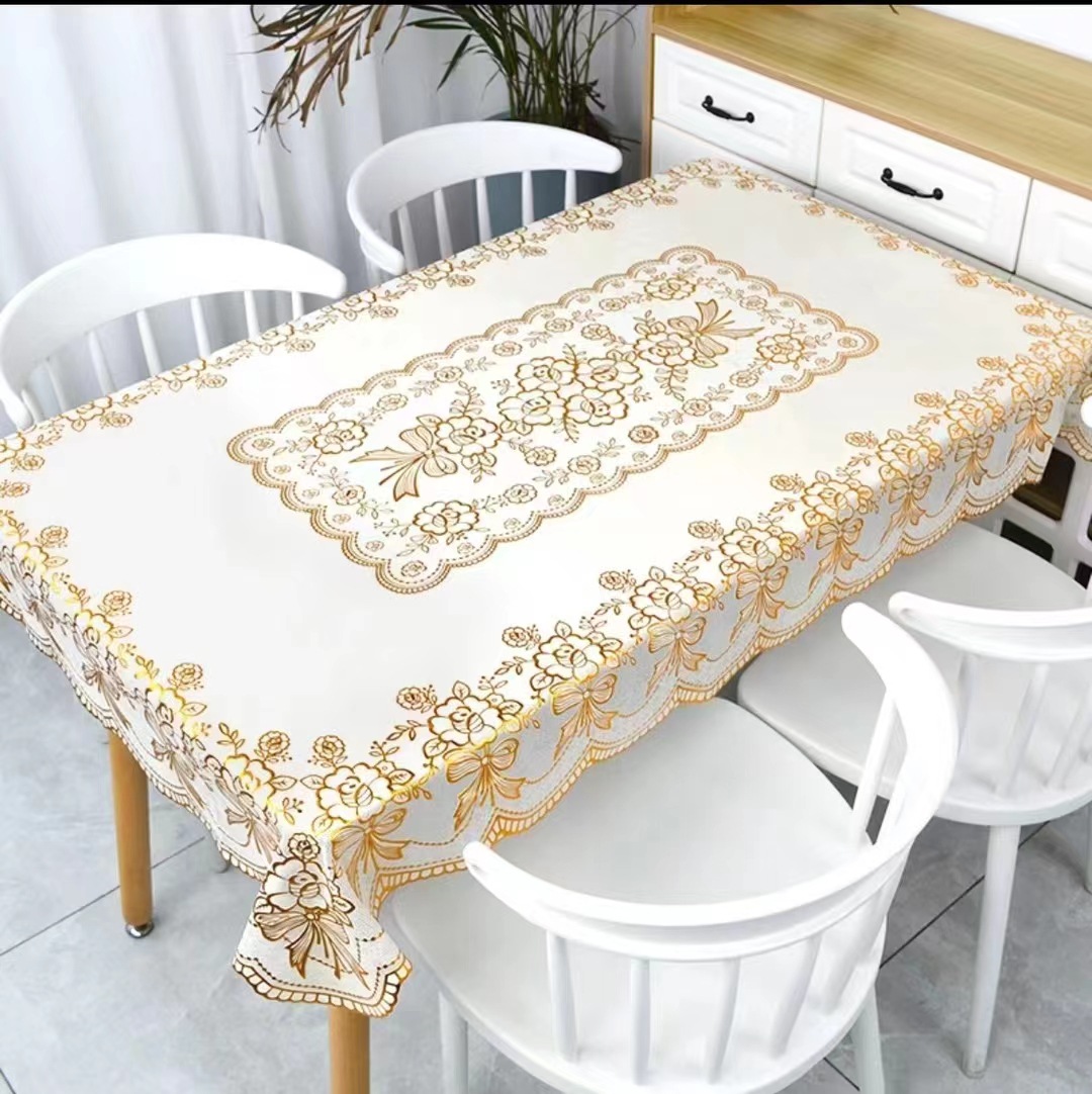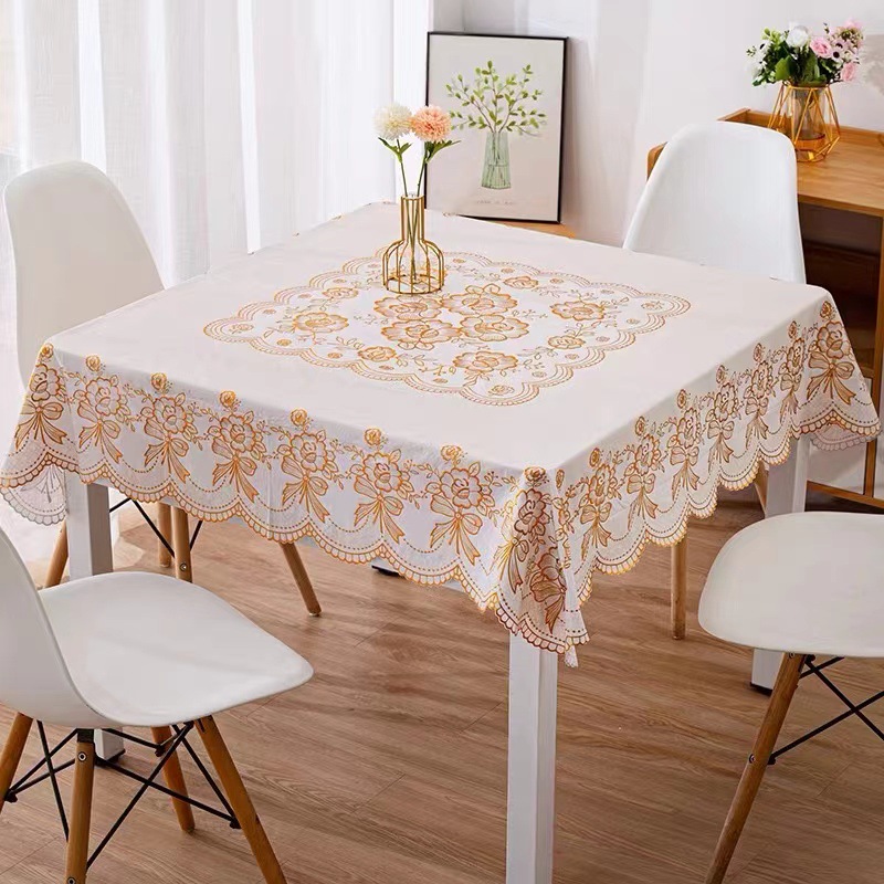 电商代发 烫金雕花蕾丝桌布 厂家直供烫金花纹90x140防水防烫桌布