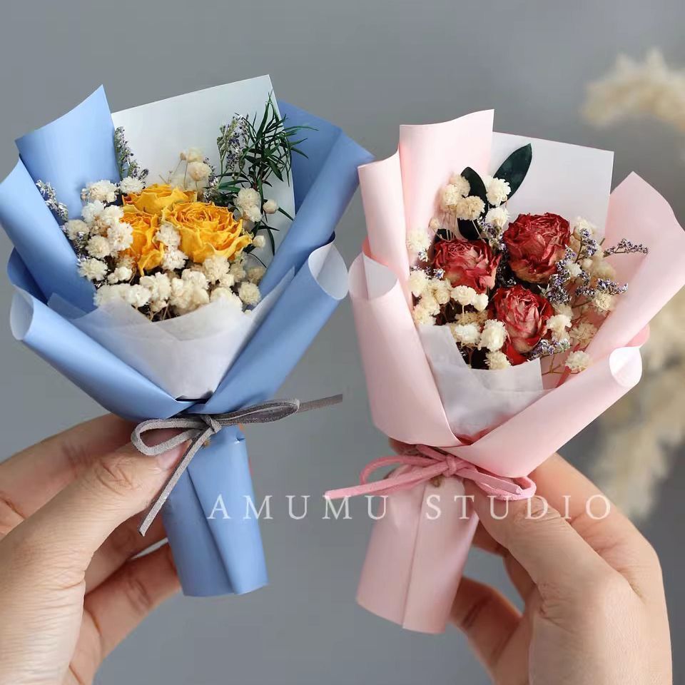 迷你小清新花束玫瑰干花mini精致伴手礼品满天星礼物装饰女圣诞节