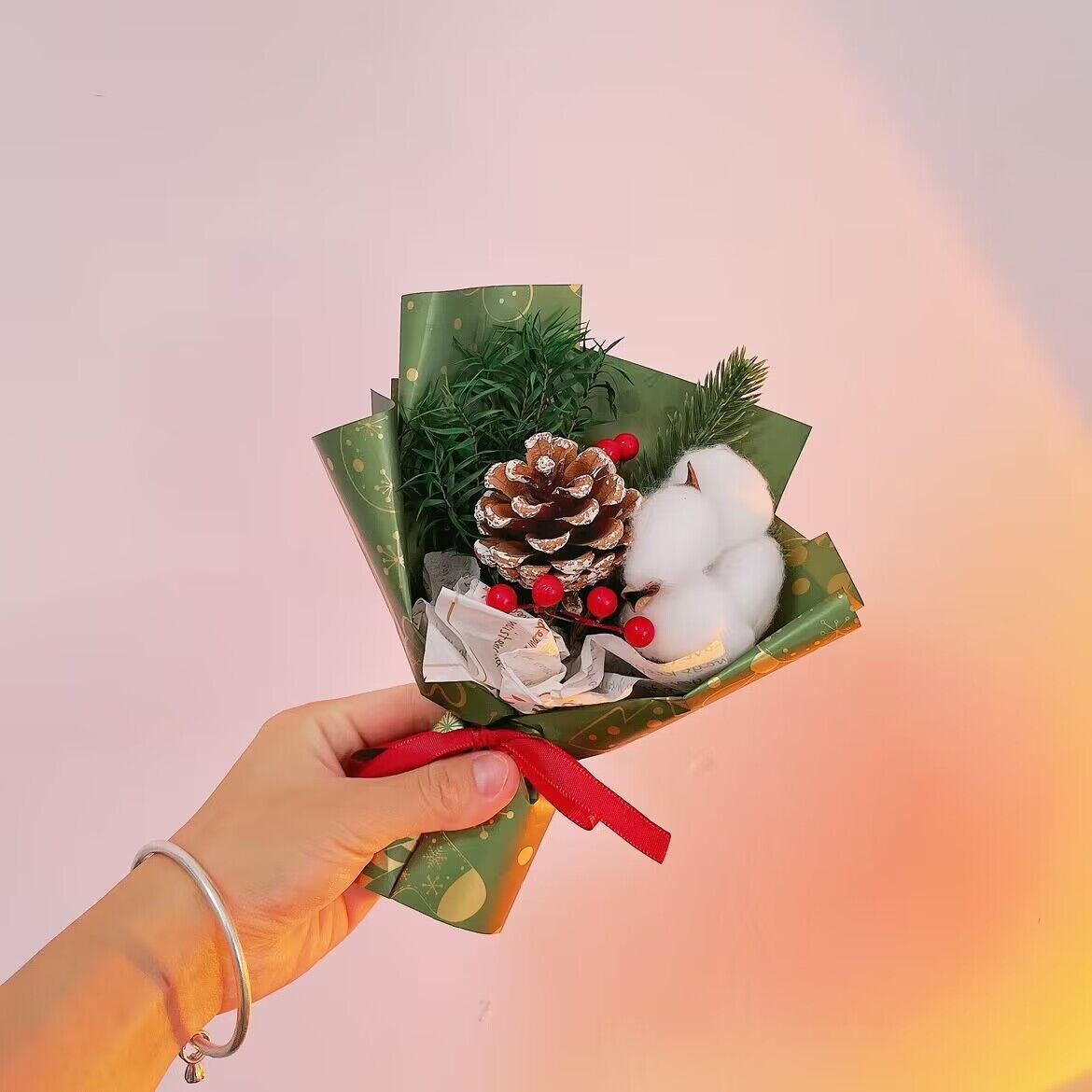 圣诞礼物圣诞花束礼盒DIY搭配创意礼物棉花松果送女朋友麋鹿圣诞