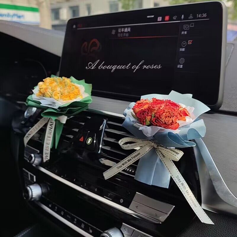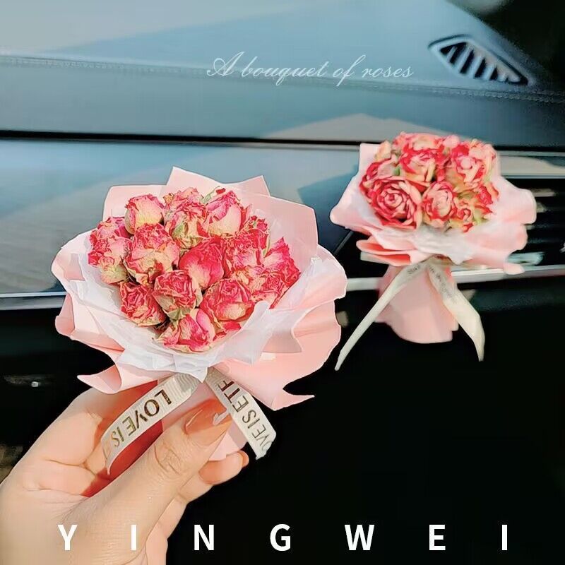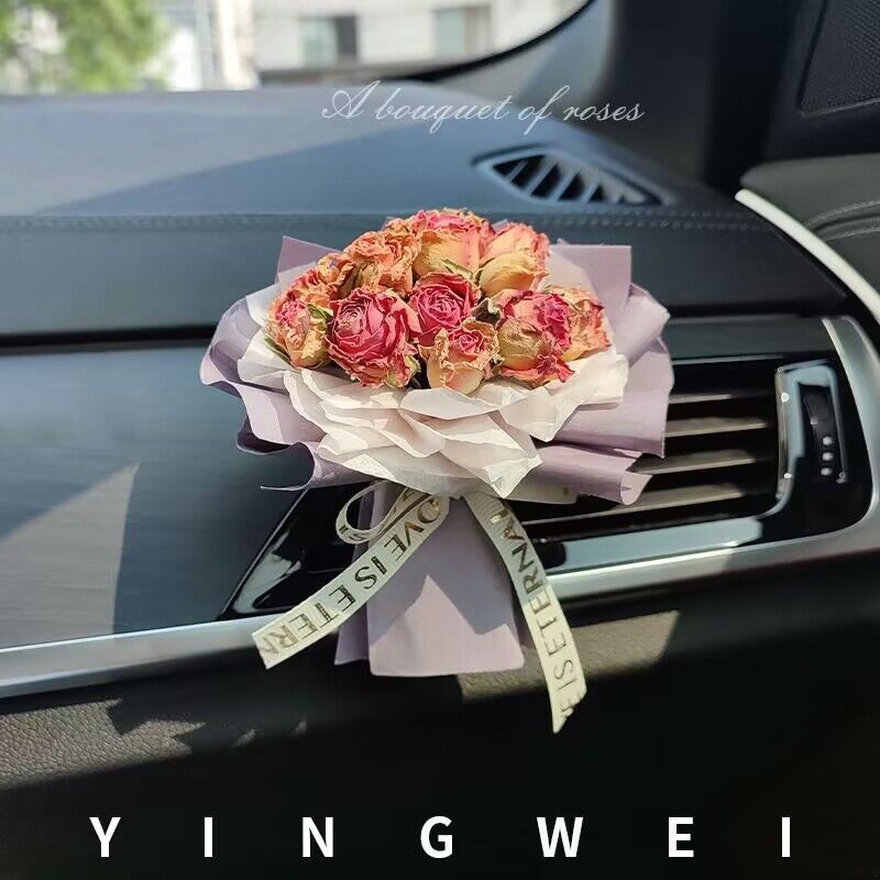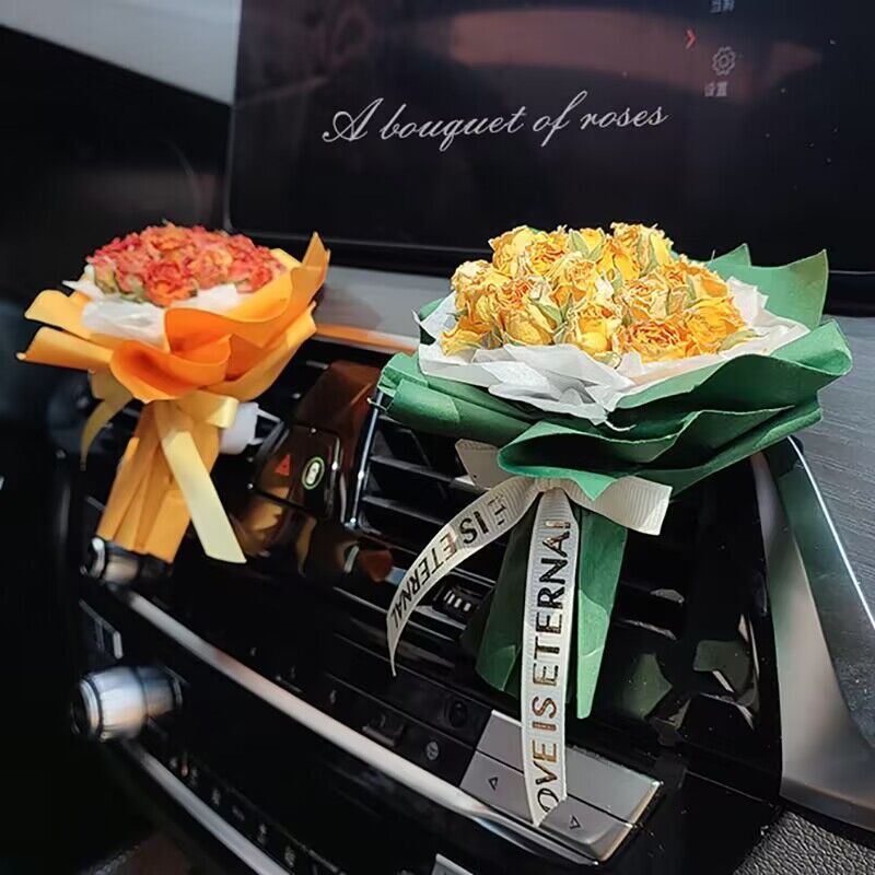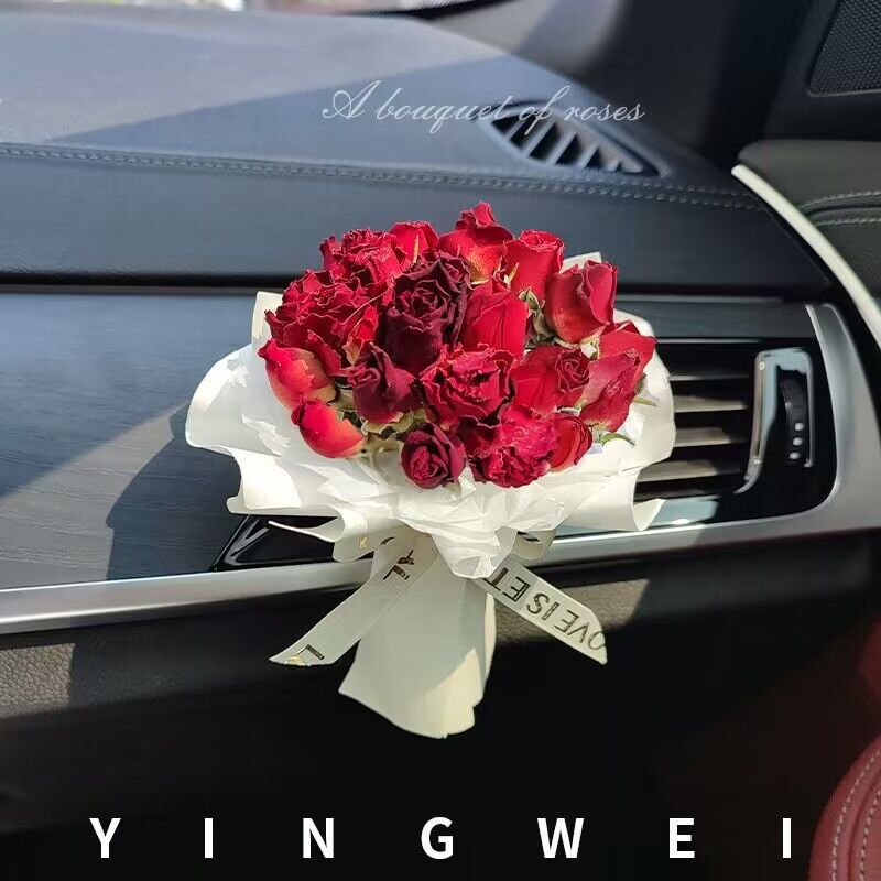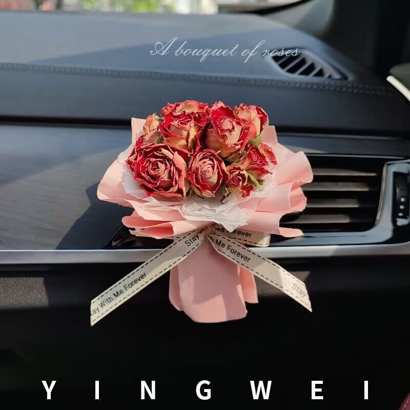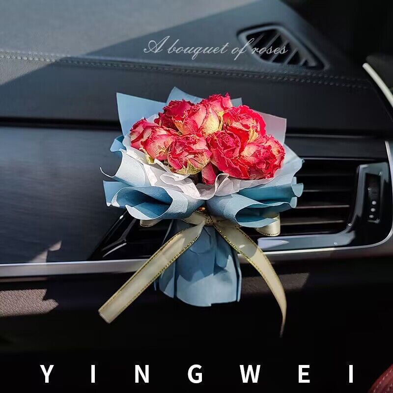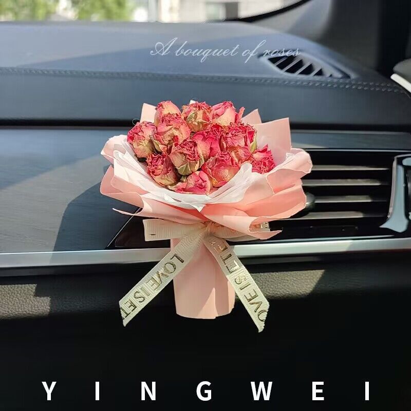 车载香薰出风口香水创意玫瑰干花花束装饰汽车空调香氛夹摆件礼物