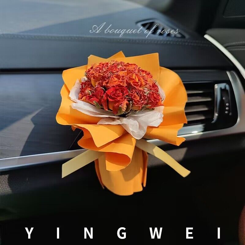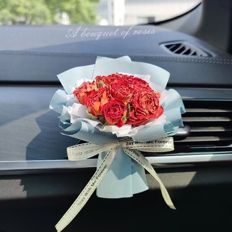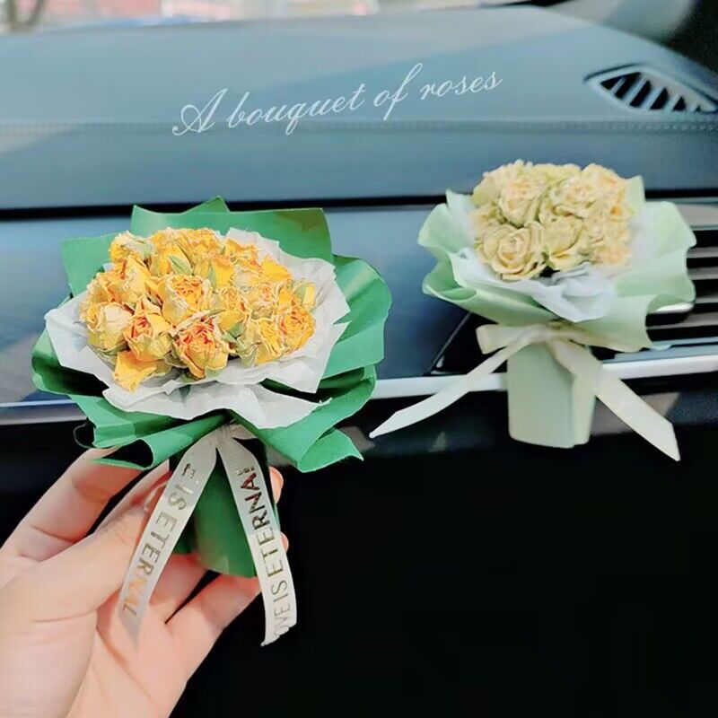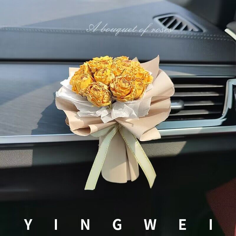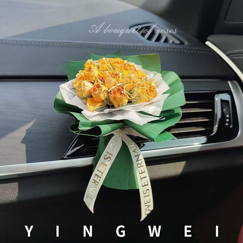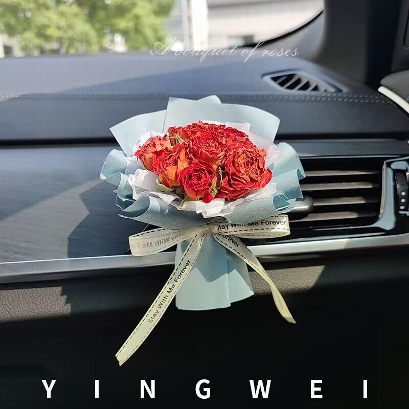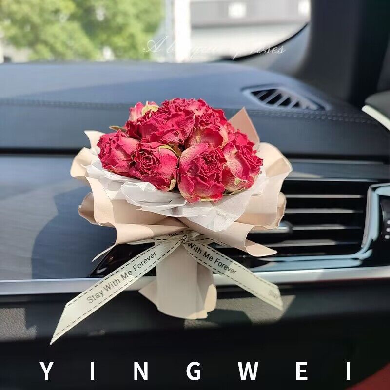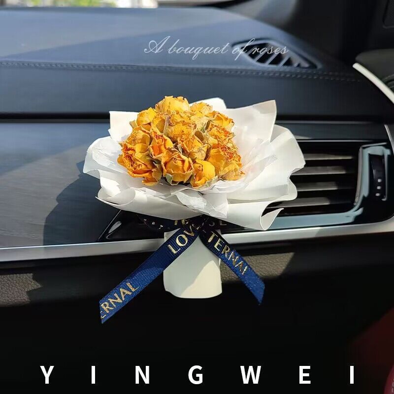 车载香薰出风口香水创意玫瑰干花花束装饰汽车空调香氛夹摆件礼物