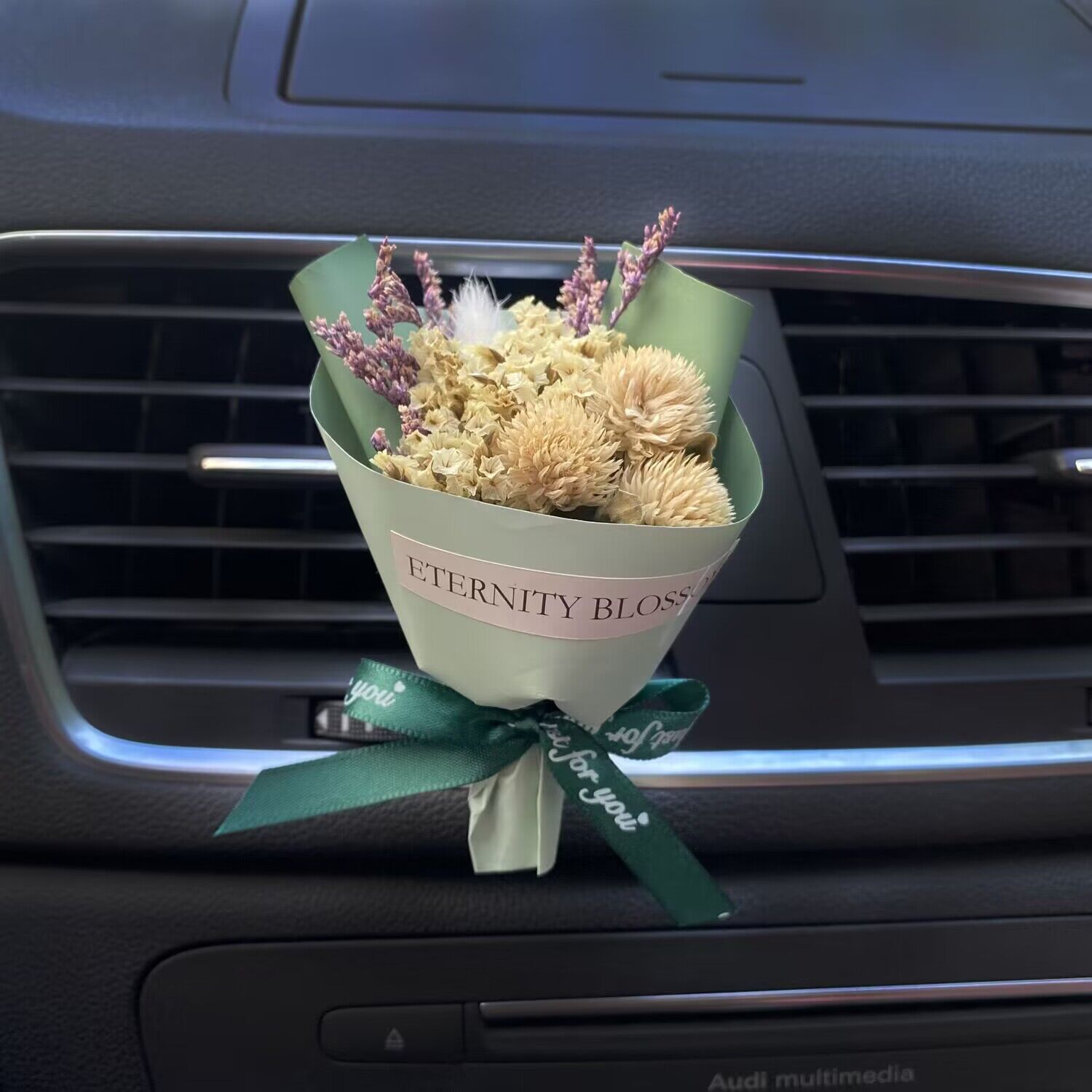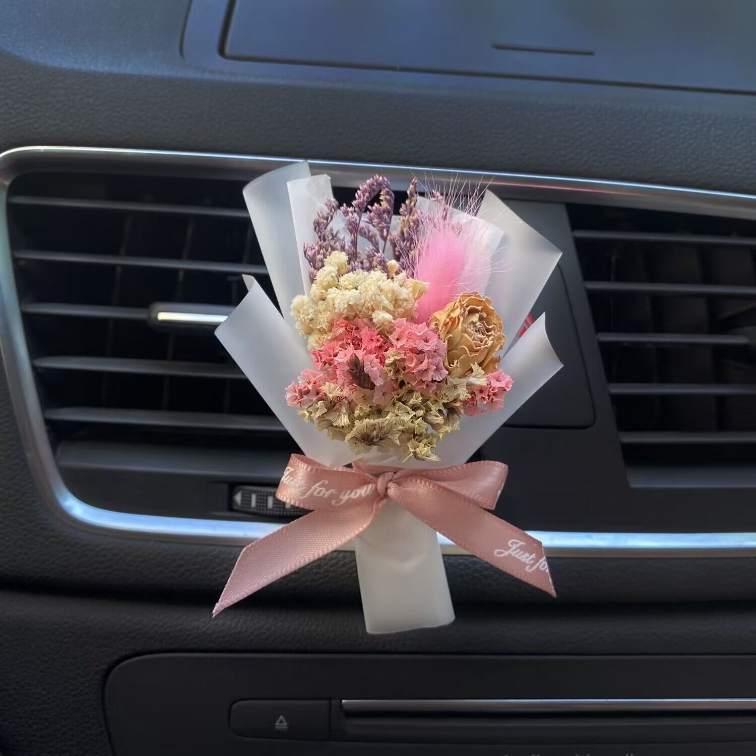 车载香薰出风口香水创意永生干花束汽车装饰摆件空调香氛夹玫瑰