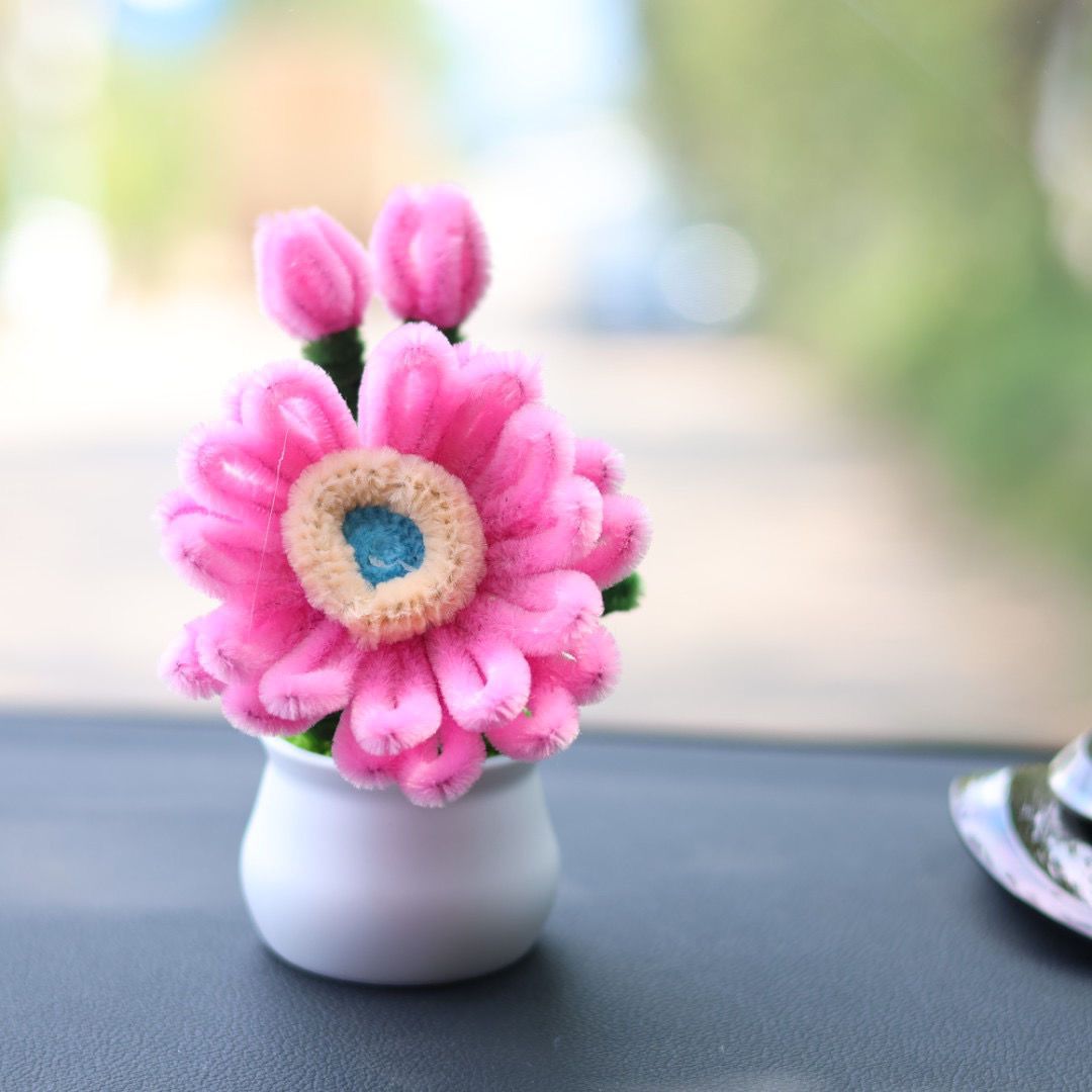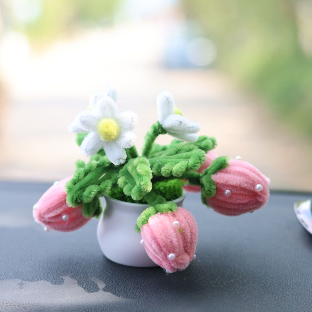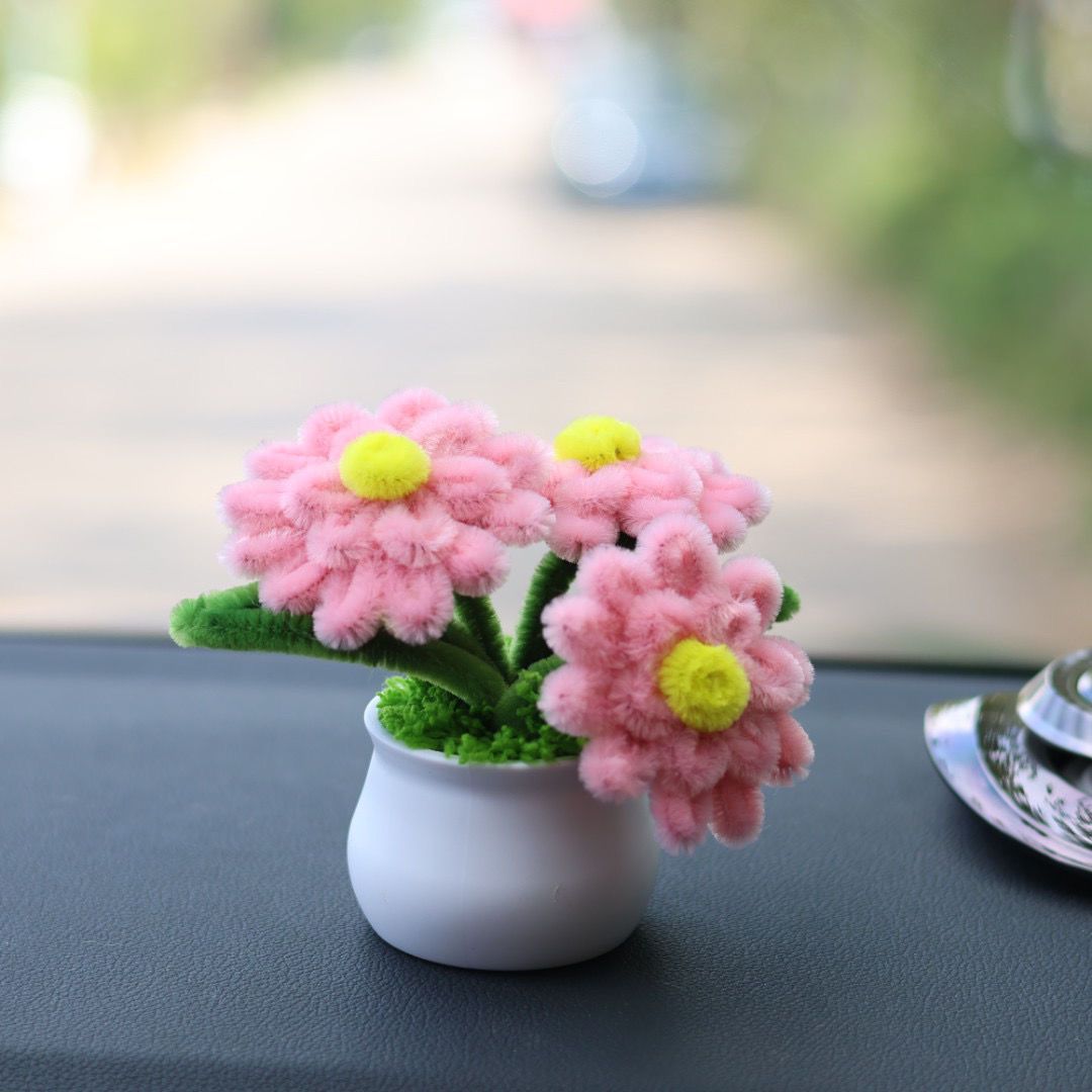 【成品】可爱小盆栽车载办公桌摆件教师节礼物扭扭棒手工迷你花束