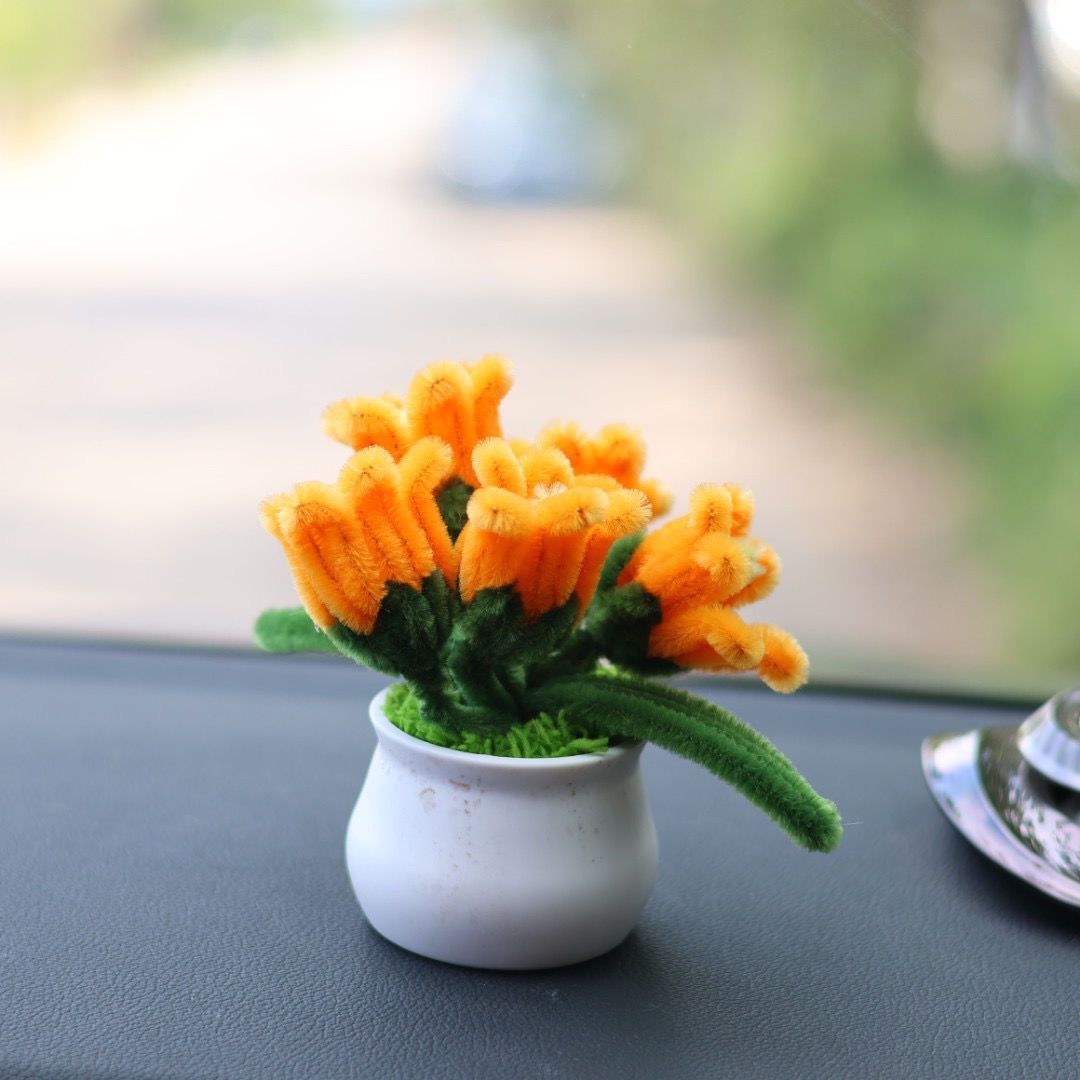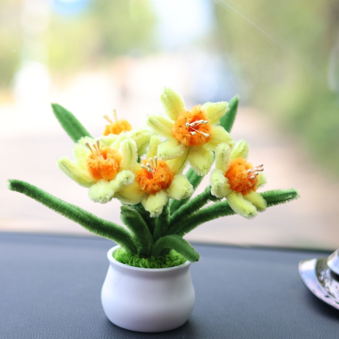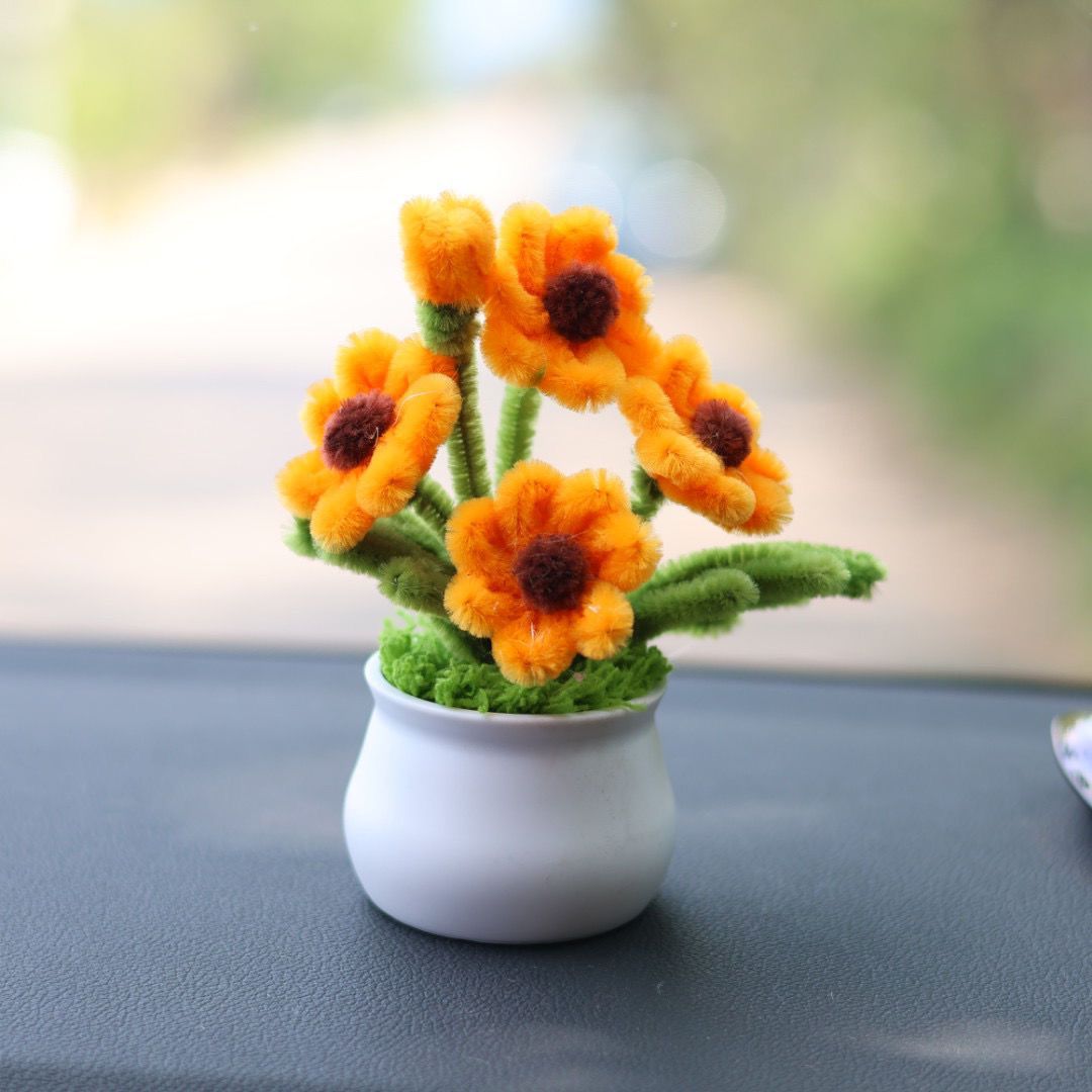 【成品】可爱小盆栽车载办公桌摆件教师节礼物扭扭棒手工迷你花束