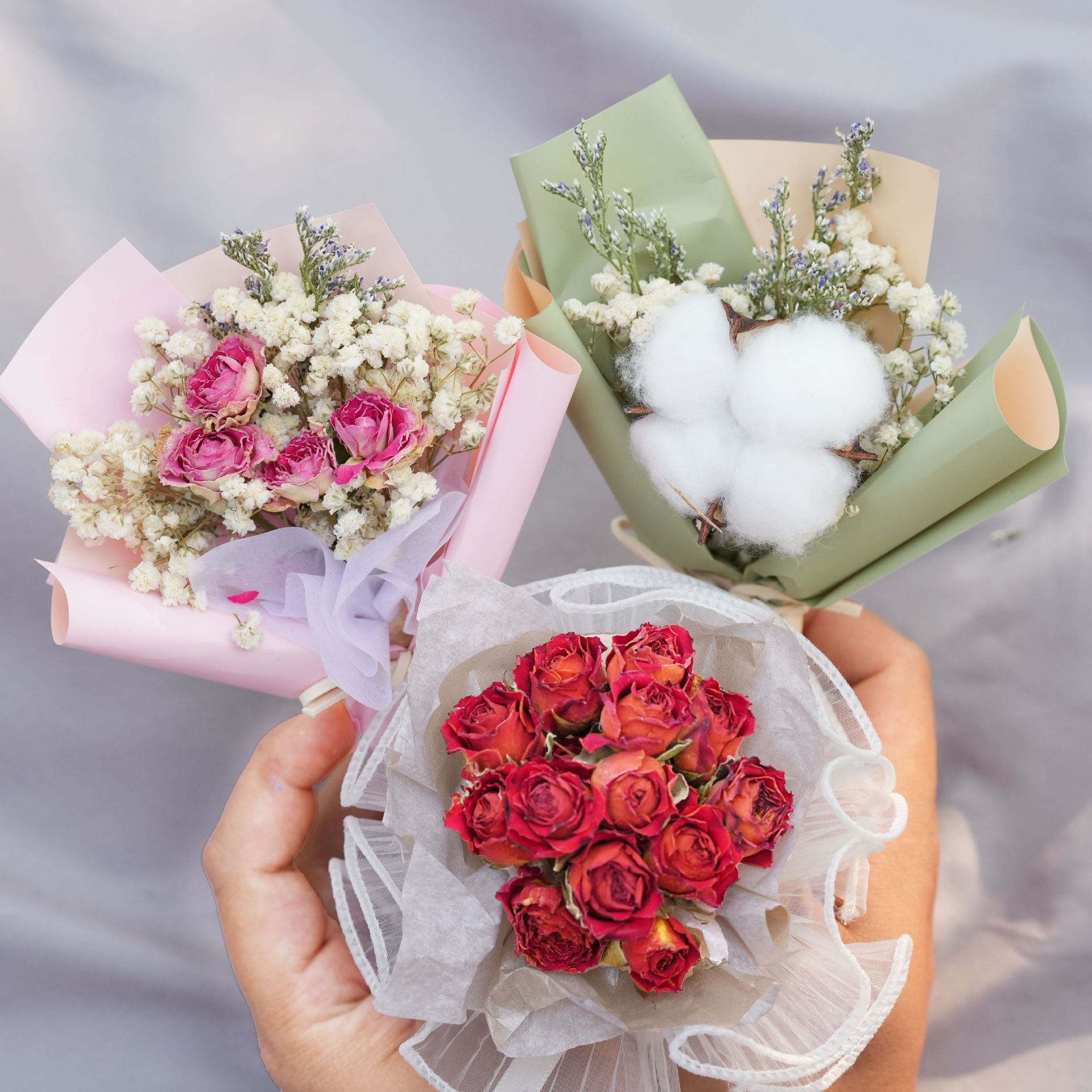 精致迷你小花束玫瑰干花伴手礼满天星永生花装饰礼物批发520创意