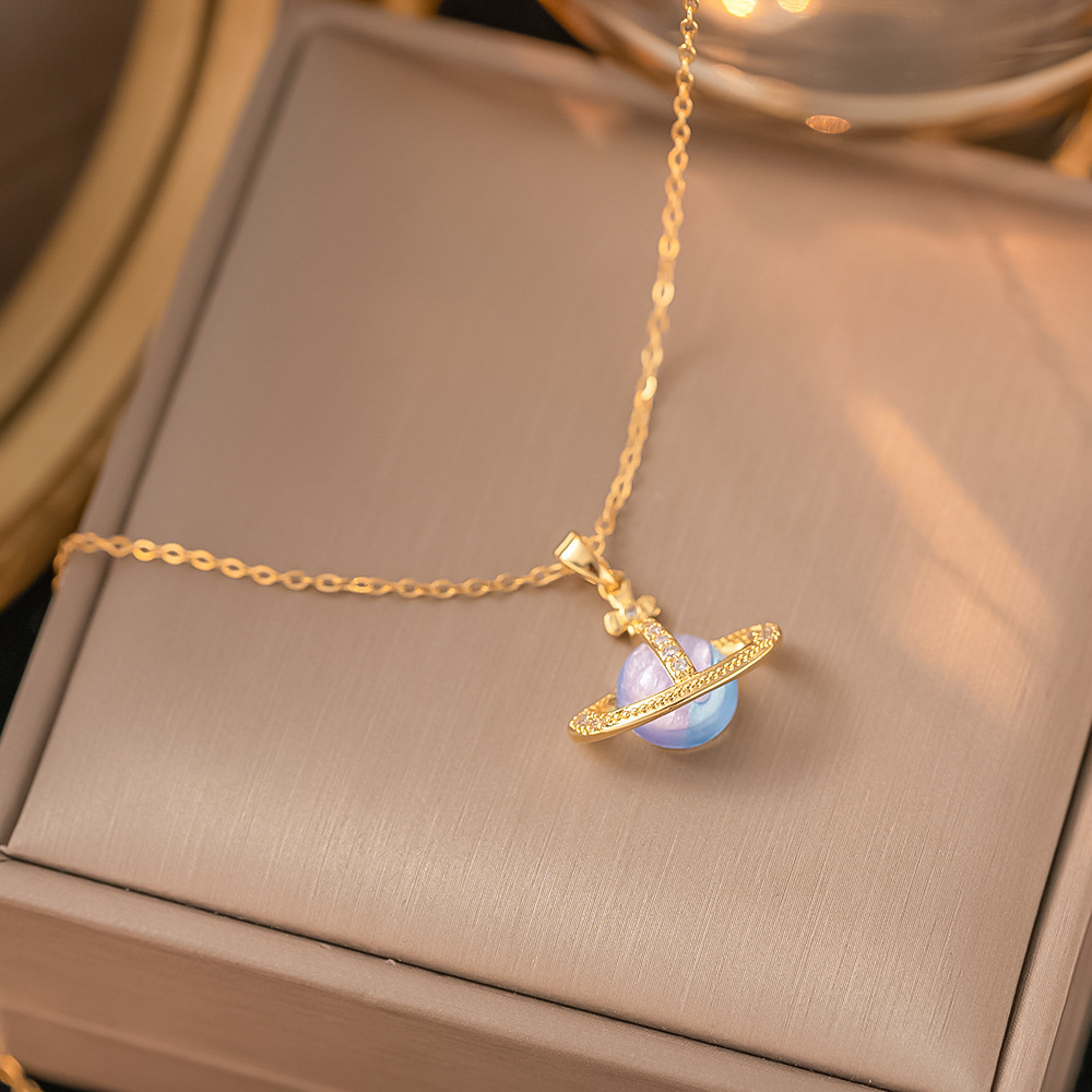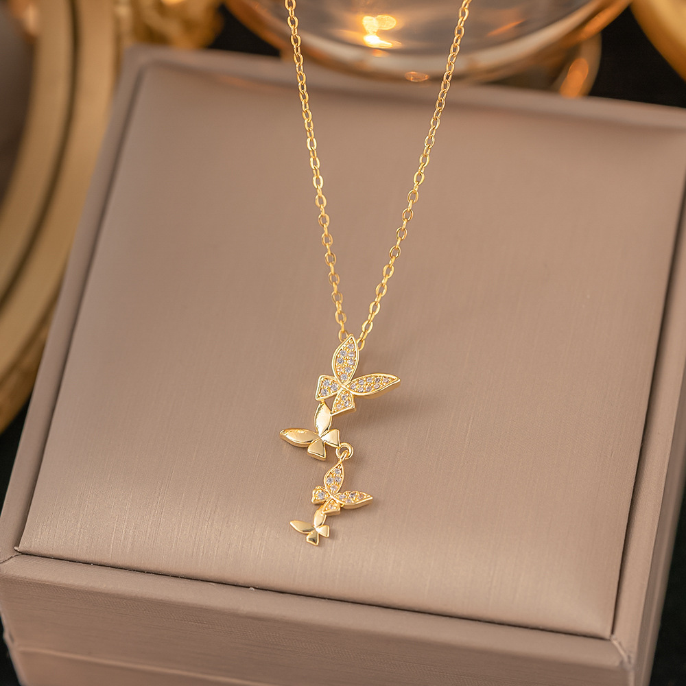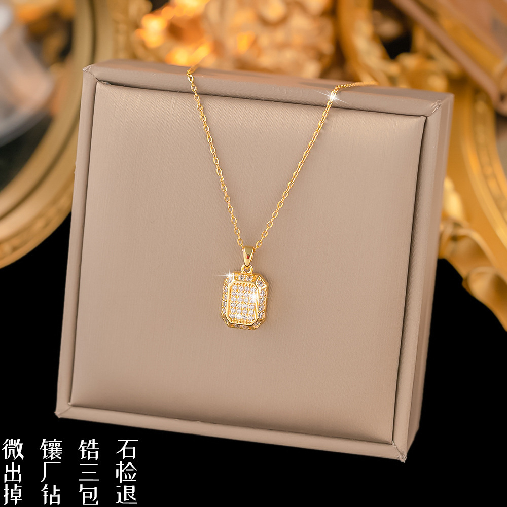 不掉色钛钢项链女百搭小众饰品感精致网红毛衣链简约铜吊坠