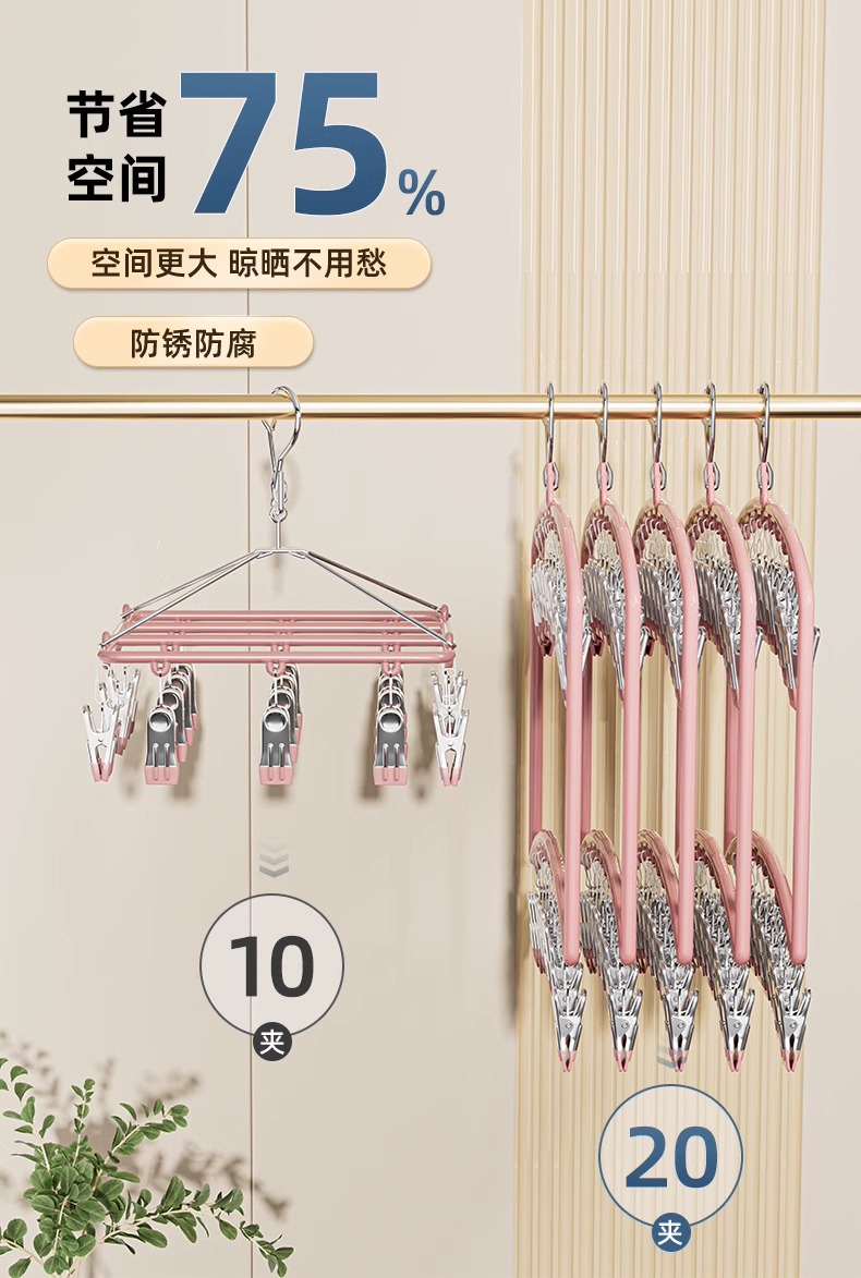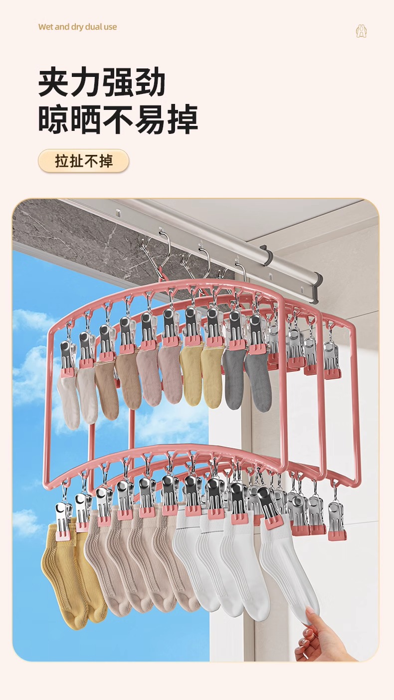袜子晾晒架夹子款凉衣架多功能无痕家用阳台夹内衣内裤专用不锈钢