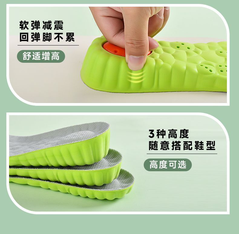 增高鞋垫男款士boost爆米花运动气垫减震内增高男生隐形不累脚女