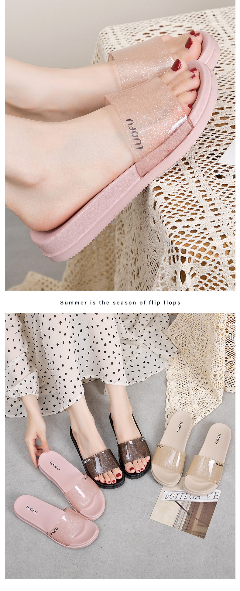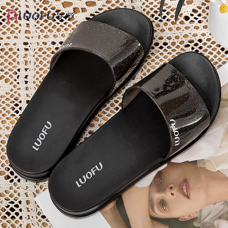 罗敷高级感拖鞋女新款厚底居家室内浴室洗澡外穿一字夏季防滑凉拖