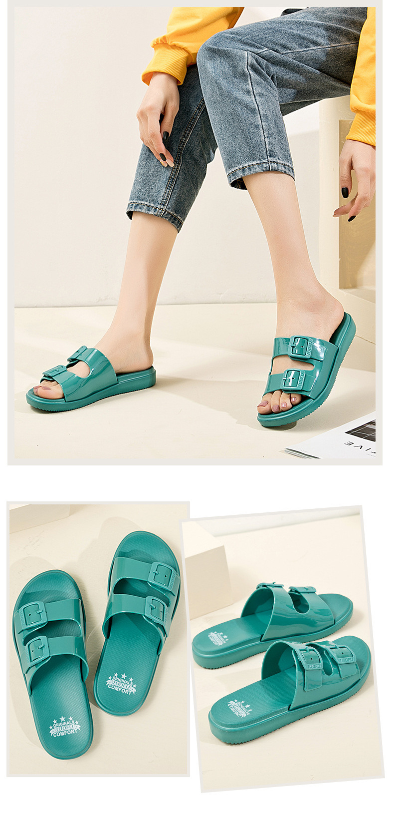 罗敷平底拖鞋女夏时尚外穿新款凉鞋韩版沙滩旅游度假防滑居家休闲