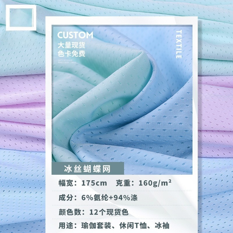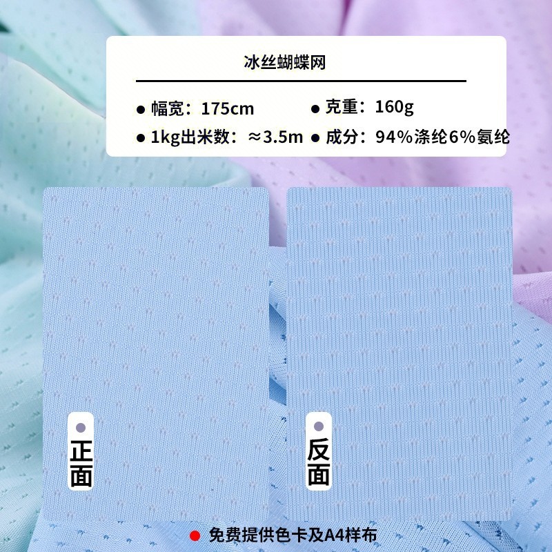 160g冰丝网眼布 涤氨网眼面料透气弹力蝴蝶网 速干防嗮冰丝面料