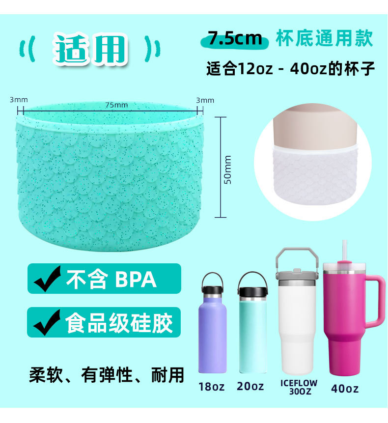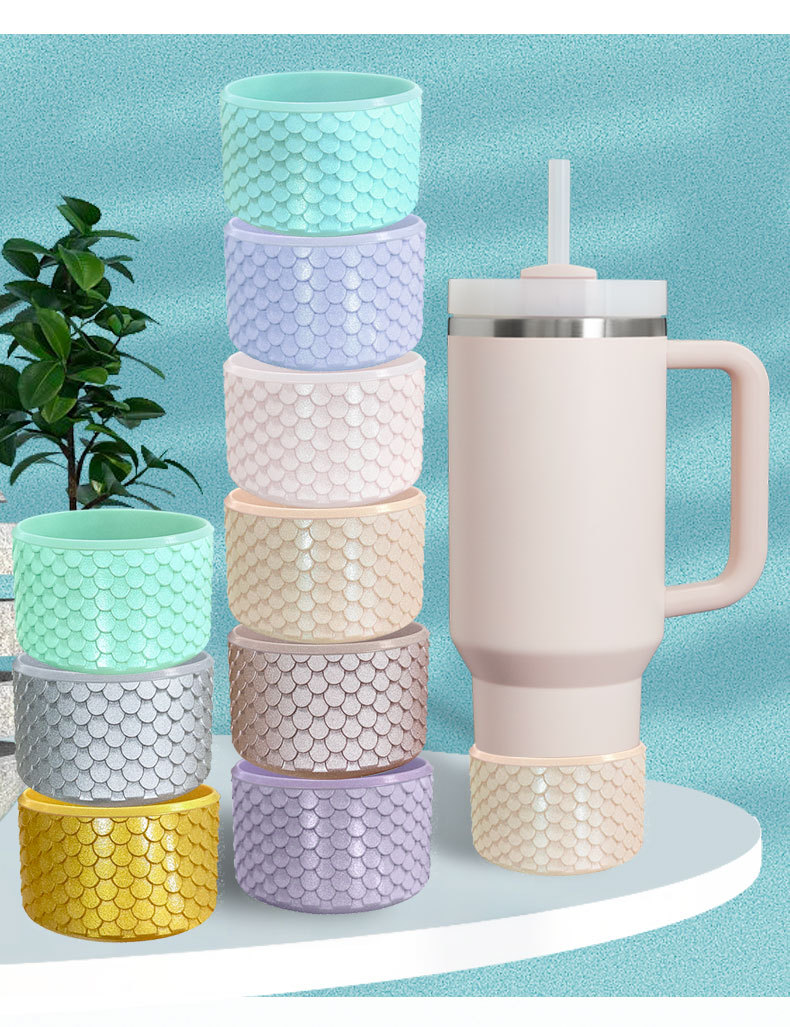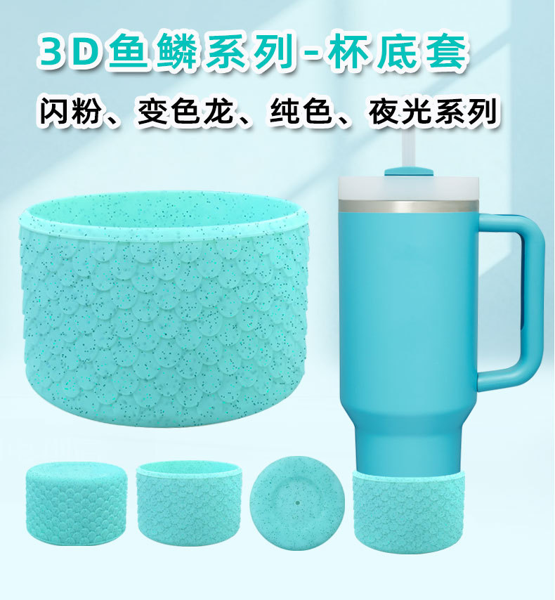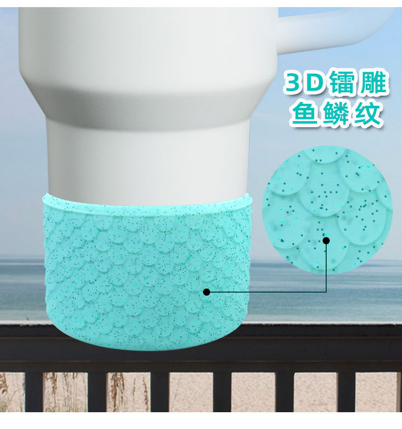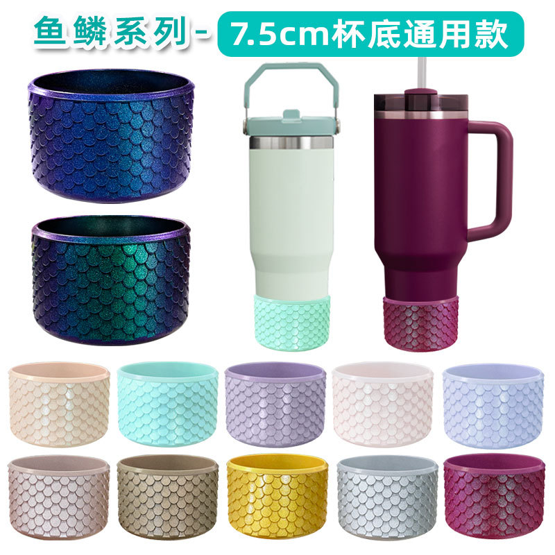鱼鳞纹硅胶杯套冰霸杯套运动水壶太空杯杯底套车载水杯硅胶套批发