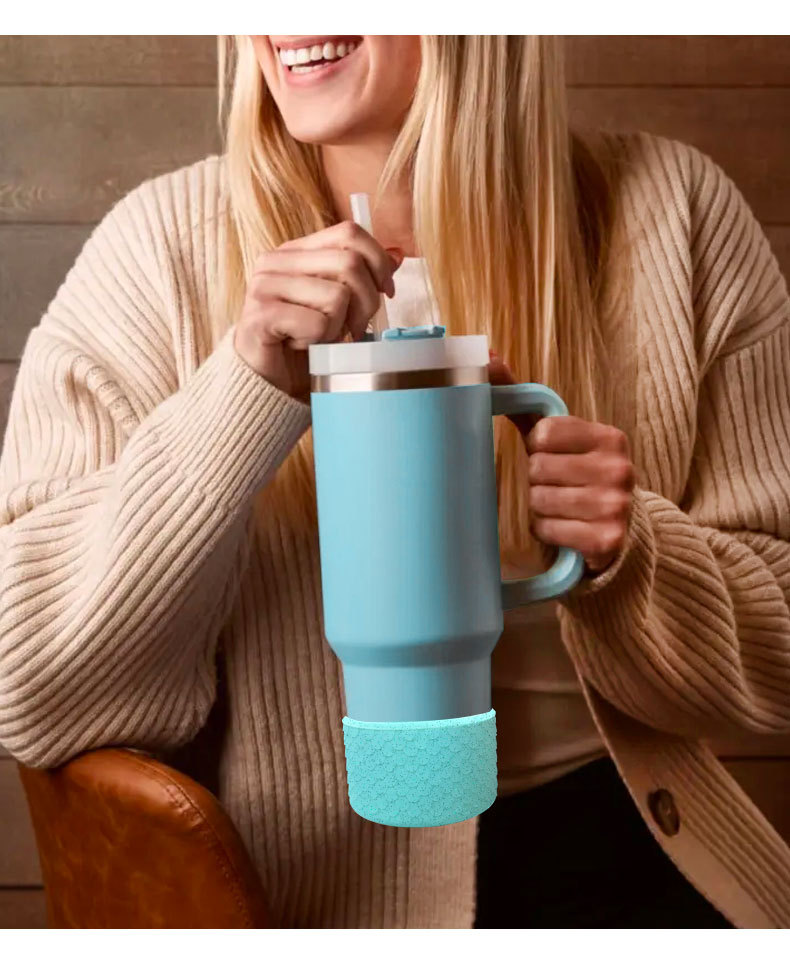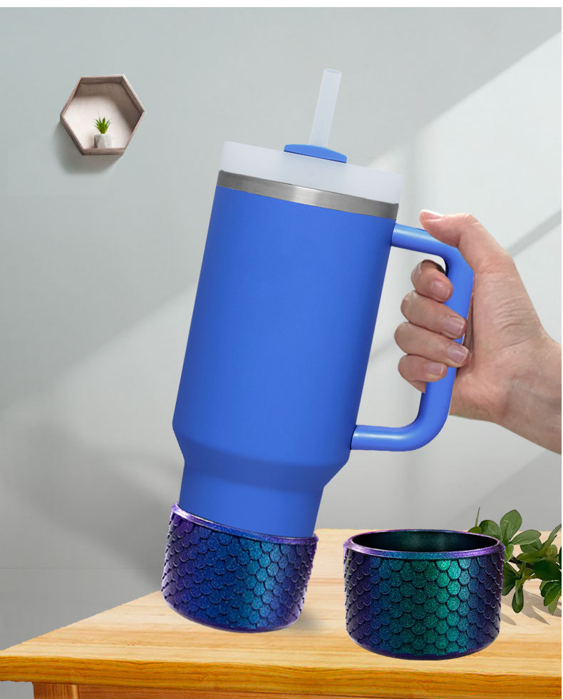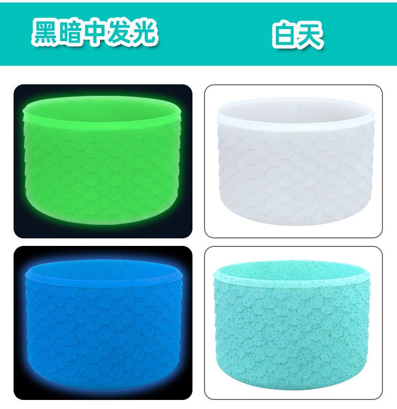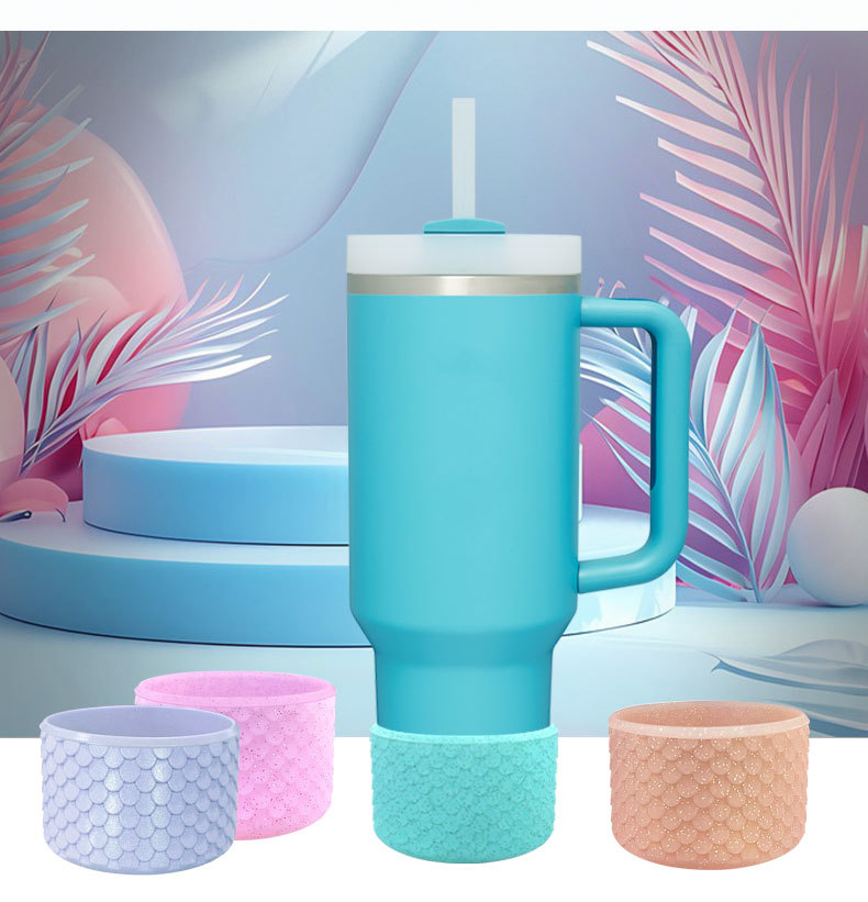 鱼鳞纹硅胶杯套冰霸杯套运动水壶太空杯杯底套车载水杯硅胶套批发