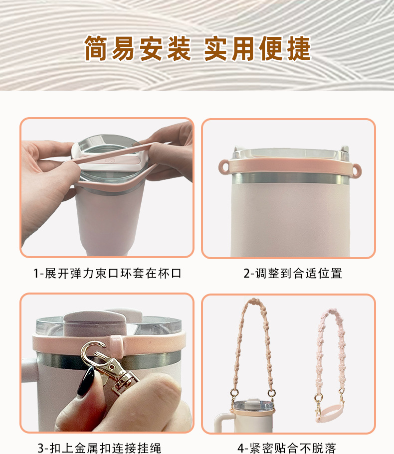 owala杯底靴Stanley水杯挂绳水瓶吊带水杯提手硅胶杯绑带便携绳套