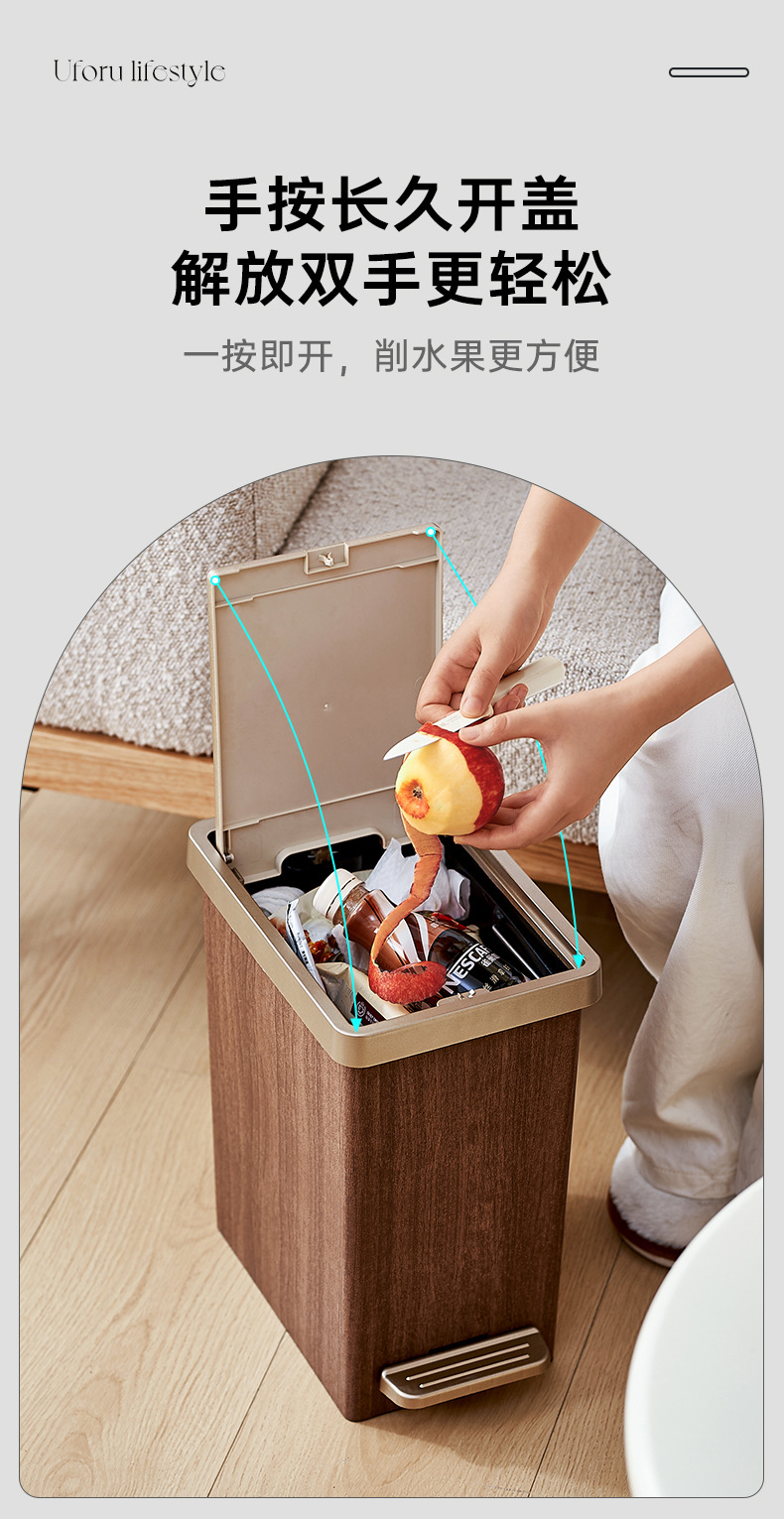 脚踏垃圾桶家用高级感厨房大号卫生间厕所双开夹缝垃圾桶带盖防水