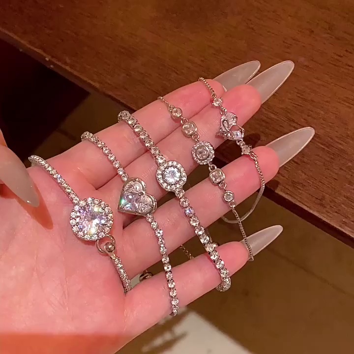 饰品水晶手串小众高级感珍珠手链女时尚气质爆闪锆石爱心手镯
