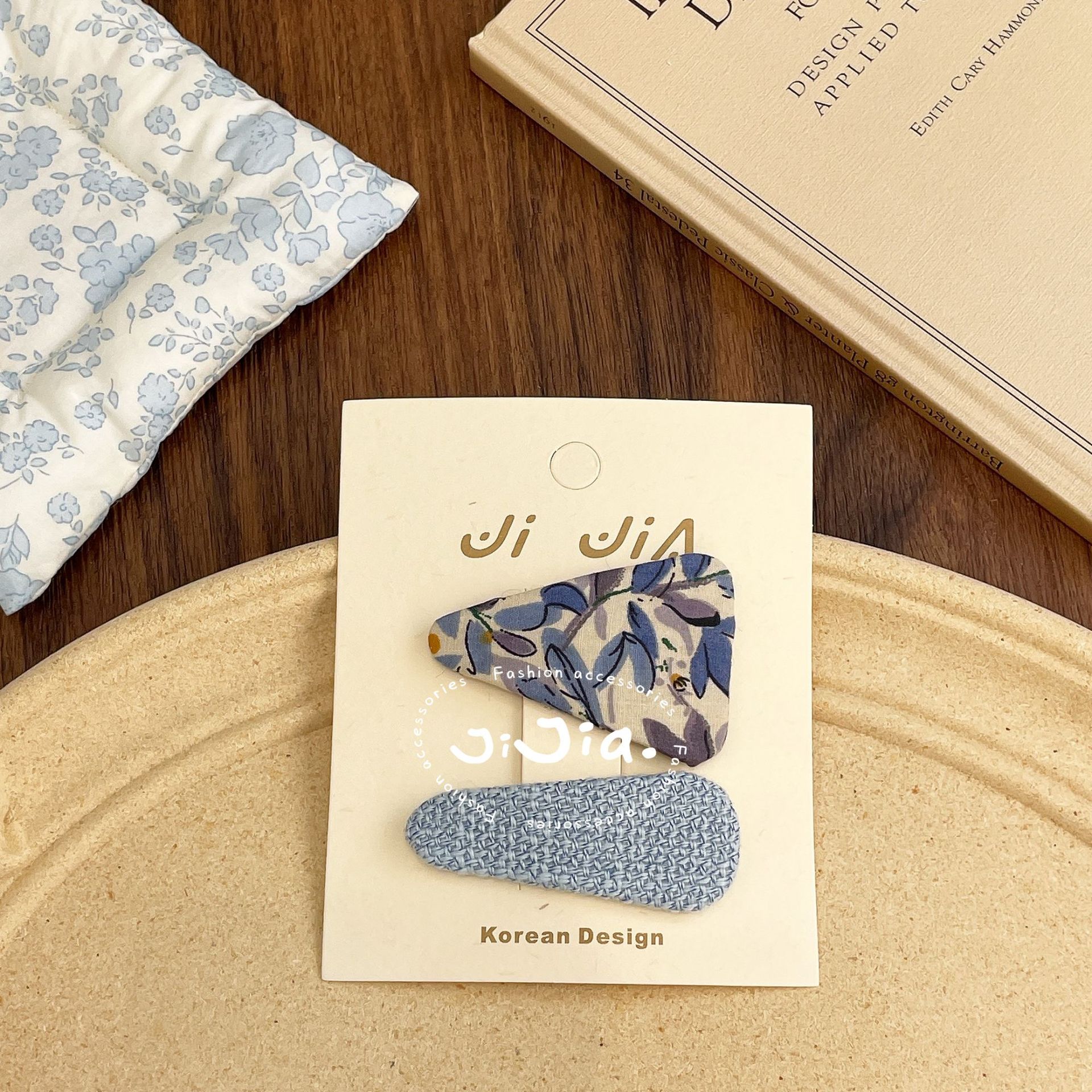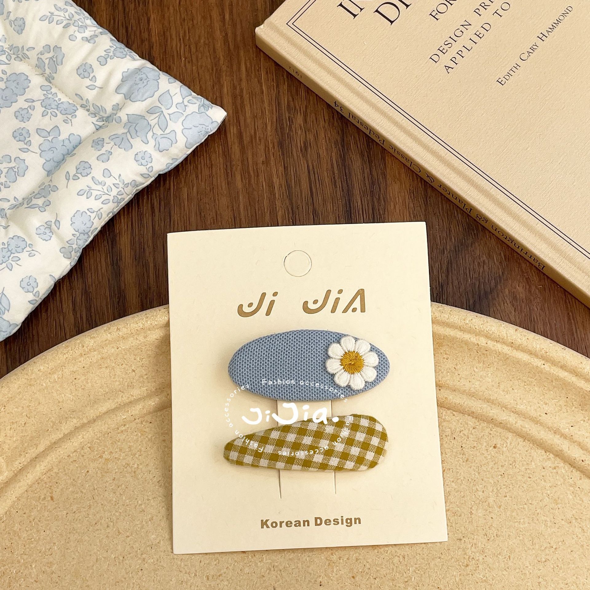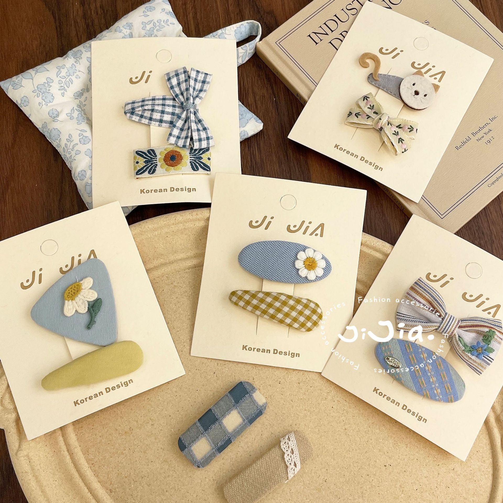 韩系碎花蓝白格纹碎花发夹可爱甜美儿童布艺发卡刺绣碎花侧边夹