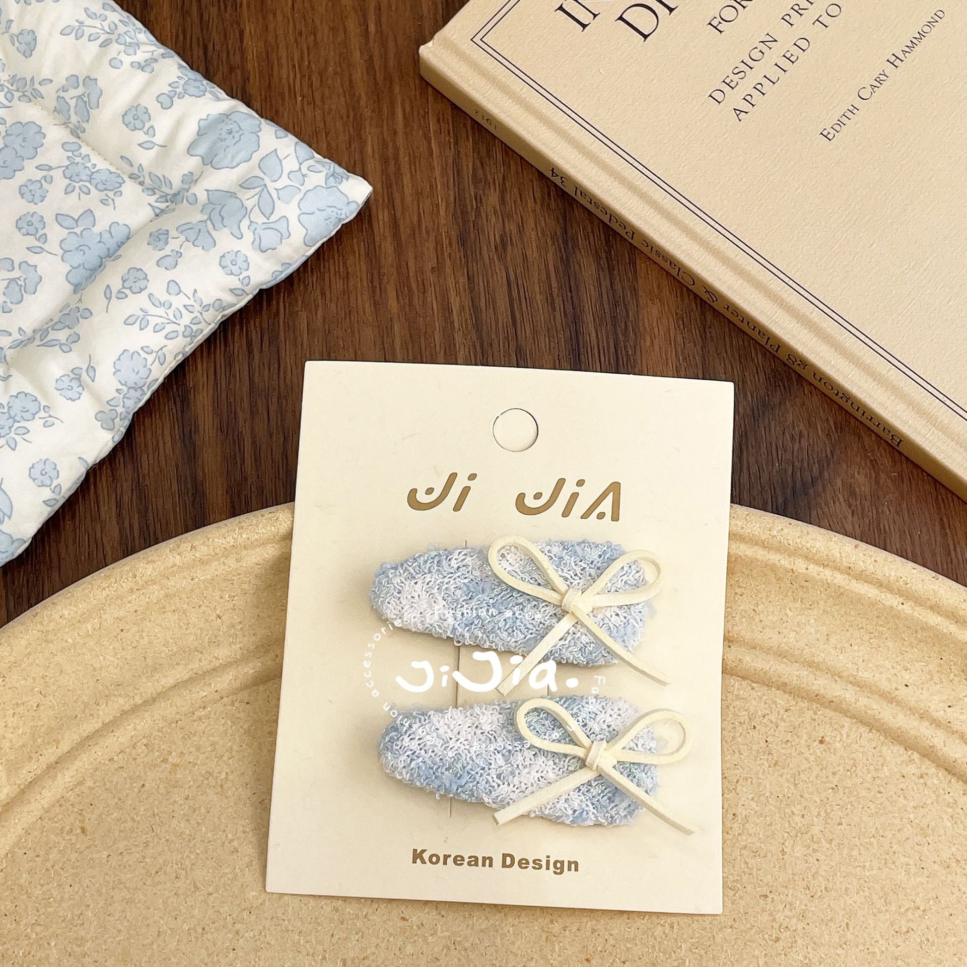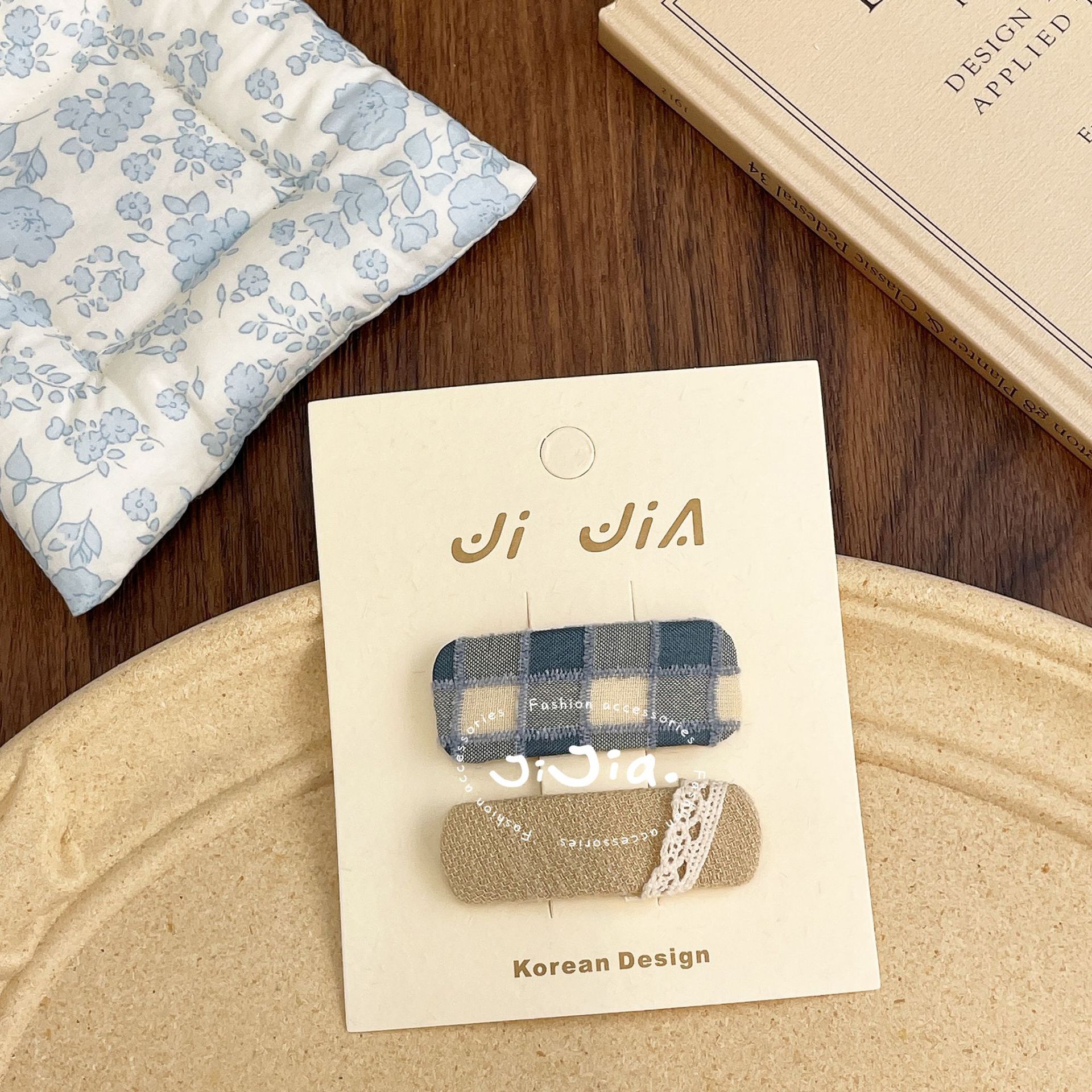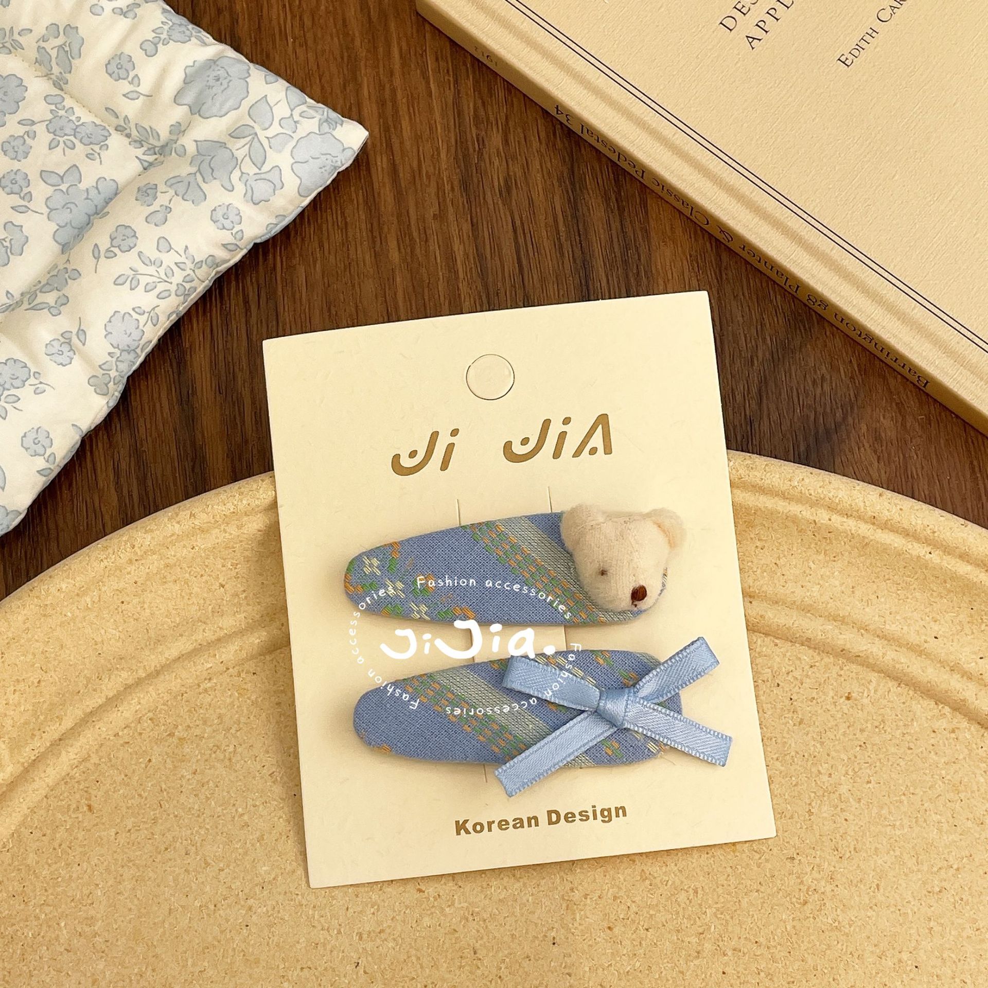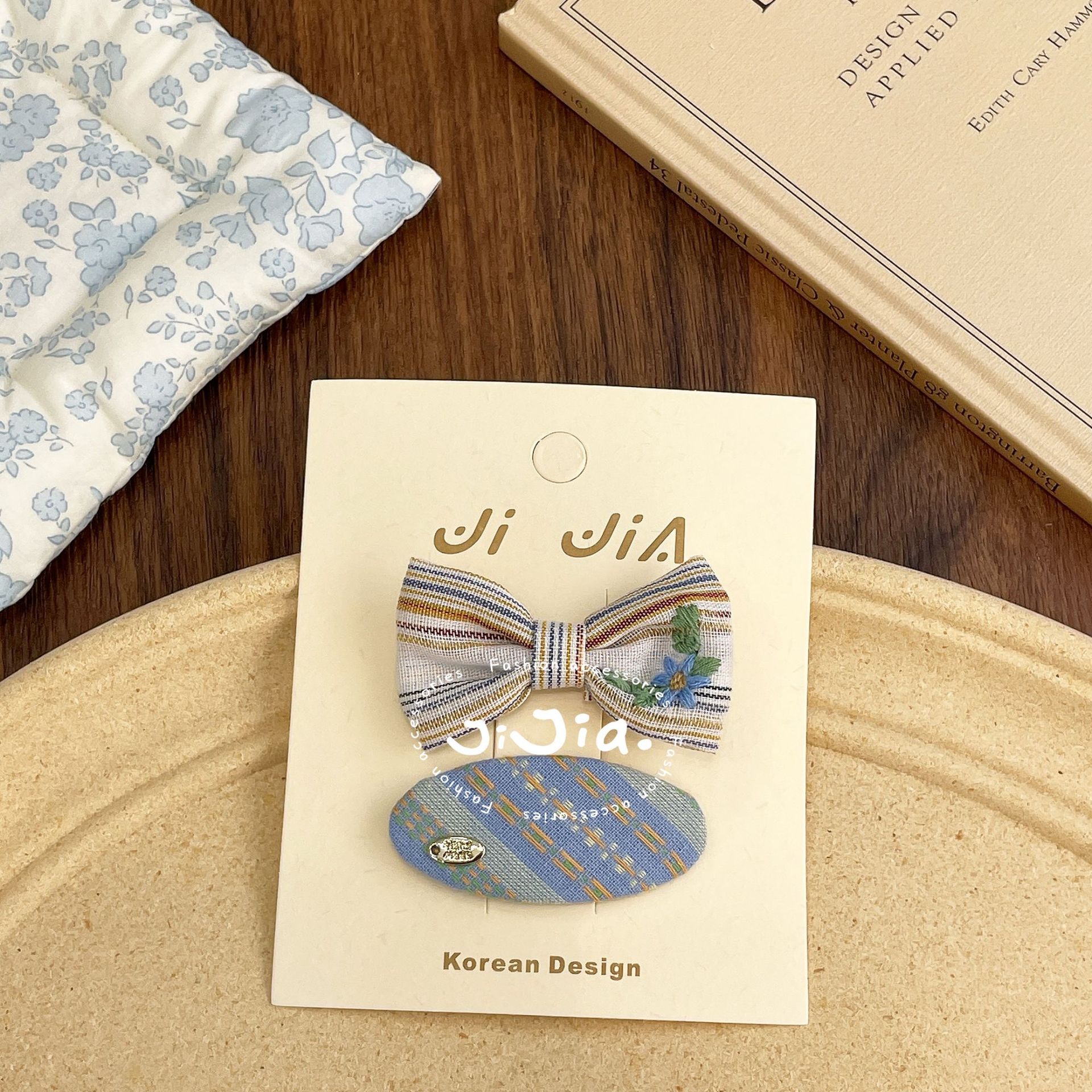韩系碎花蓝白格纹碎花发夹可爱甜美儿童布艺发卡刺绣碎花侧边夹