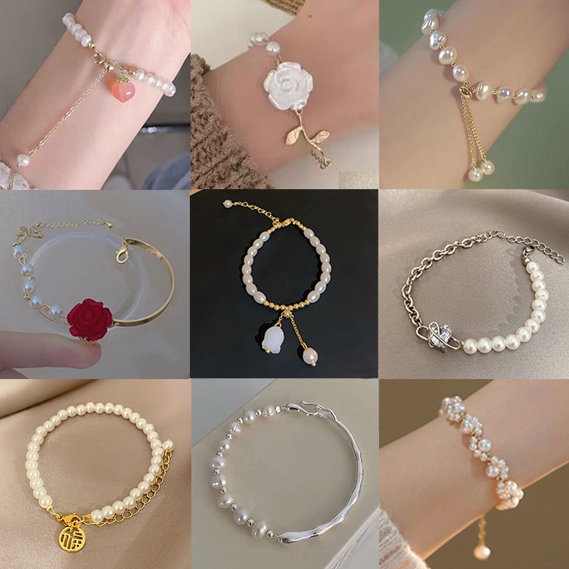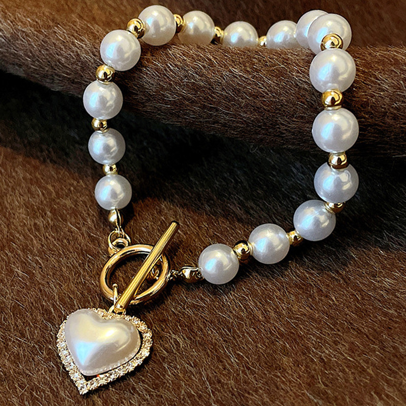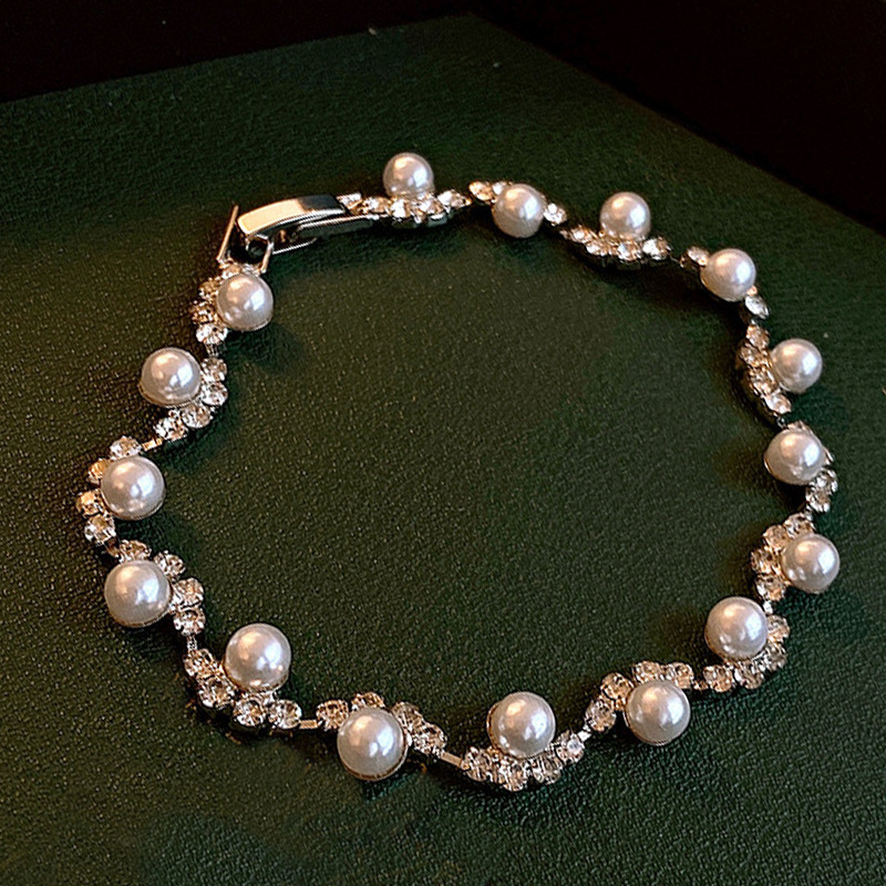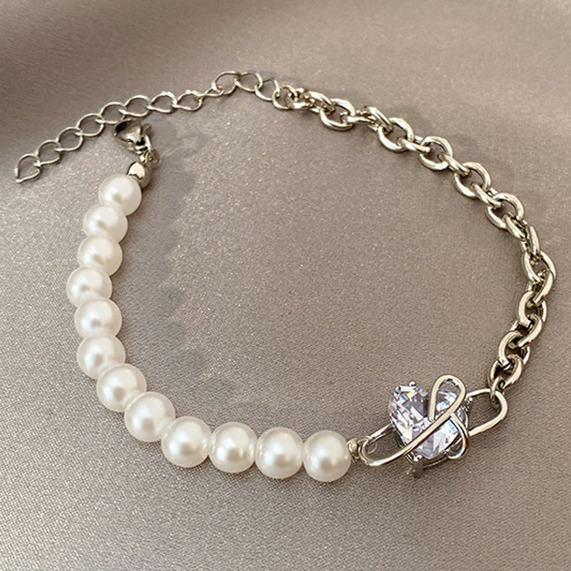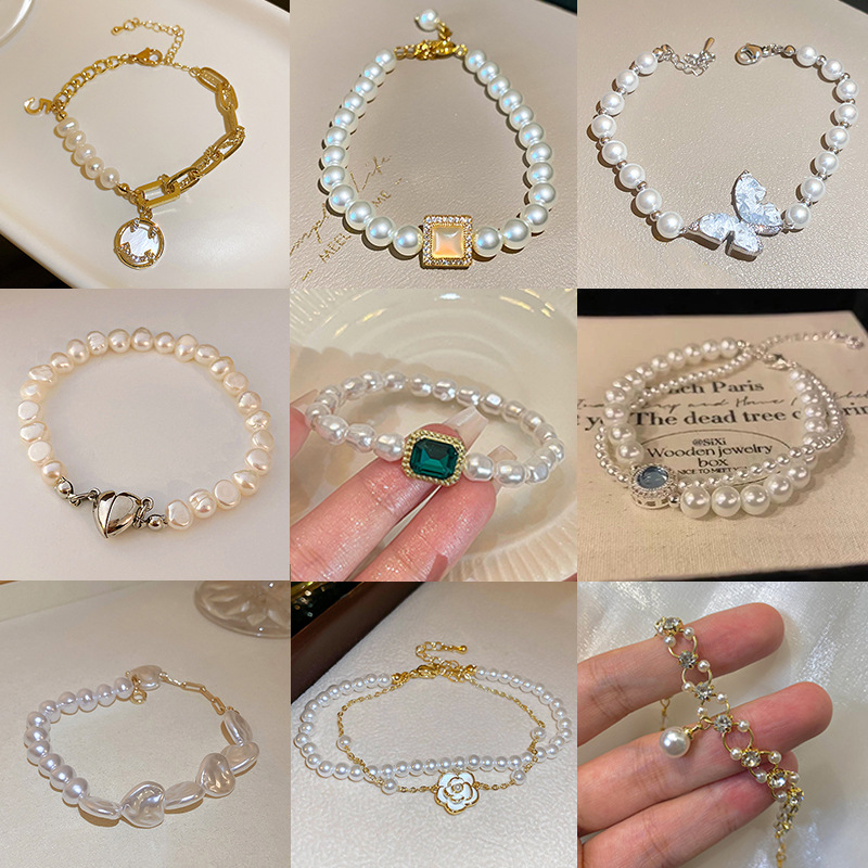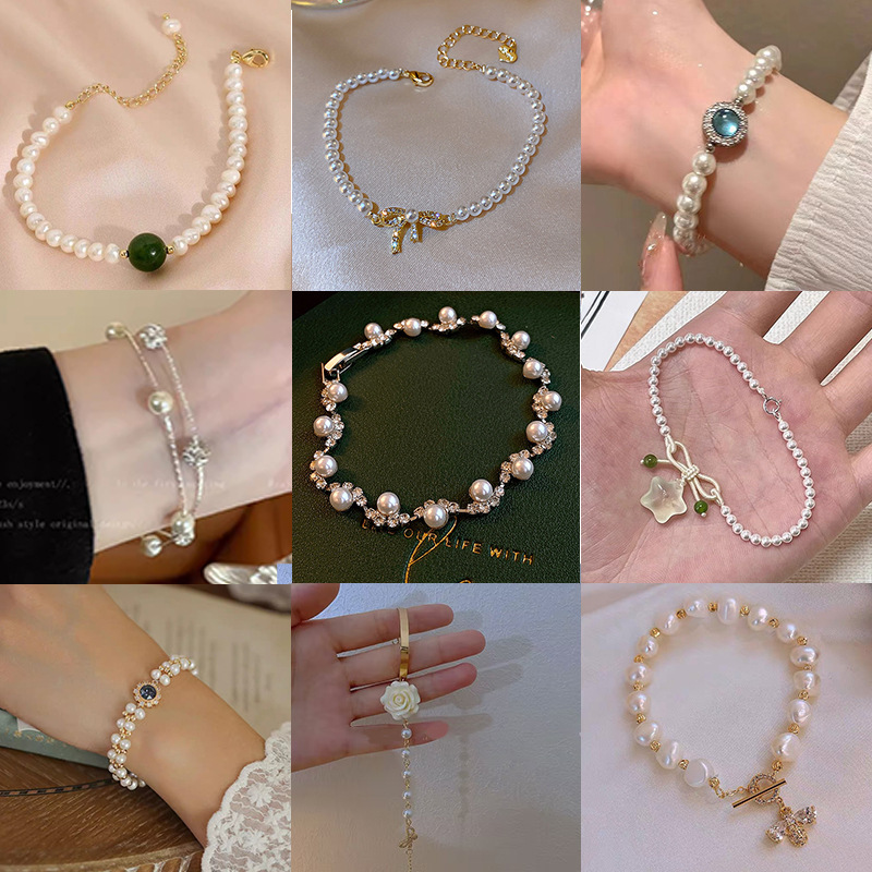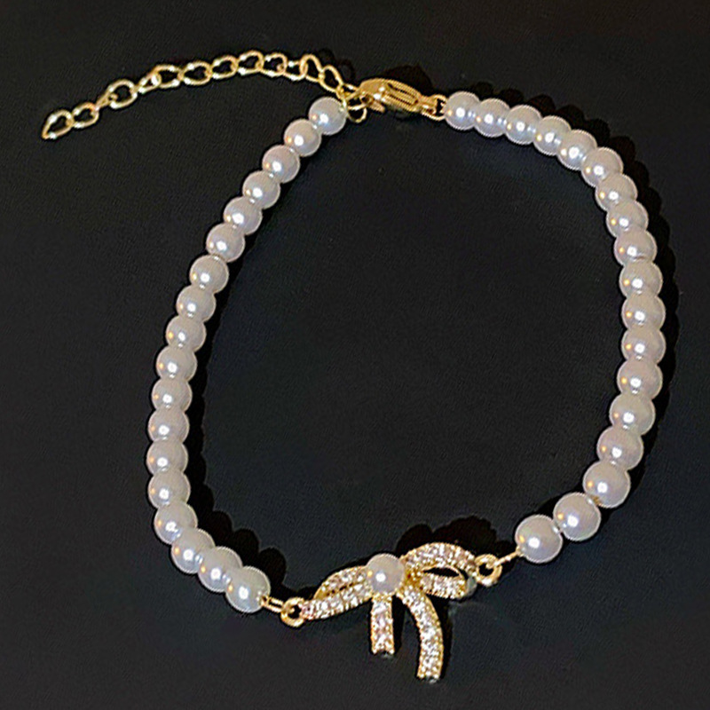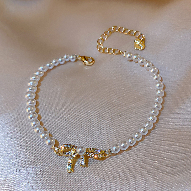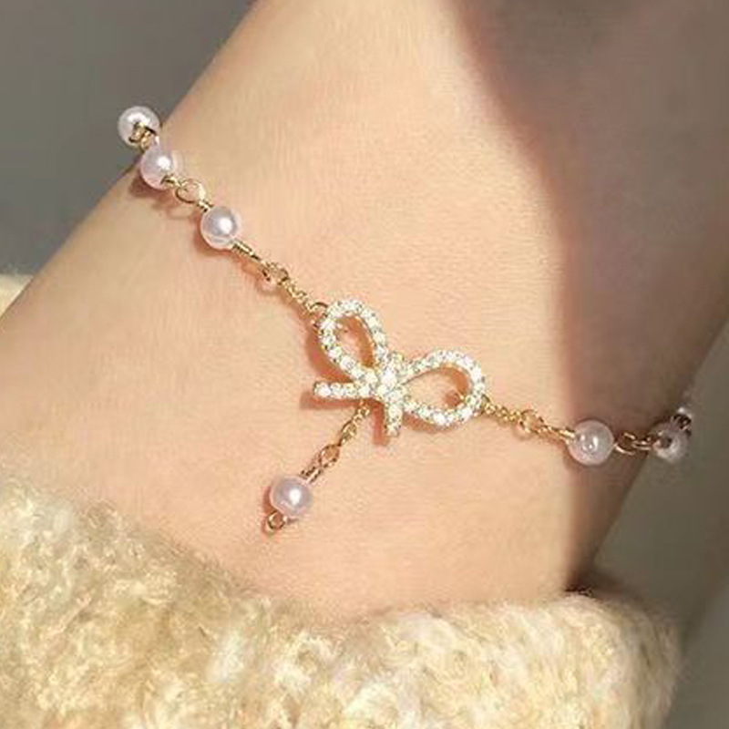 韩国新款珍珠手链小众百搭感精致锆石爱心手串气质蝴蝶结手镯