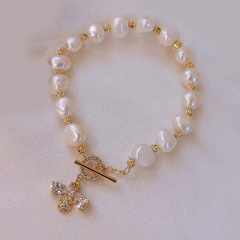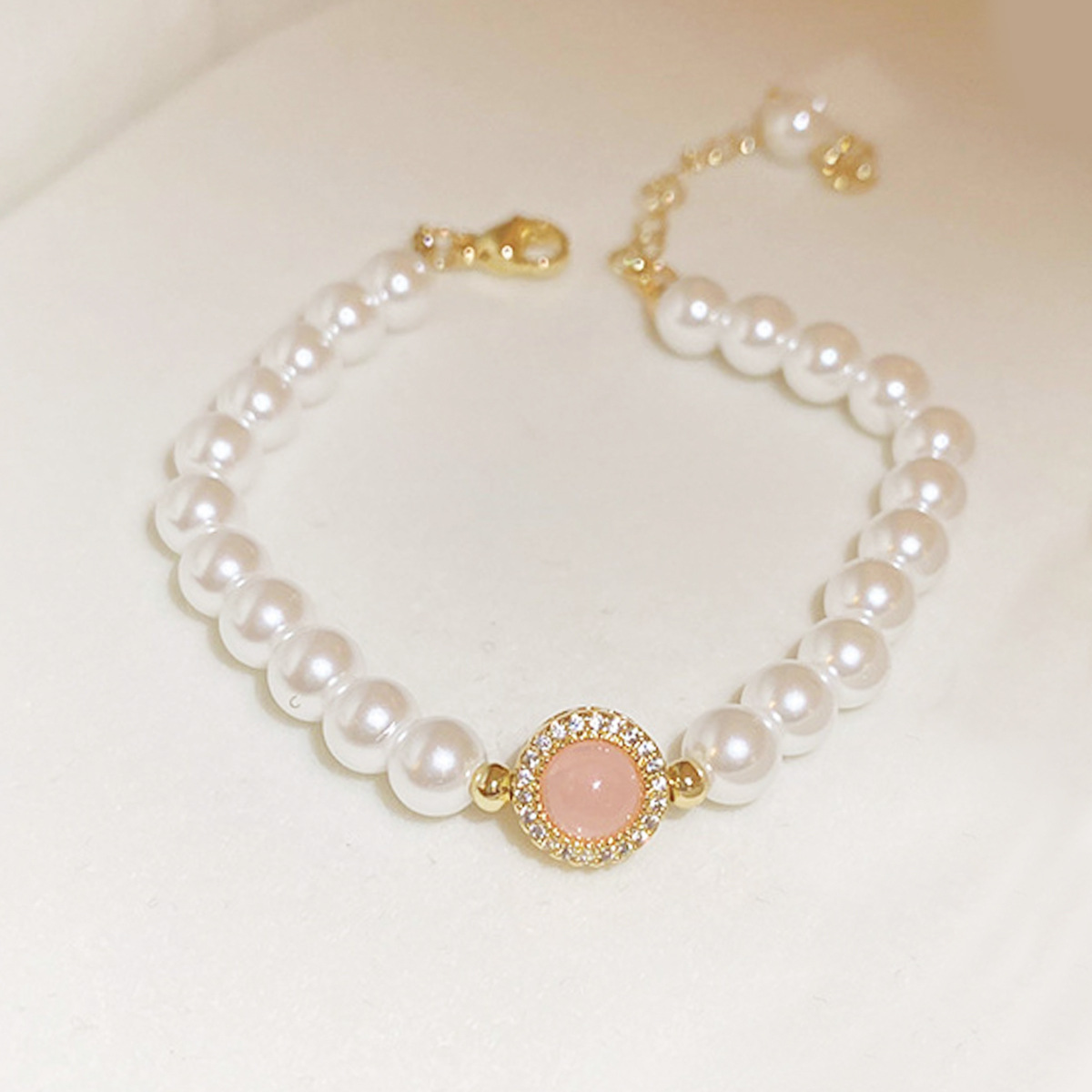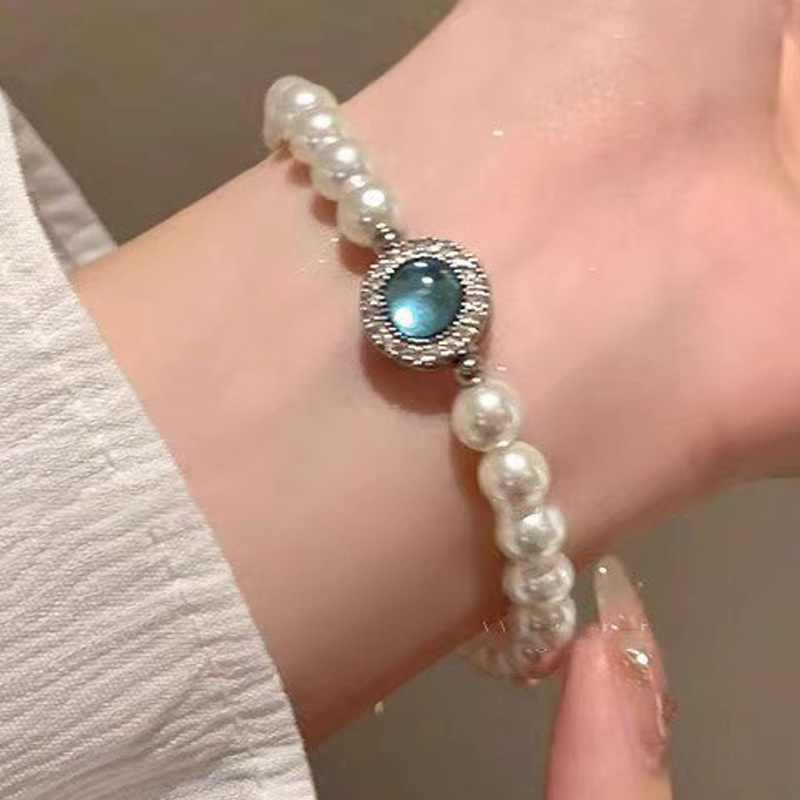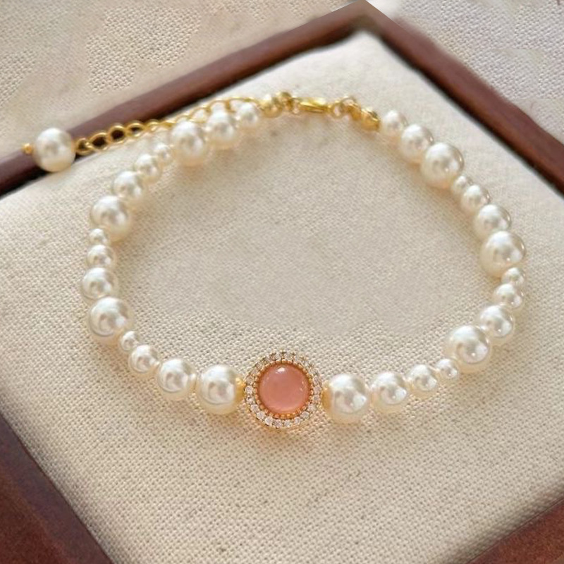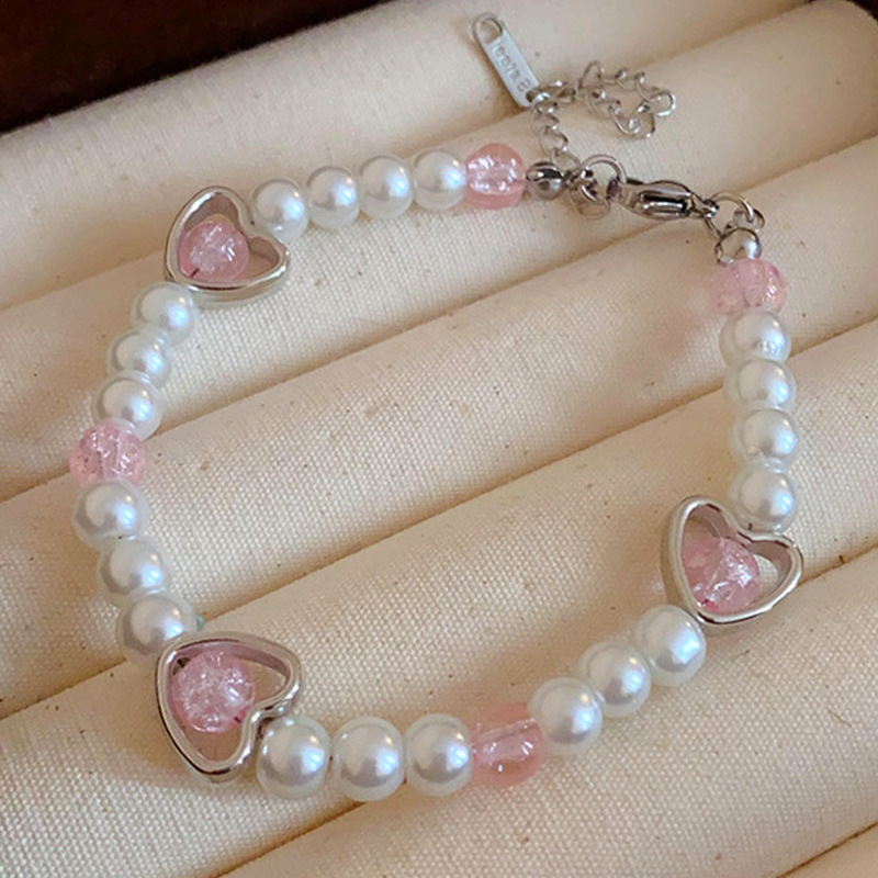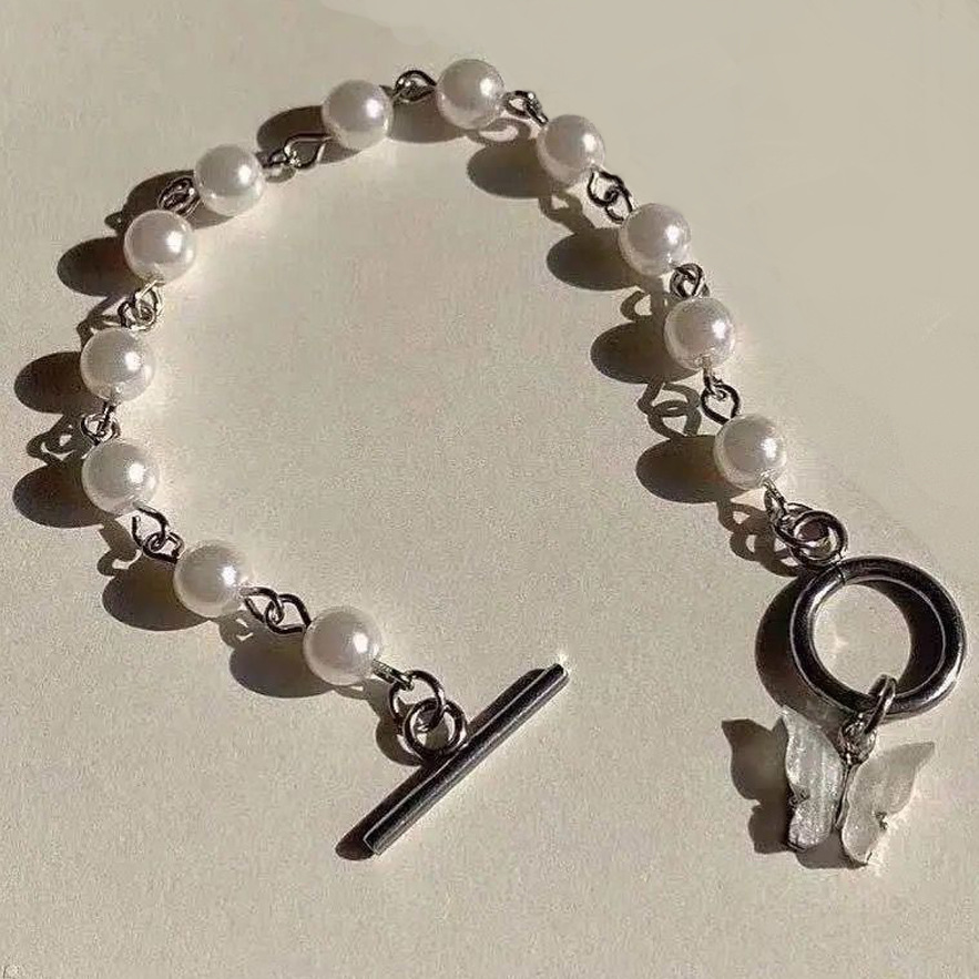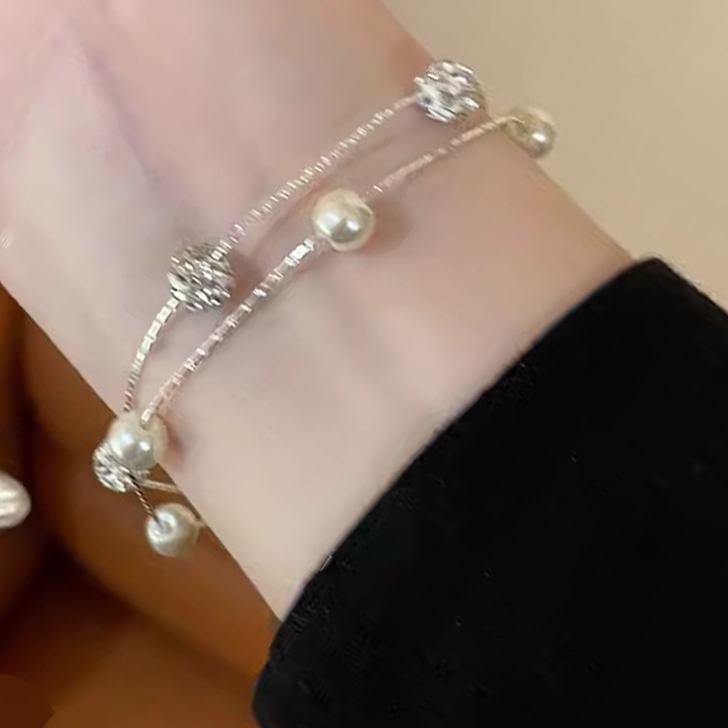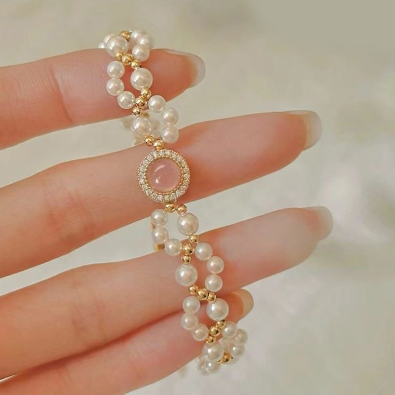 韩国新款珍珠手链小众百搭感精致锆石爱心手串气质蝴蝶结手镯