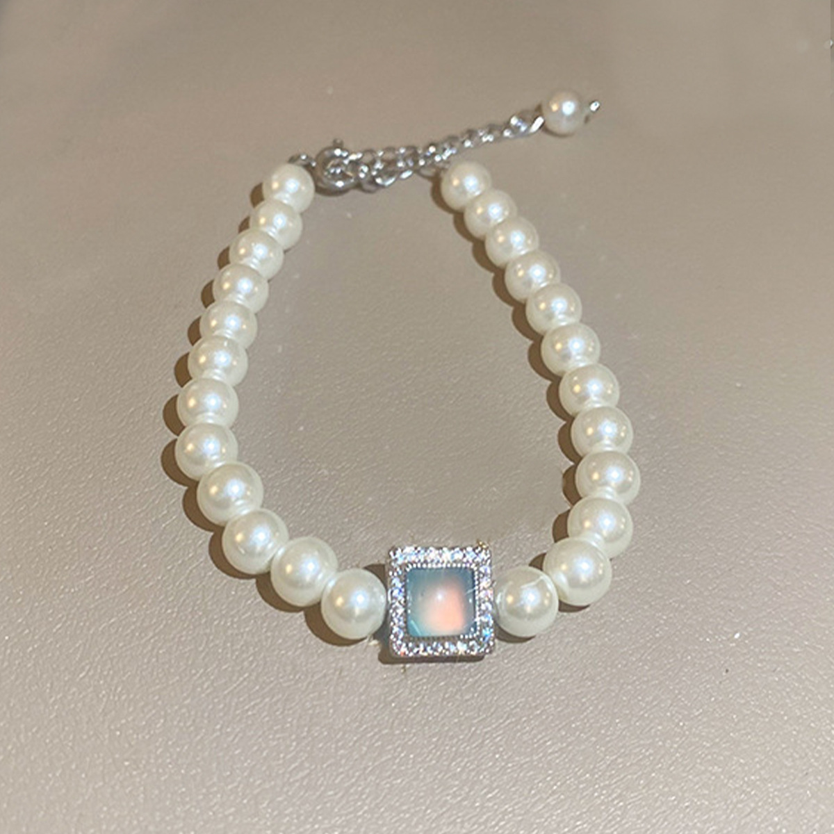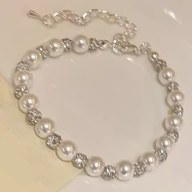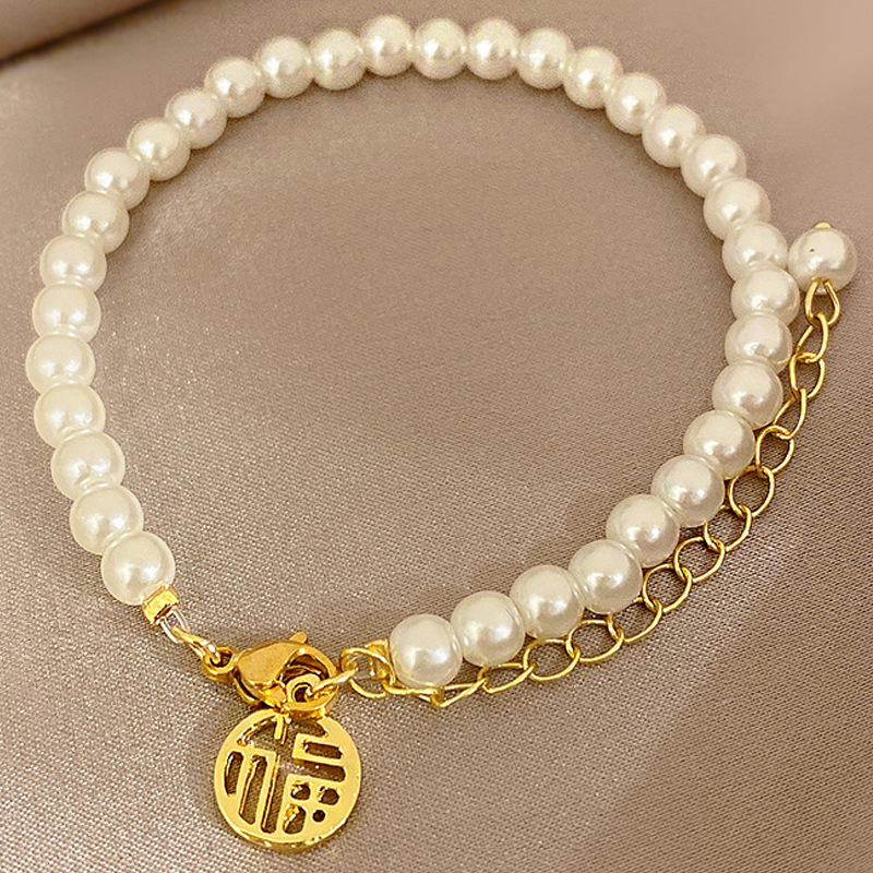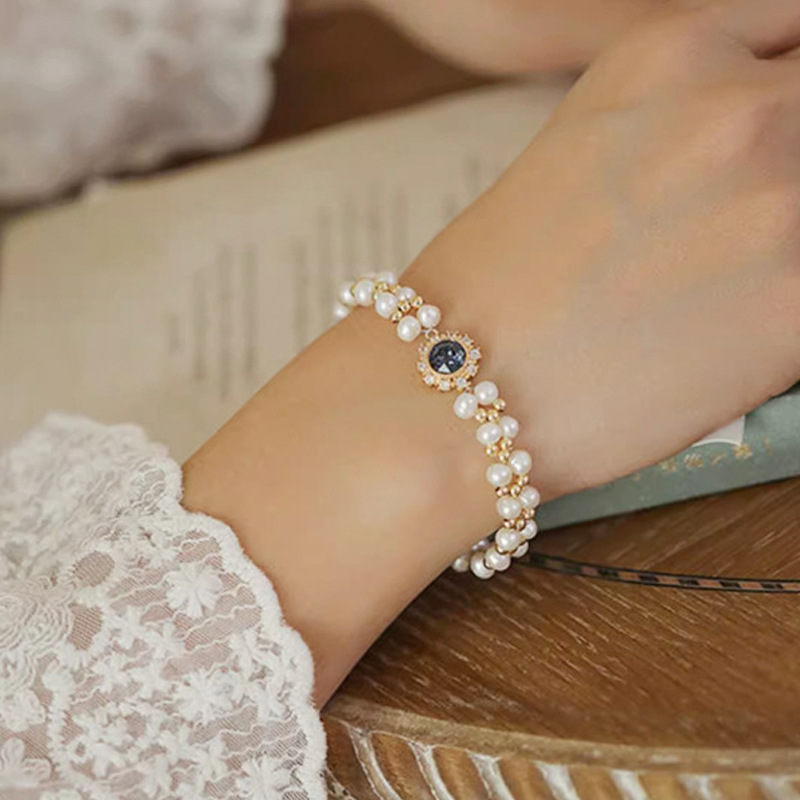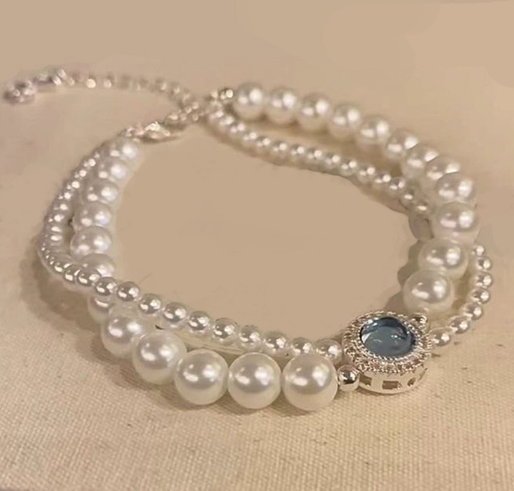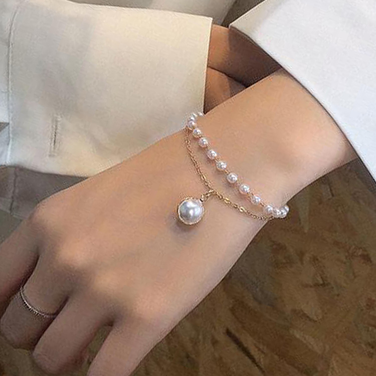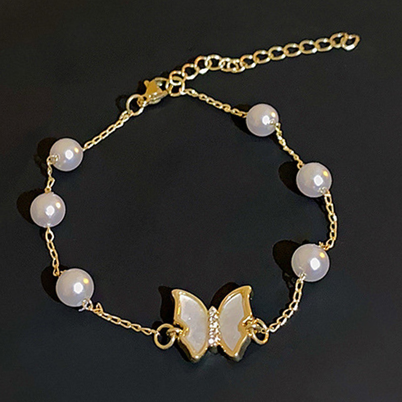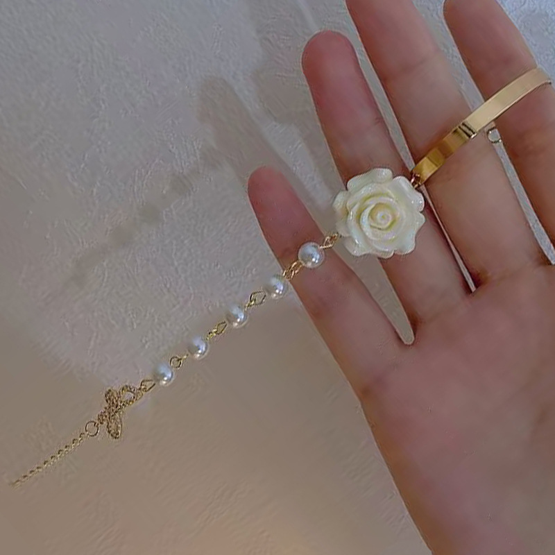韩国新款珍珠手链小众百搭感精致锆石爱心手串气质蝴蝶结手镯
