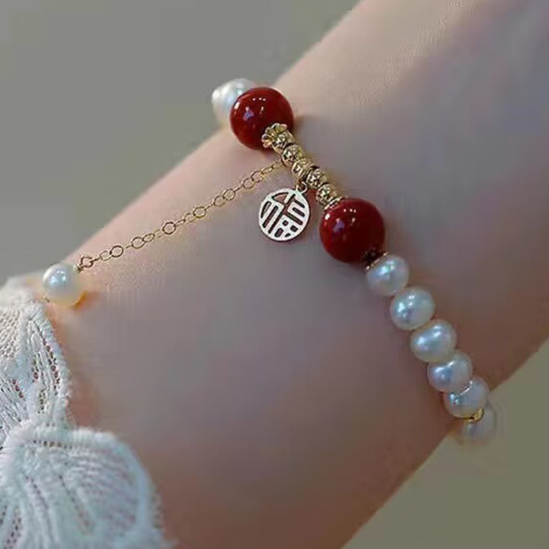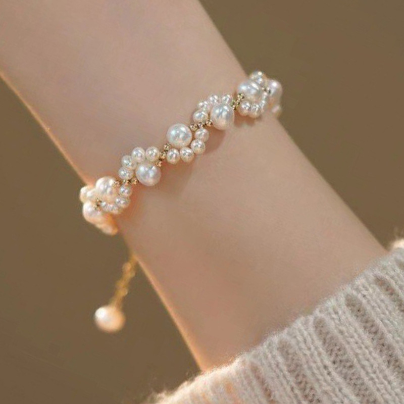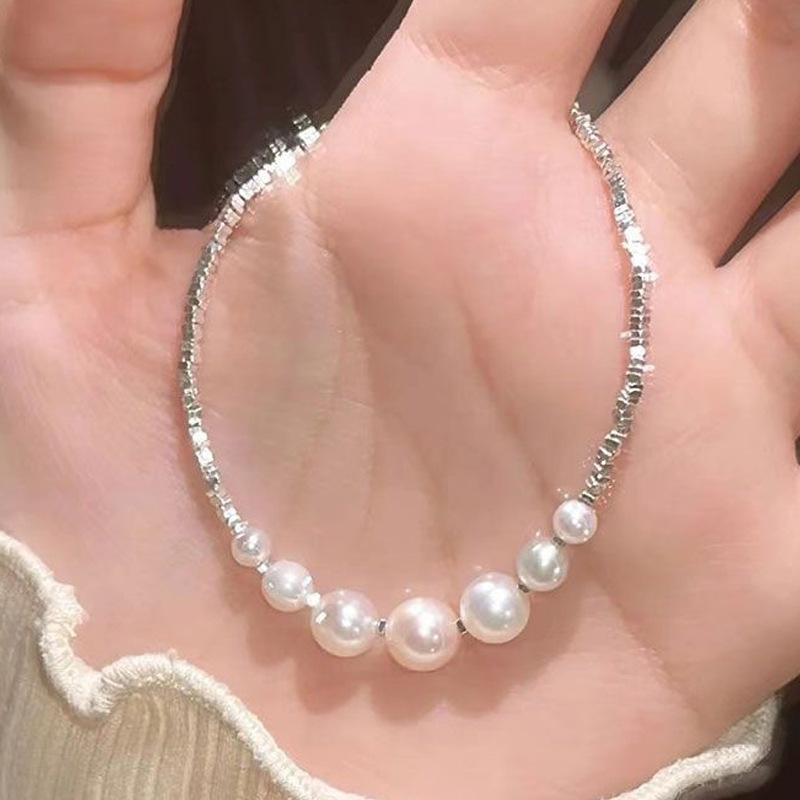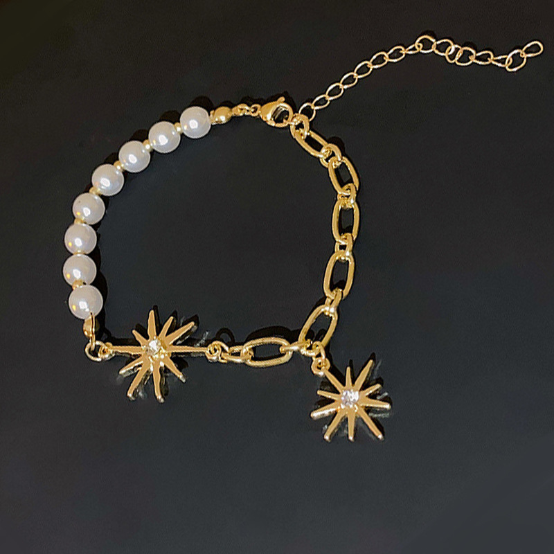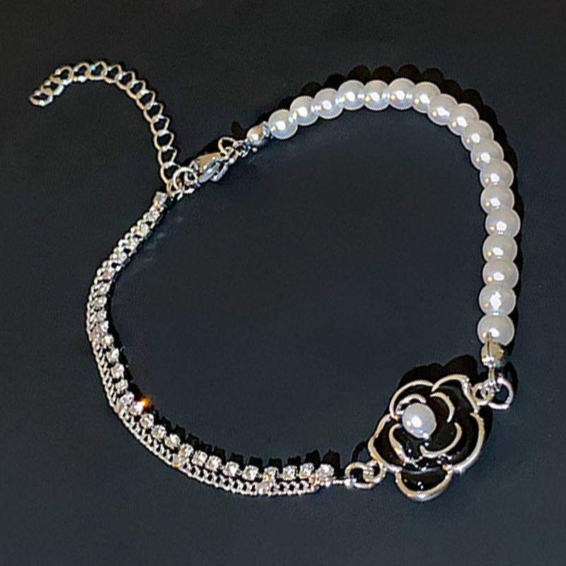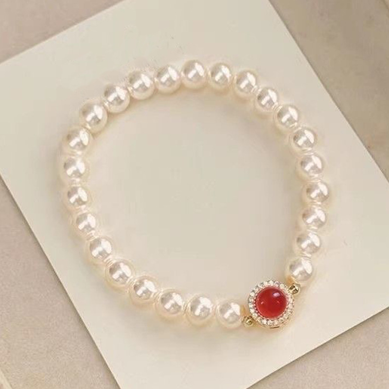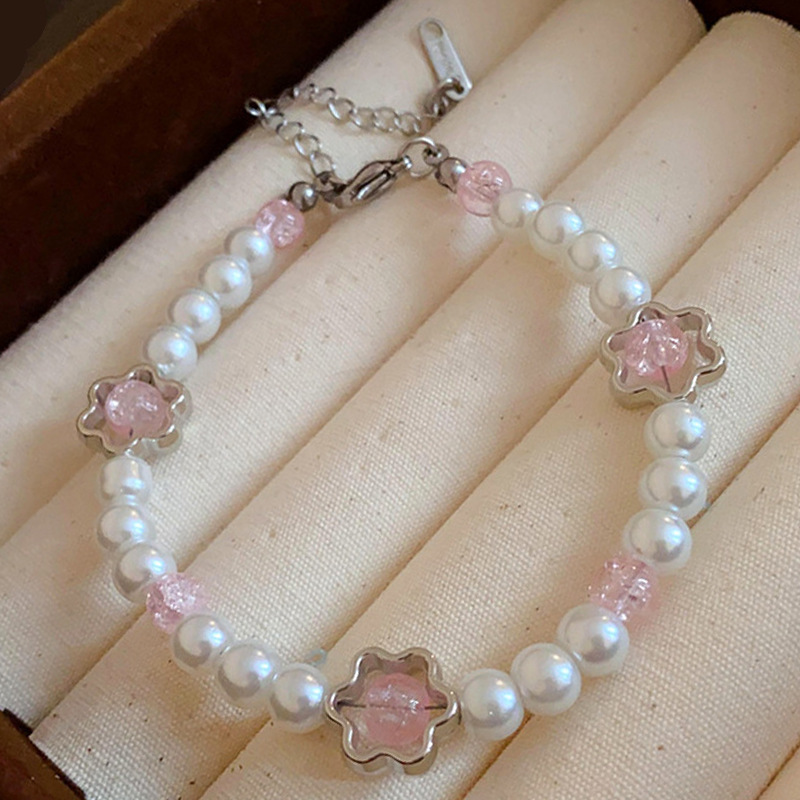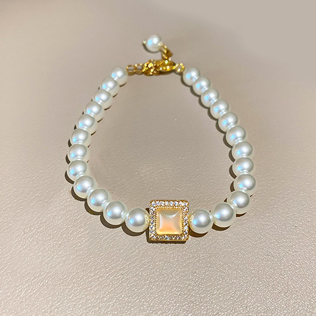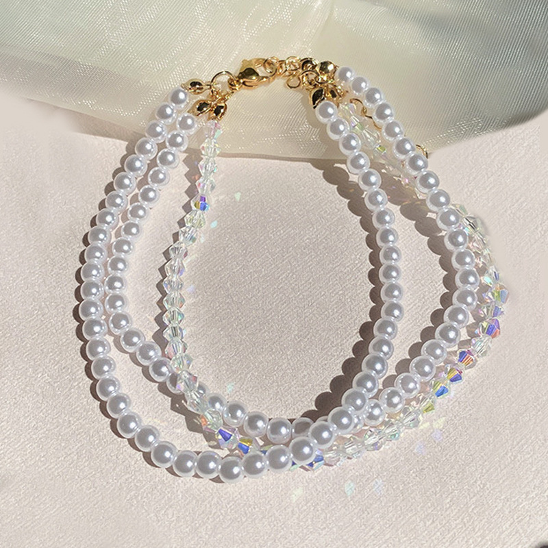 韩国新款珍珠手链小众百搭感精致锆石爱心手串气质蝴蝶结手镯