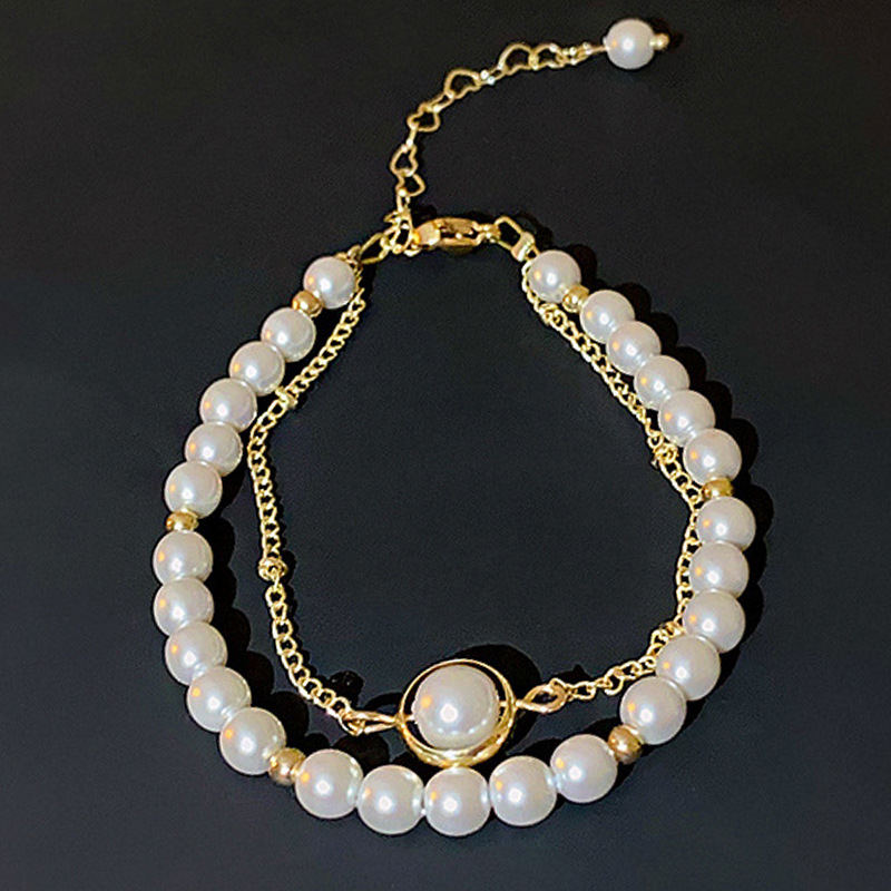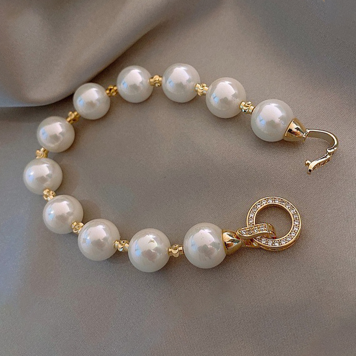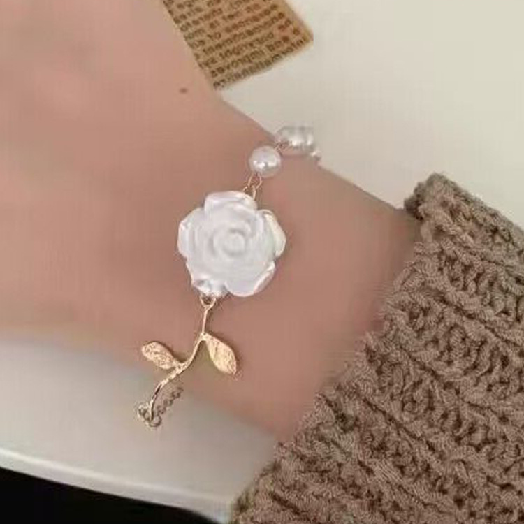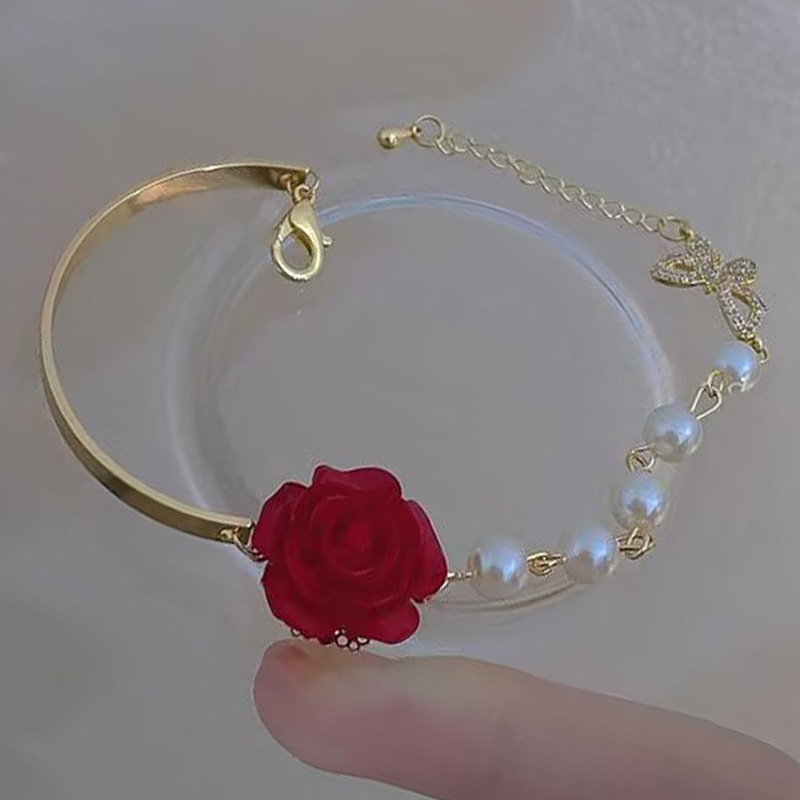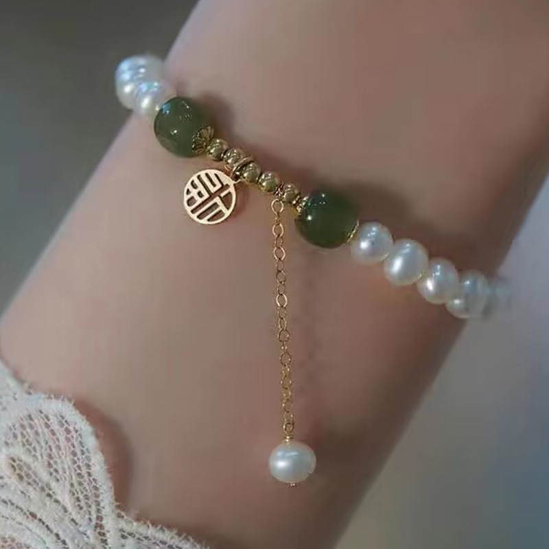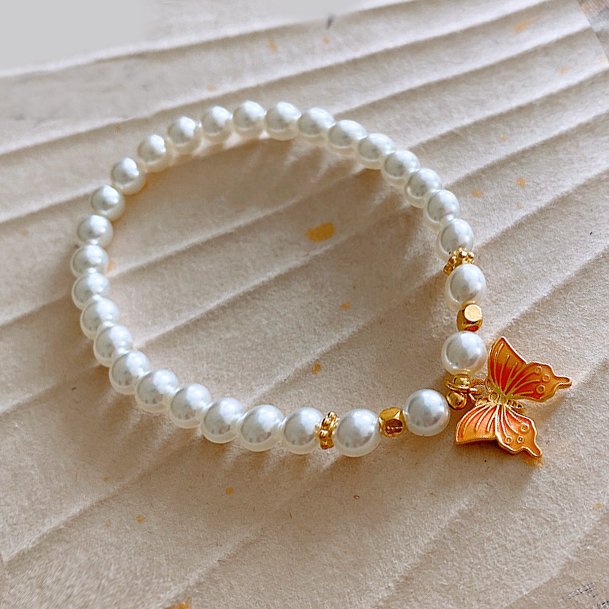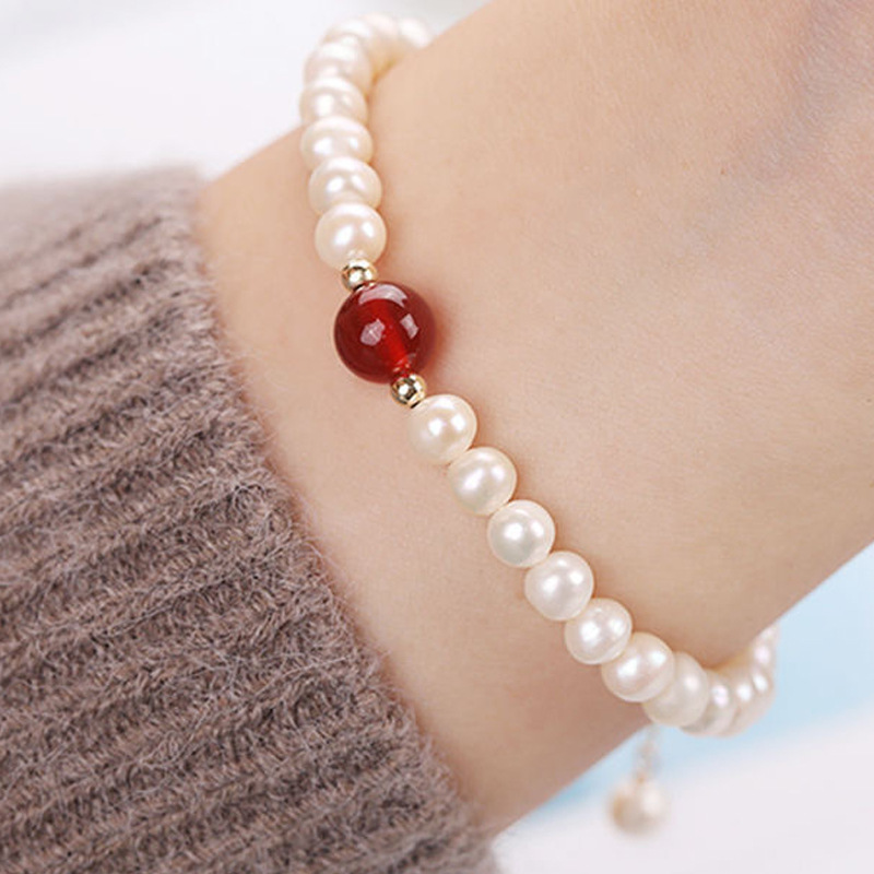 韩国新款珍珠手链小众百搭感精致锆石爱心手串气质蝴蝶结手镯