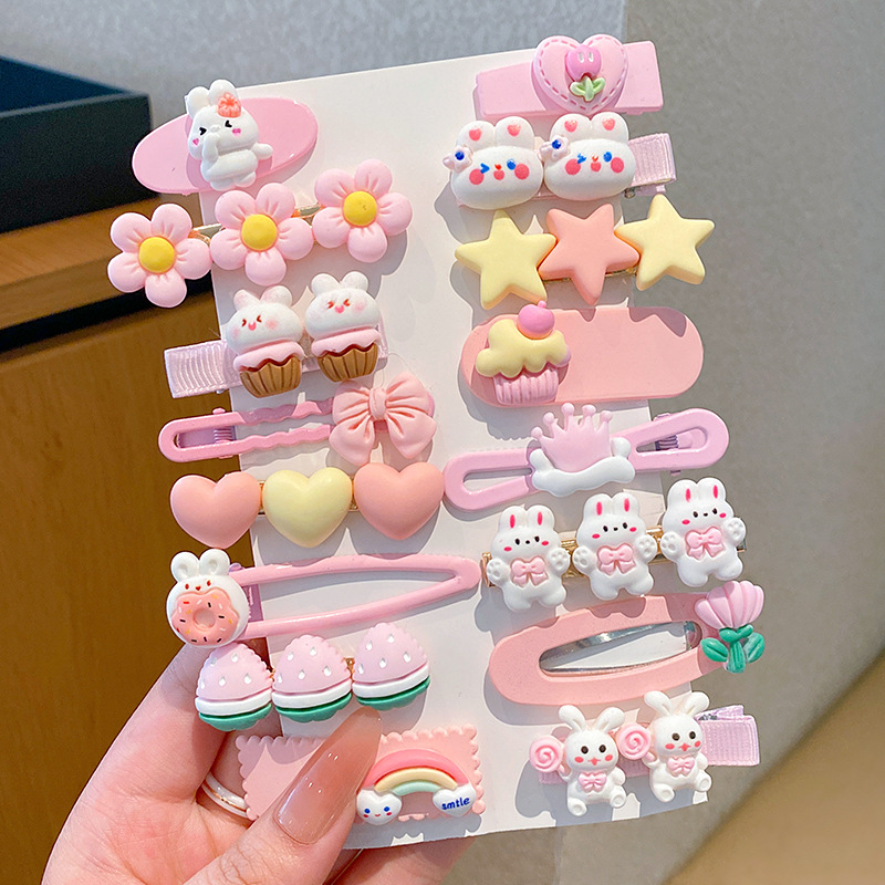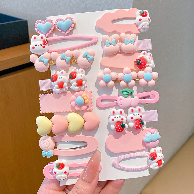 女童粉色系卡通发夹女前额刘海夹鸭嘴夹儿童夹子碎发边夹侧边发卡