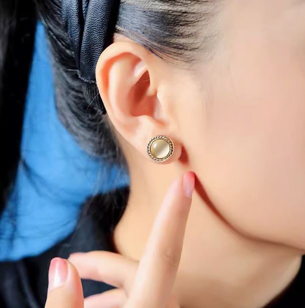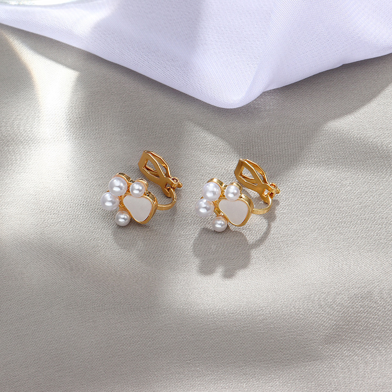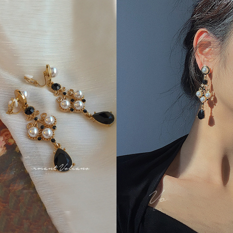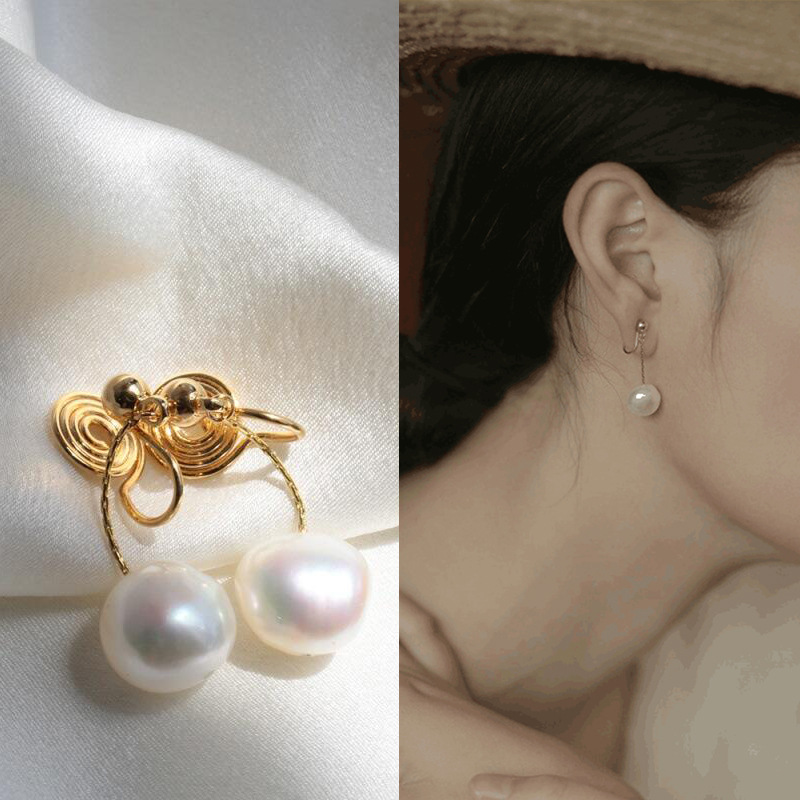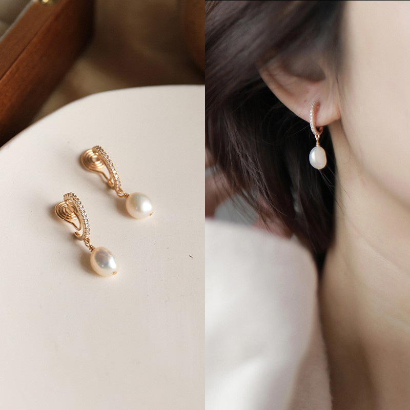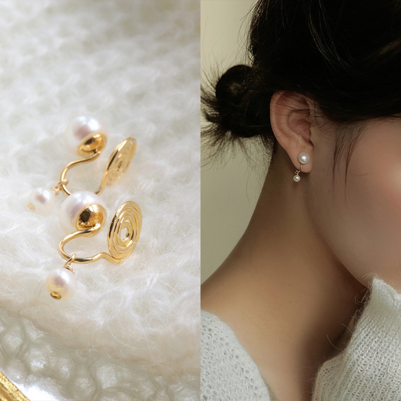 蚊香盘耳夹无耳洞耳夹感轻奢珍珠耳环女复古耳饰金属耳钉大气