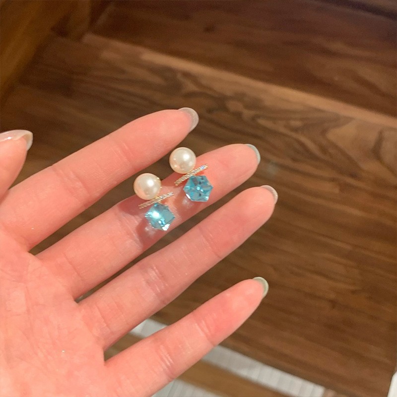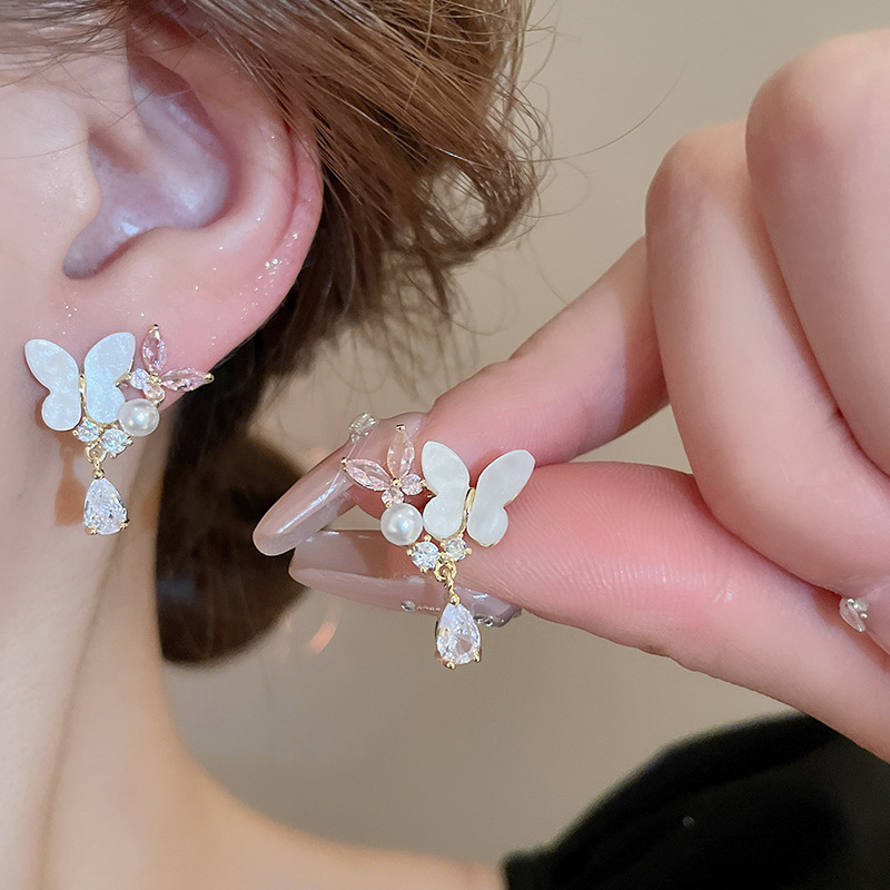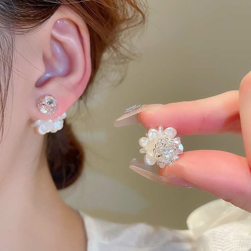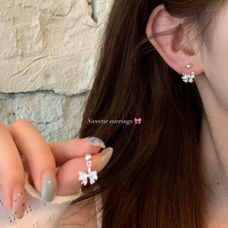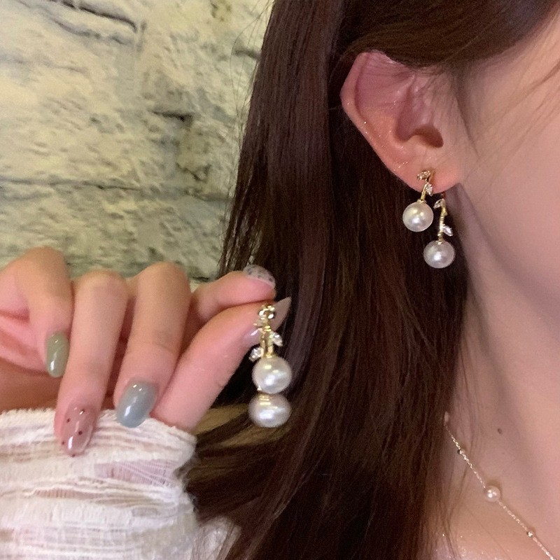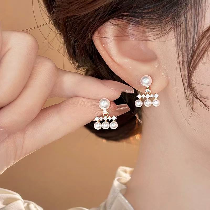 银针珍珠锆石流苏耳钉时尚轻奢感耳环小众精致百搭耳饰批发女