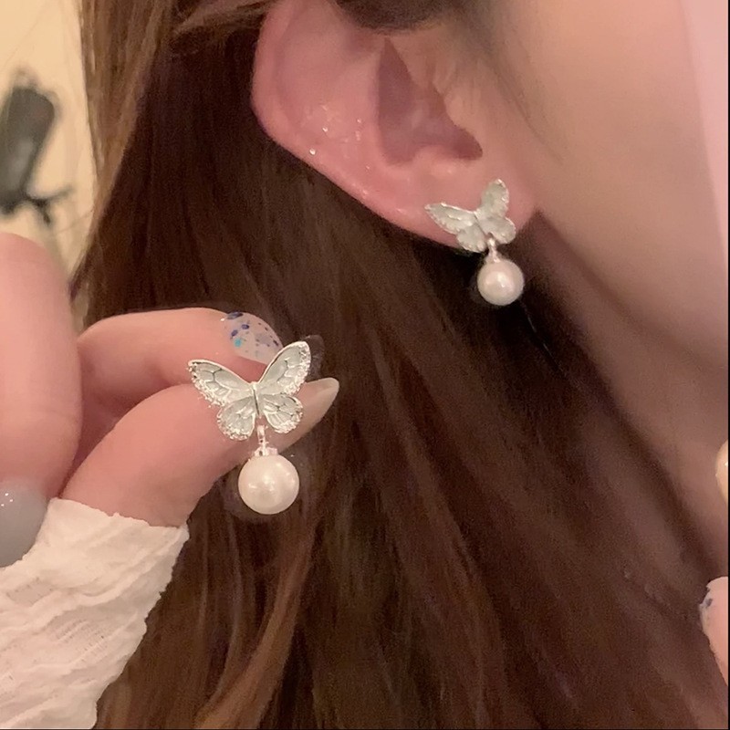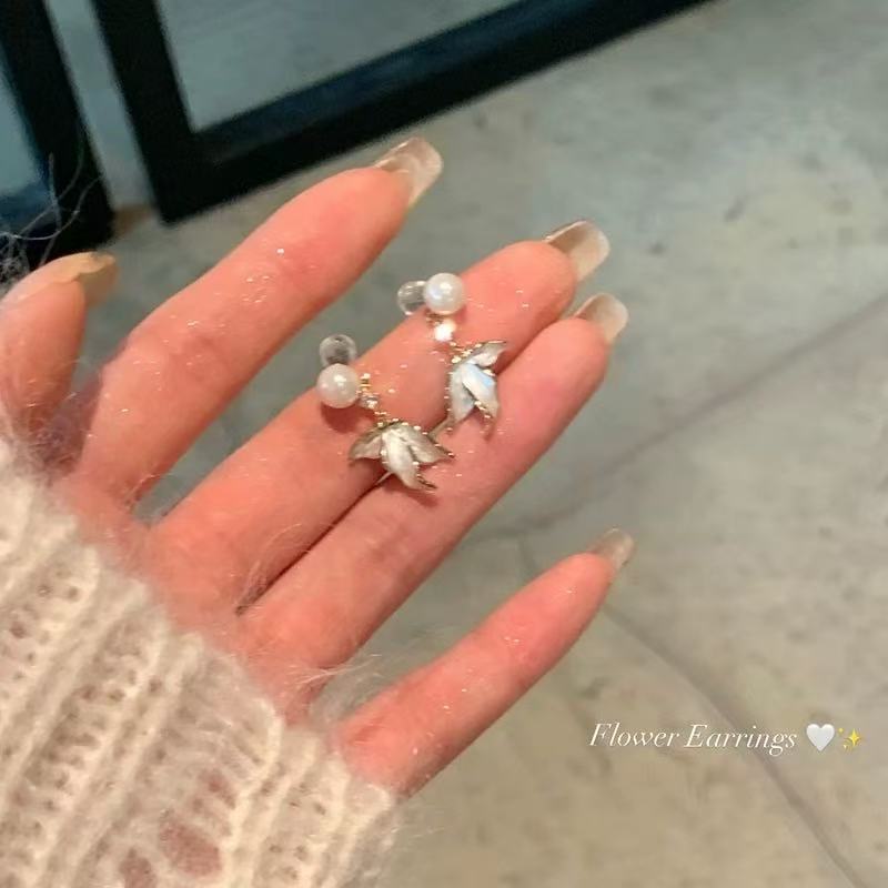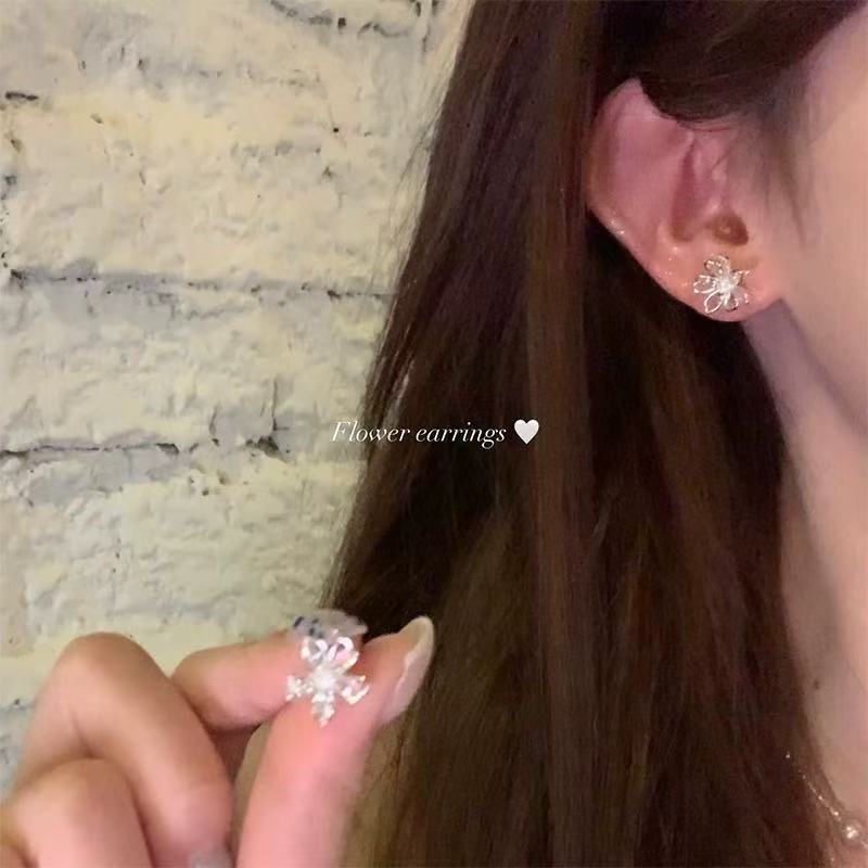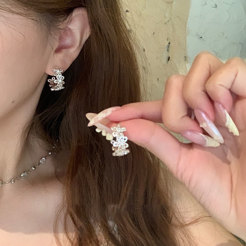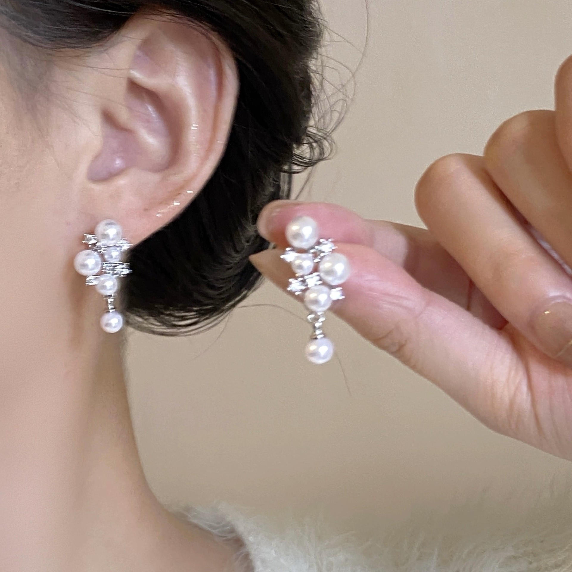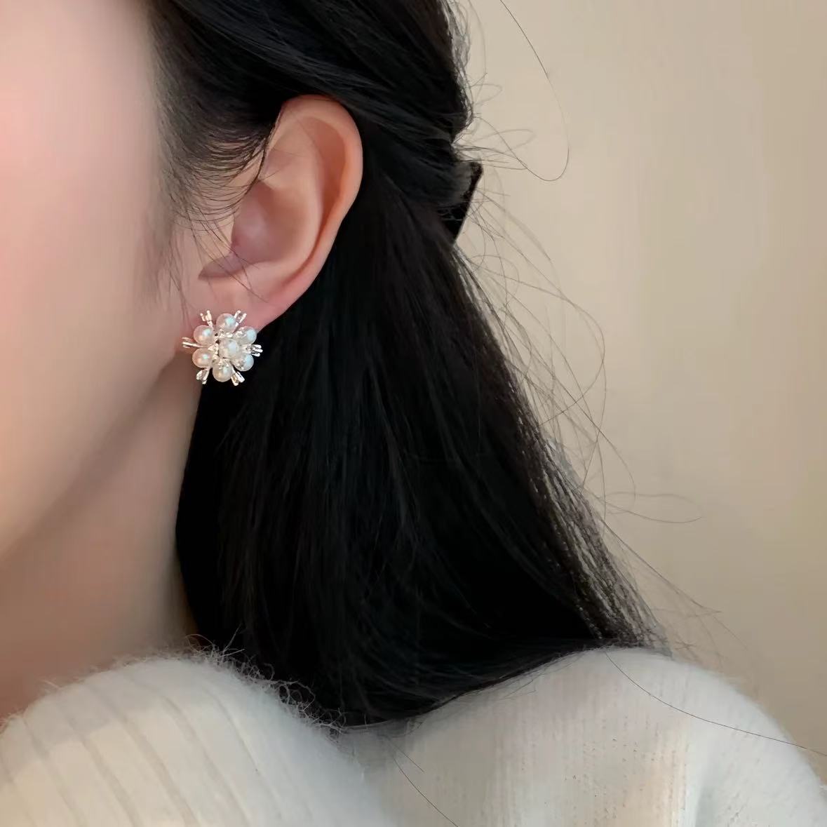银针珍珠锆石流苏耳钉时尚轻奢感耳环小众精致百搭耳饰批发女
