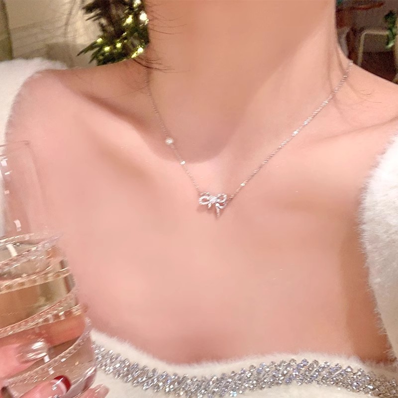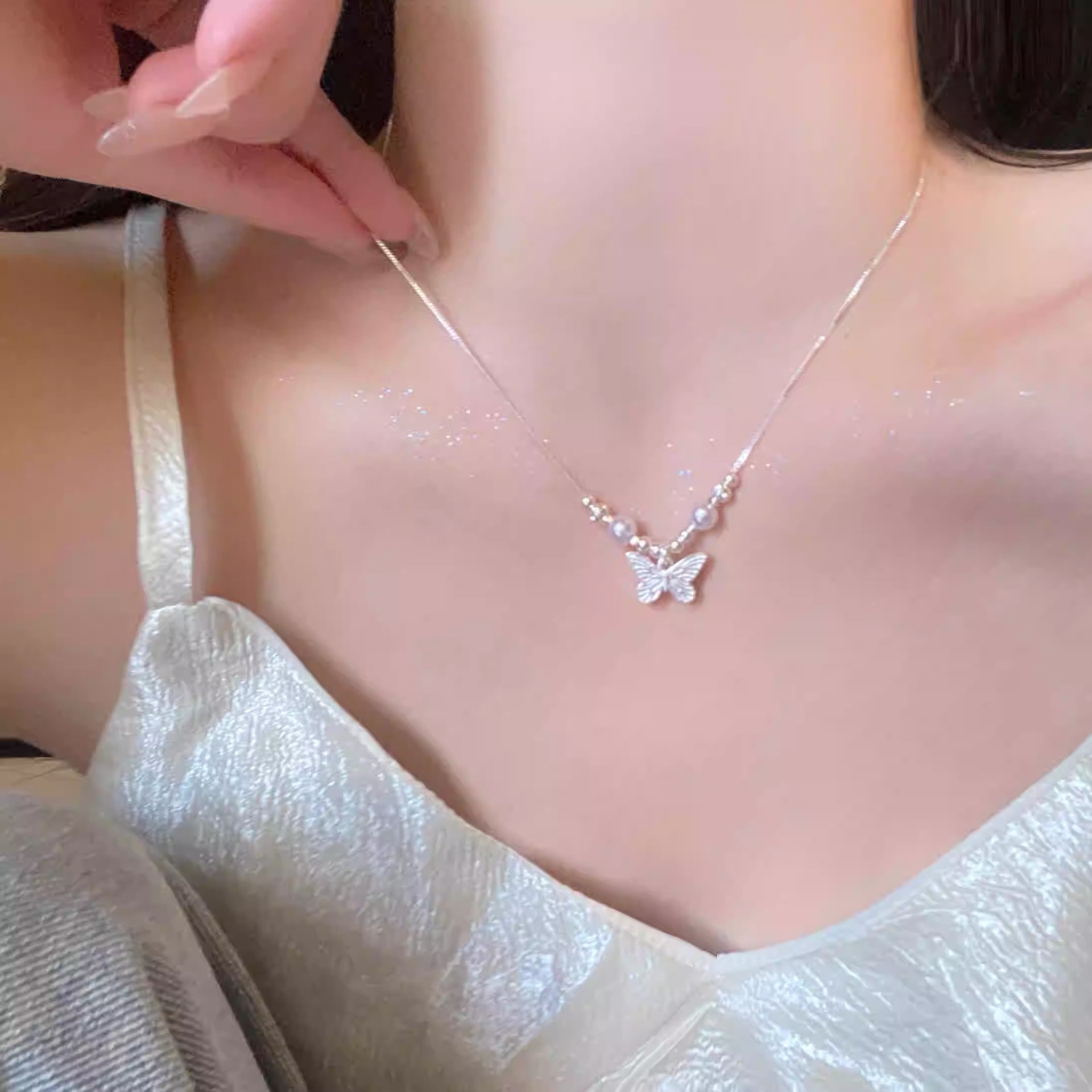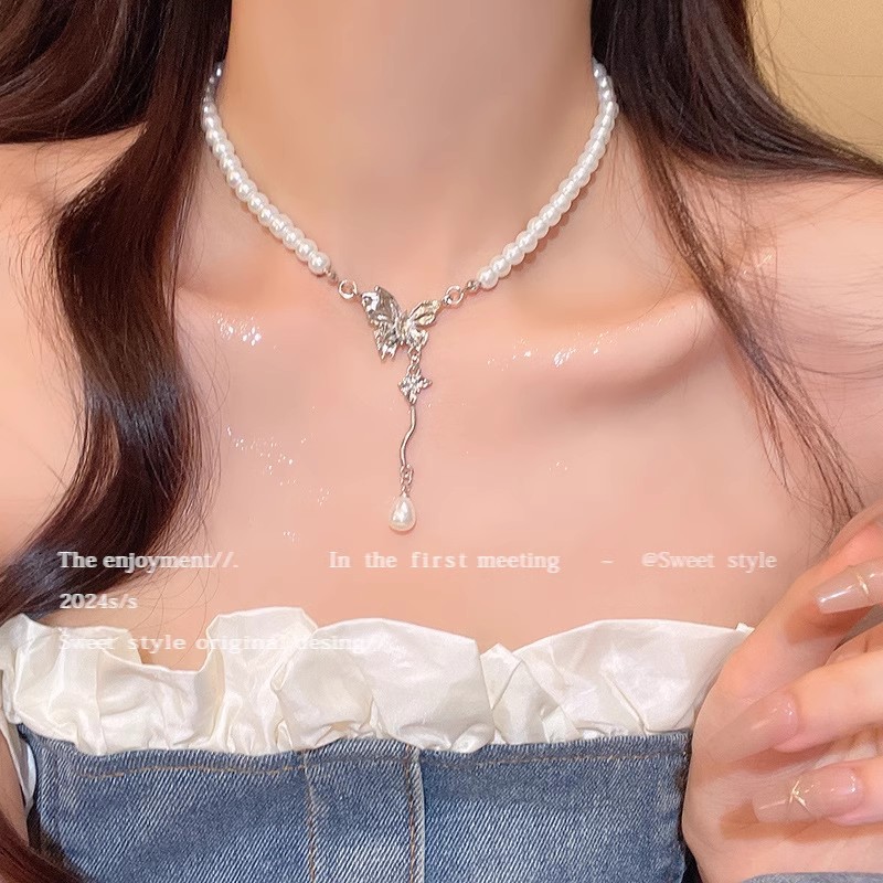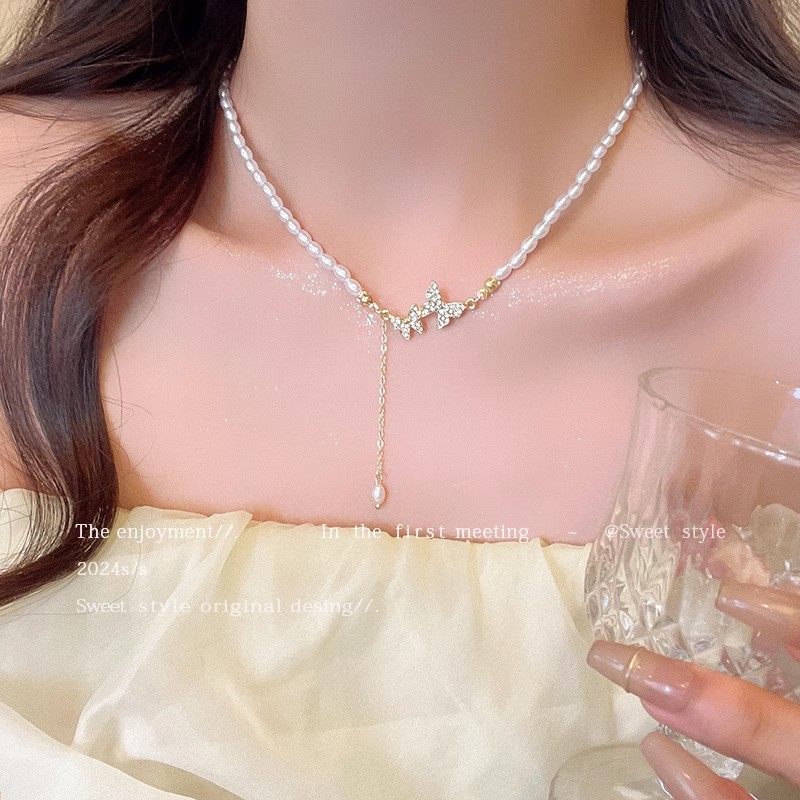 2025年新款珍珠蝴蝶项链女款轻奢感锁骨链复古气质配饰品批发