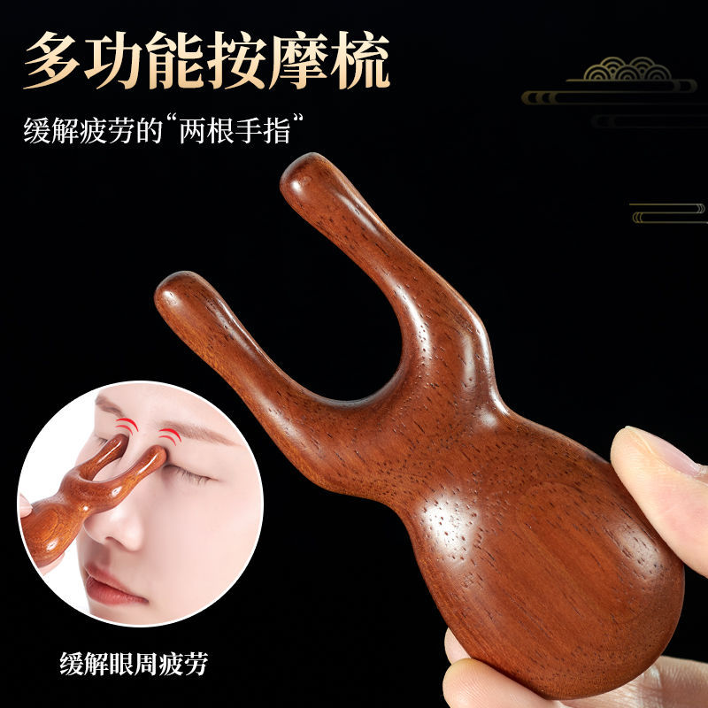 檀木刮鼻子梁脸提拉经按摩眼睛眼周小青蛙梳子按摩器搓耳朵神器