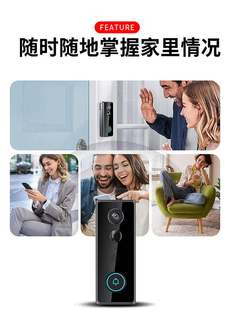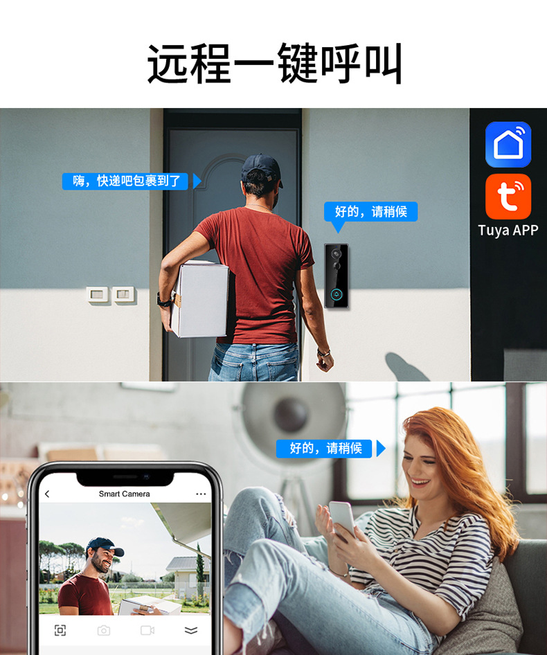 Tuya涂鸦智能门铃IP65防水手机远程实时监控双向对讲PIR人体感应
