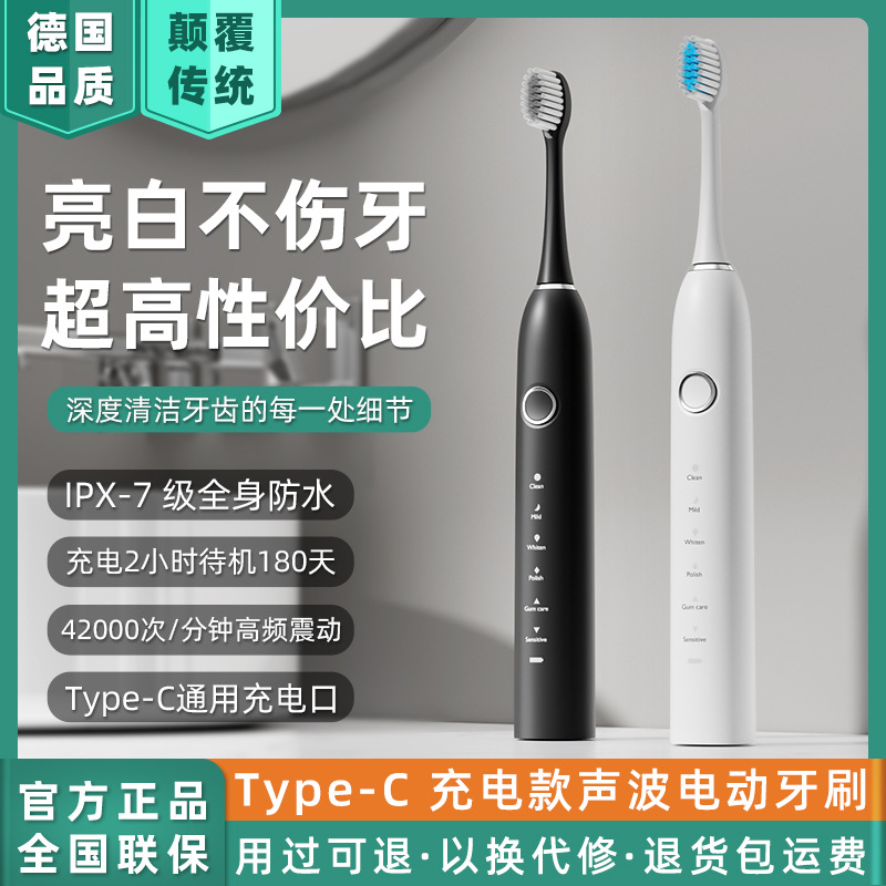 电动牙刷充电款成人儿童通用软毛刷家用便携防水牙刷套装跨境批发
