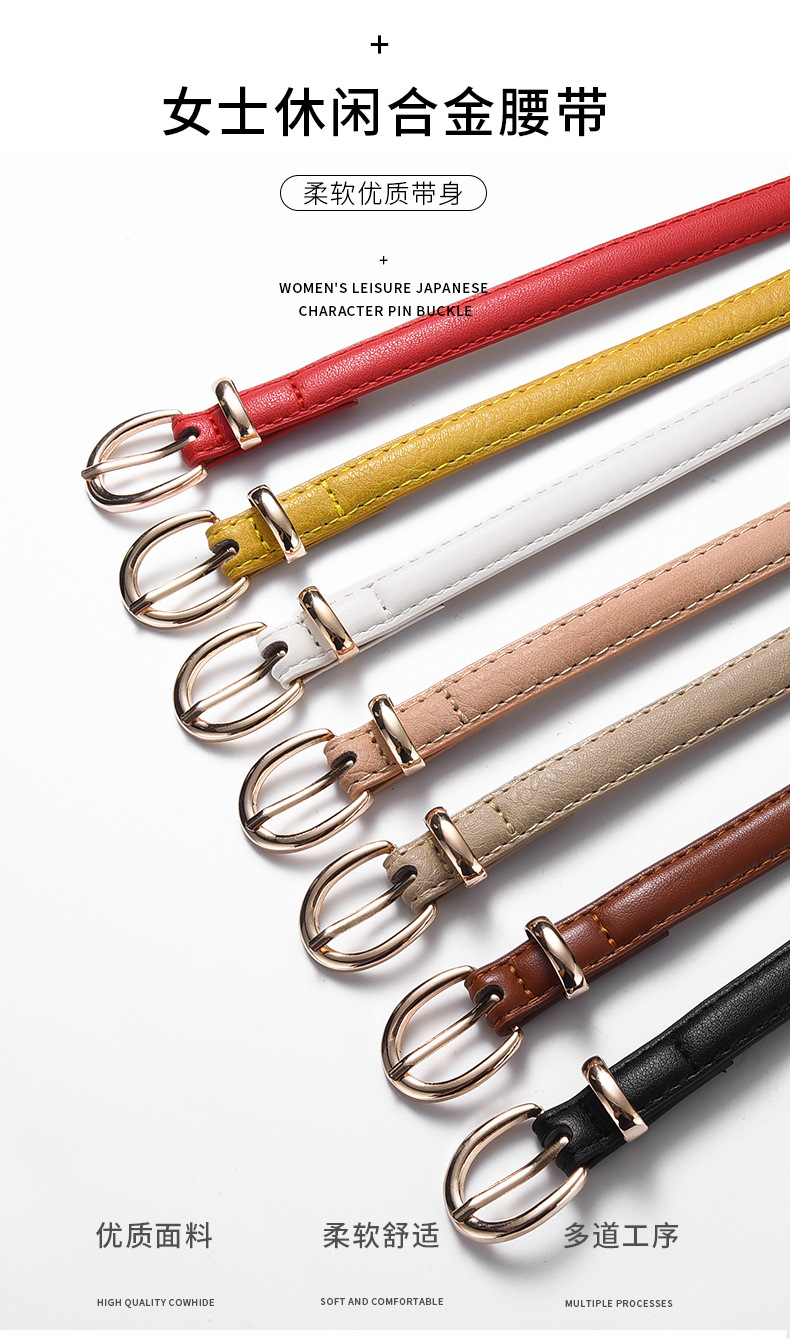 新款糖果色皮带女士pu针扣装饰腰带韩版时尚个性百搭细皮带批发